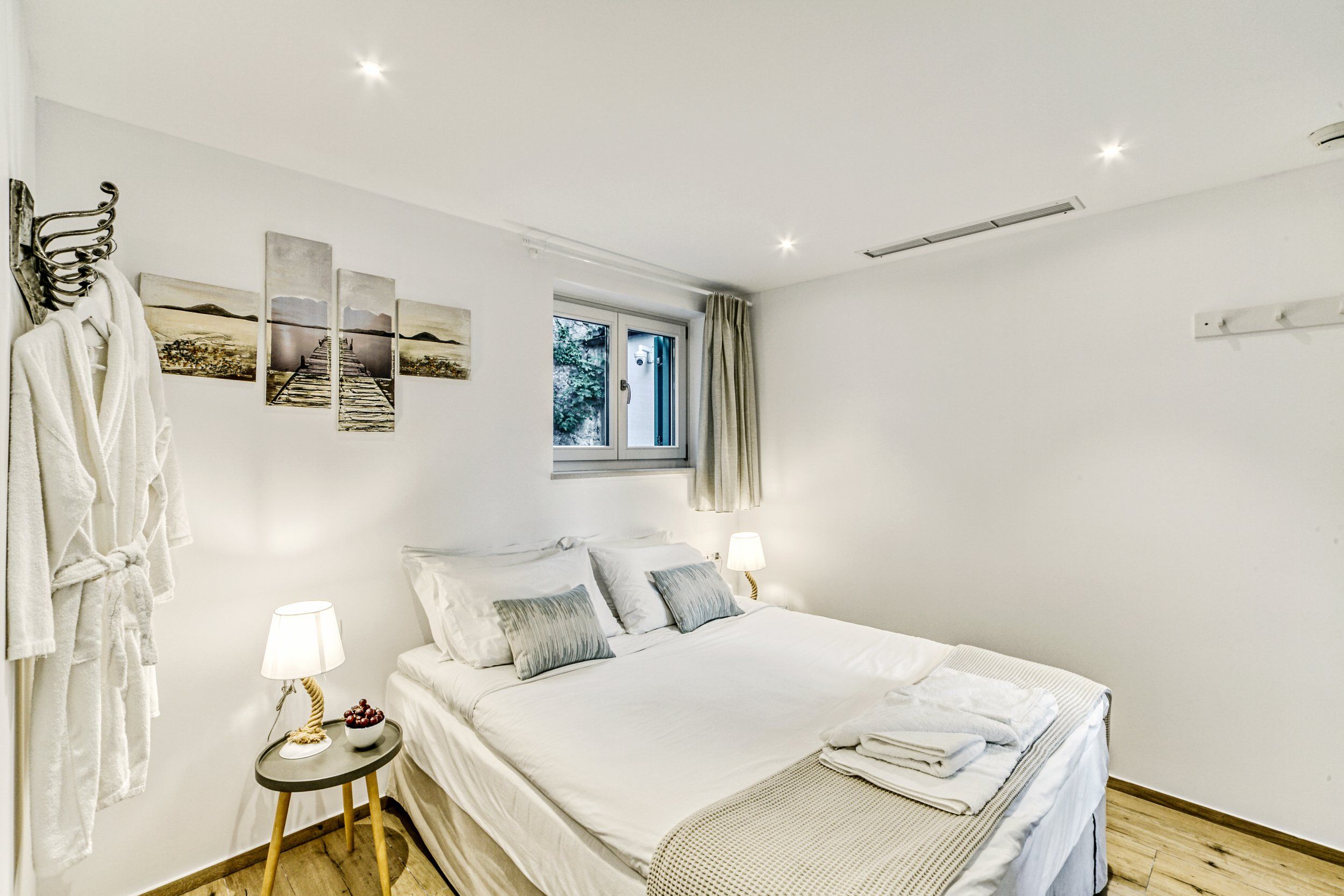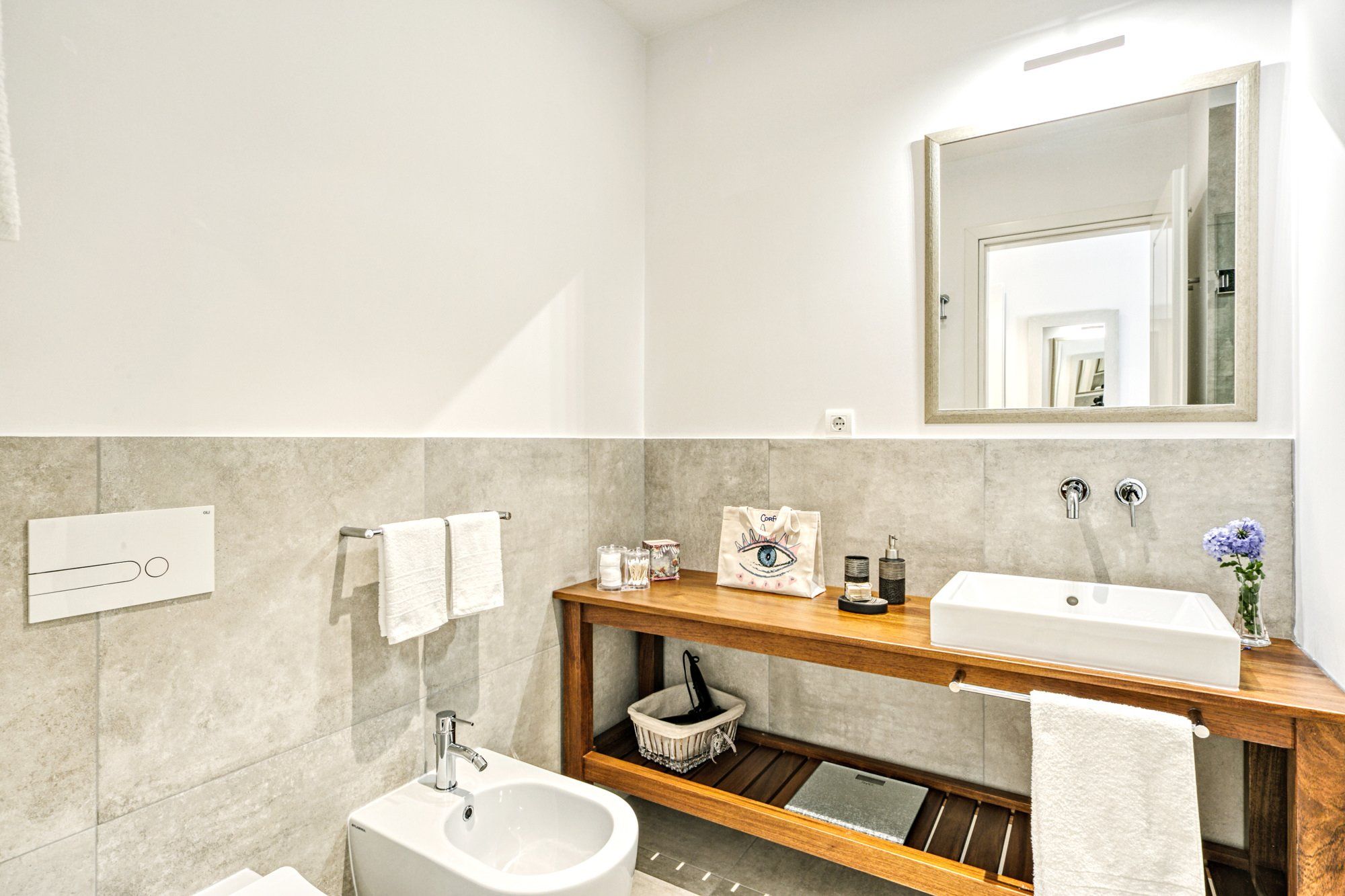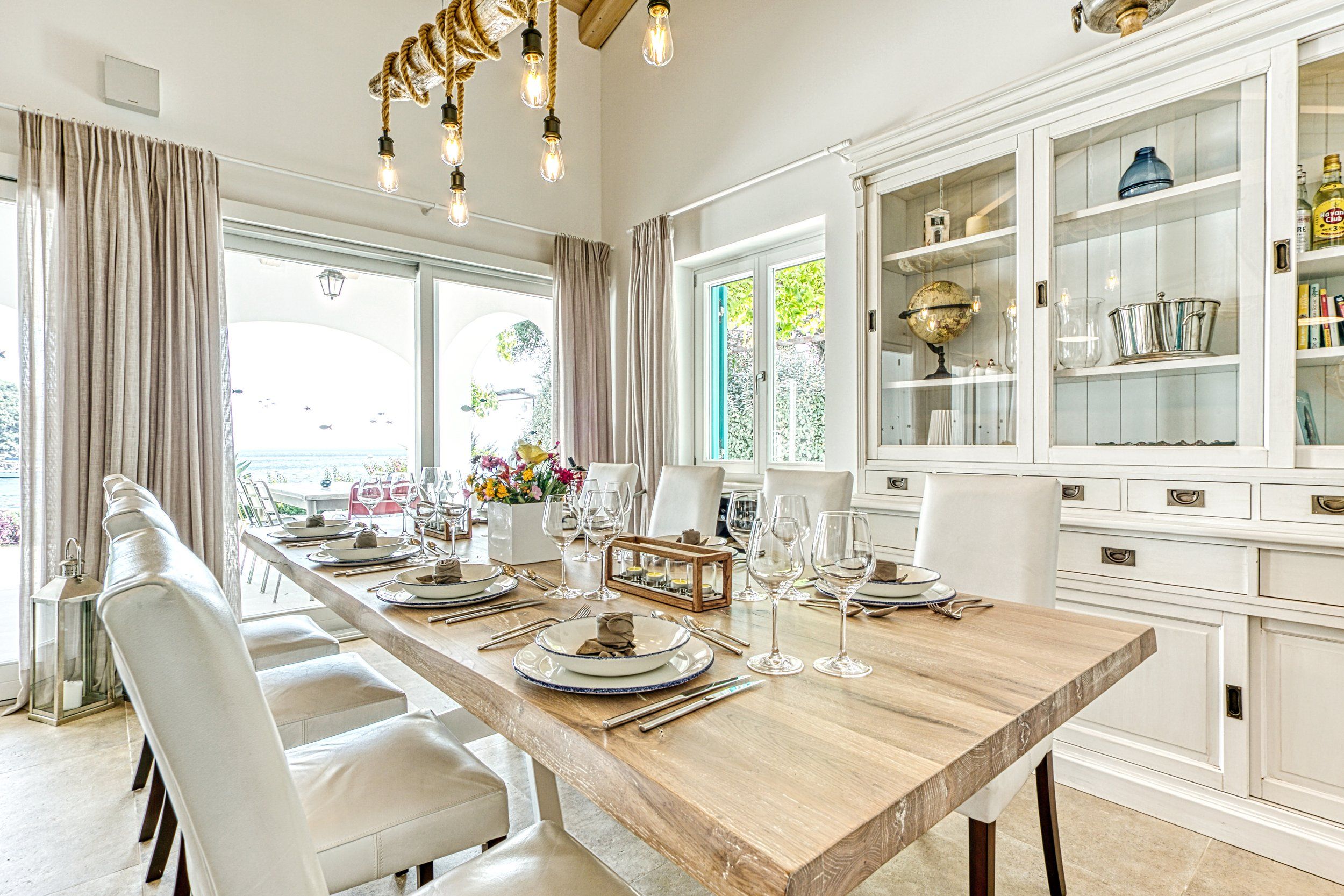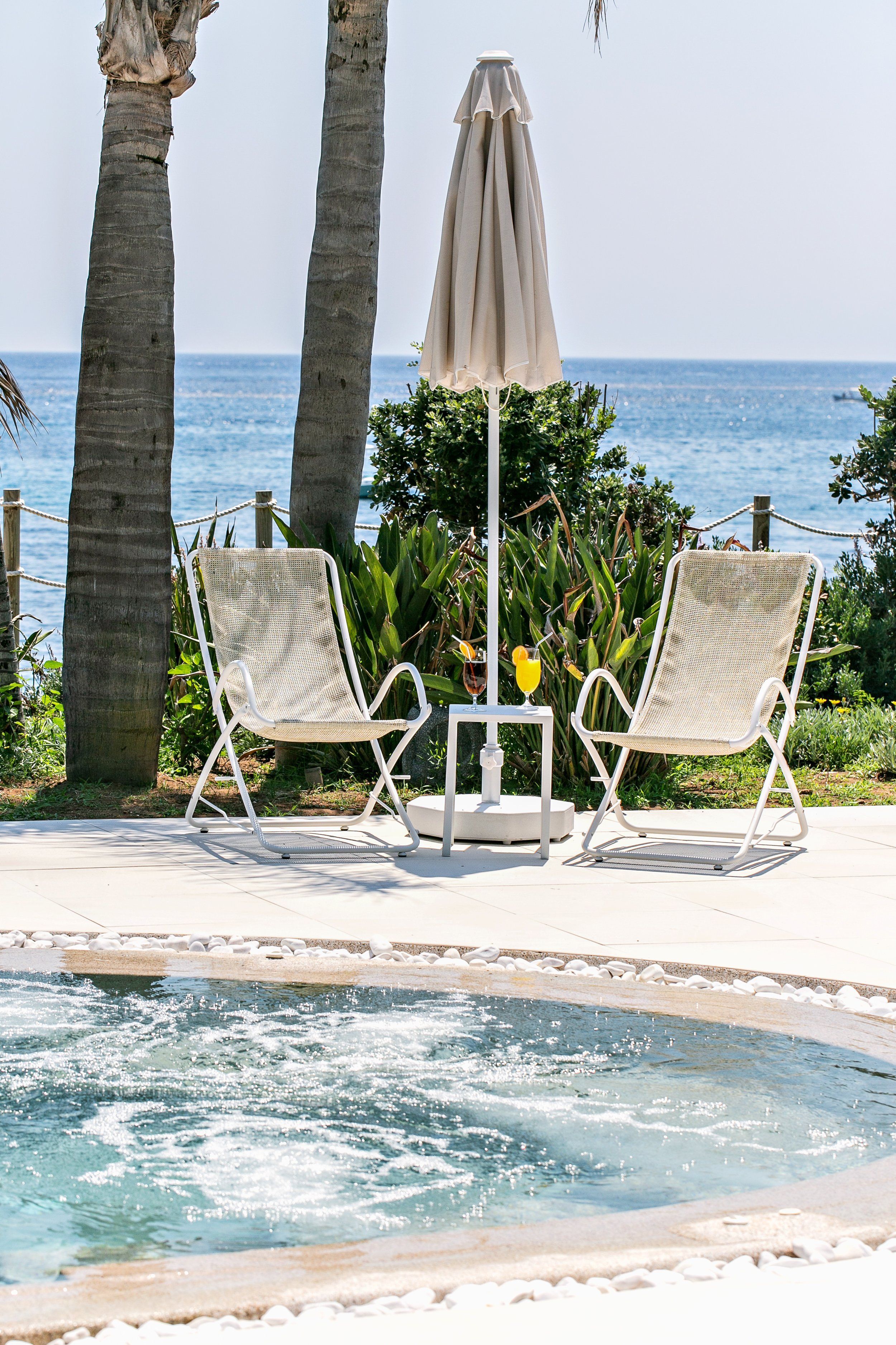 One of Corfu’s most popular and picturesque beaches is right on the doorstep of this deluxe villa. A private path leads from the terrace to the sand of Paleokastritsa beach where boats for snorkelling trips, tavernas for long lunches and shaded loungers await. So, you can join the crowds on the beach or opt for the privacy of your terrace, overlooking the sea. Sunsets here are particularly spectacular – illuminating the coastline in golden light – perhaps best enjoyed from the covered lounge area with a cold drink in hand. A porticoed veranda covers sofas and chairs all facing the sea and the serene swimming pool invites you for a dip in the heat of the day.