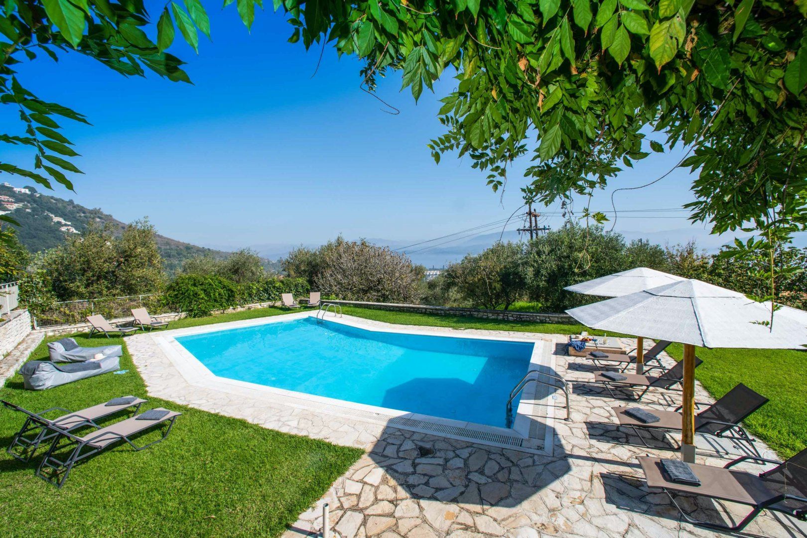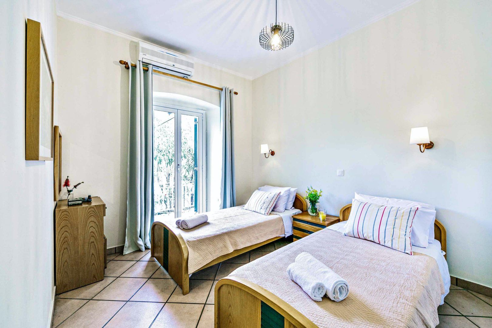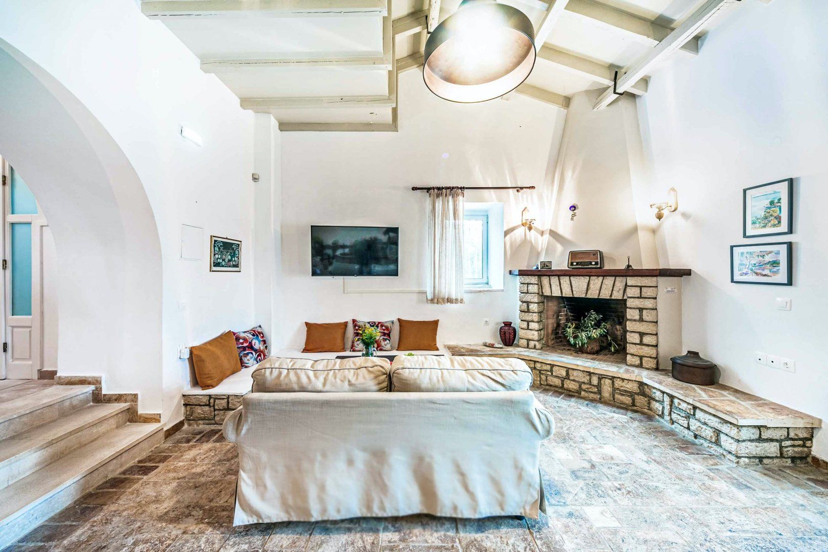 With beautiful views of the scenic countryside and the Ionian Sea, against the backdrop of cypress groves, palm trees, fragrant citrus trees, this villa is a dream. We think the traditional decor adds a touch of authenticity, but it might not be to everyone’s taste. The villa was once an olive press factory, and the machinery still stands in the living area – it’s a cool and unique feature but doesn’t make for the cosiest living space. We imagine you’ll be spending most of your time in the grassy garden area or beside the pool, anyway. Your lovely host can arrange car hire should you want it, but you are within walking distance of Kalami village and its quaint streets, waterfront restaurants, bars, and most importantly, the beach.