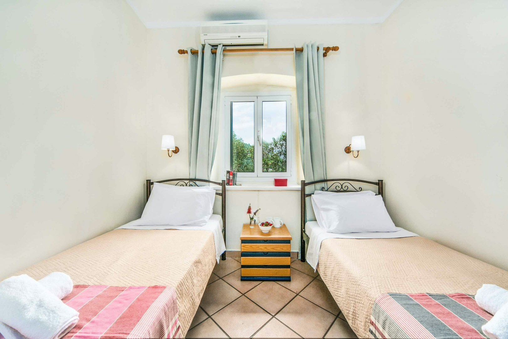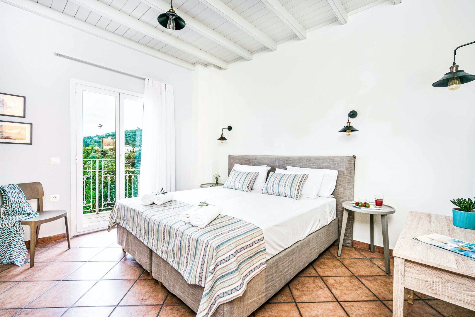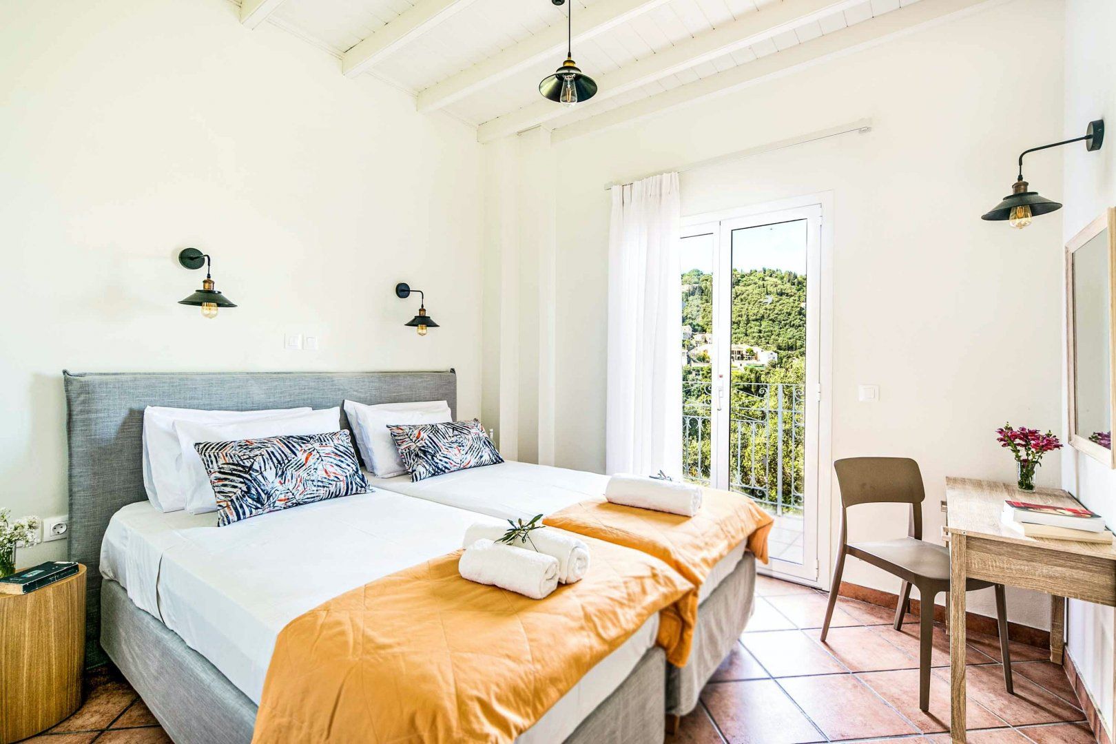 With beautiful views of the scenic countryside and the Ionian Sea, against the backdrop of cypress groves, palm trees, fragrant citrus trees, this villa is a dream. We think the traditional decor adds a touch of authenticity, but it might not be to everyone’s taste. The villa was once an olive press factory, and the machinery still stands in the living area – it’s a cool and unique feature but doesn’t make for the cosiest living space. We imagine you’ll be spending most of your time in the grassy garden area or beside the pool, anyway. Your lovely host can arrange car hire should you want it, but you are within walking distance of Kalami village and its quaint streets, waterfront restaurants, bars, and most importantly, the beach.