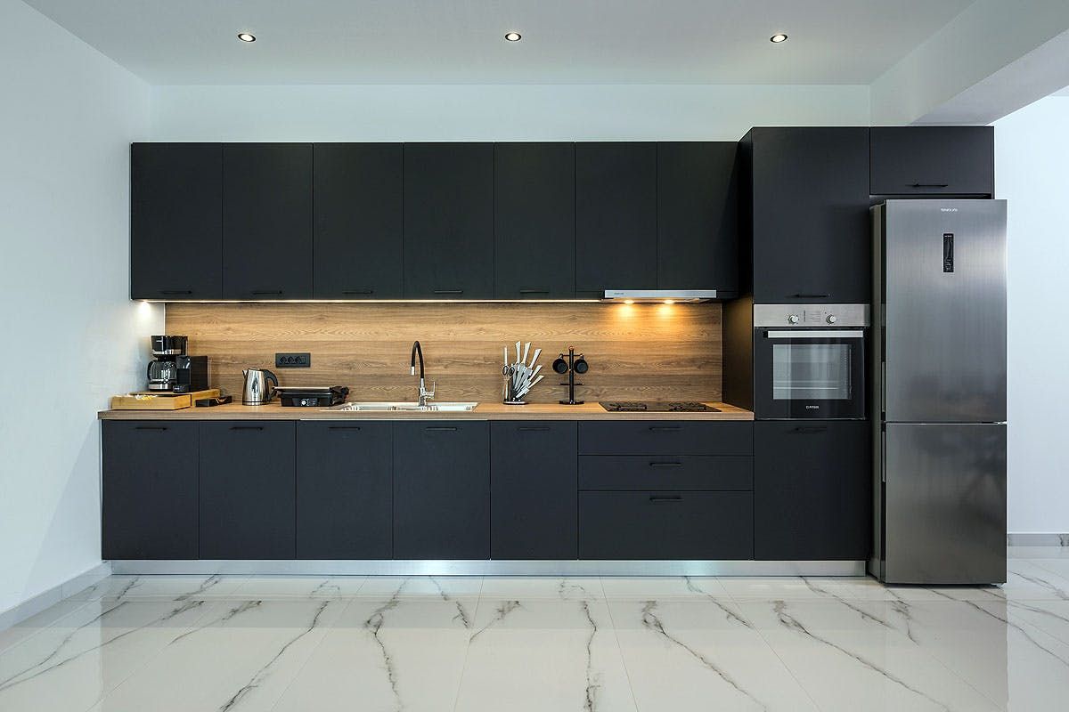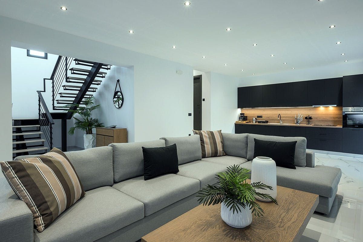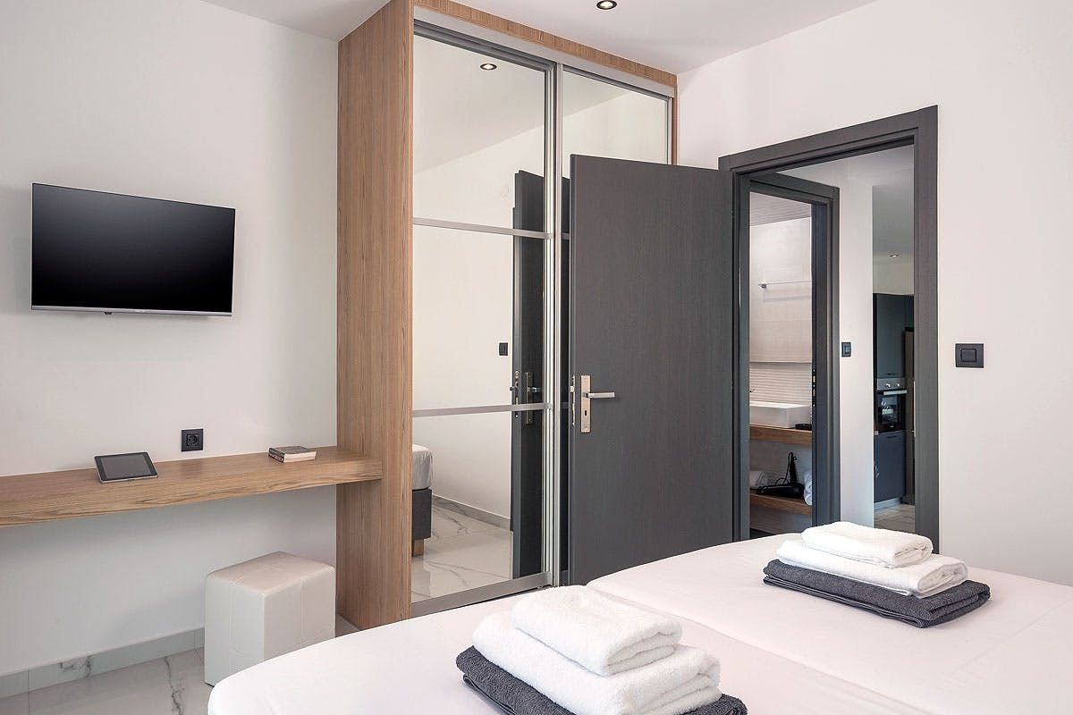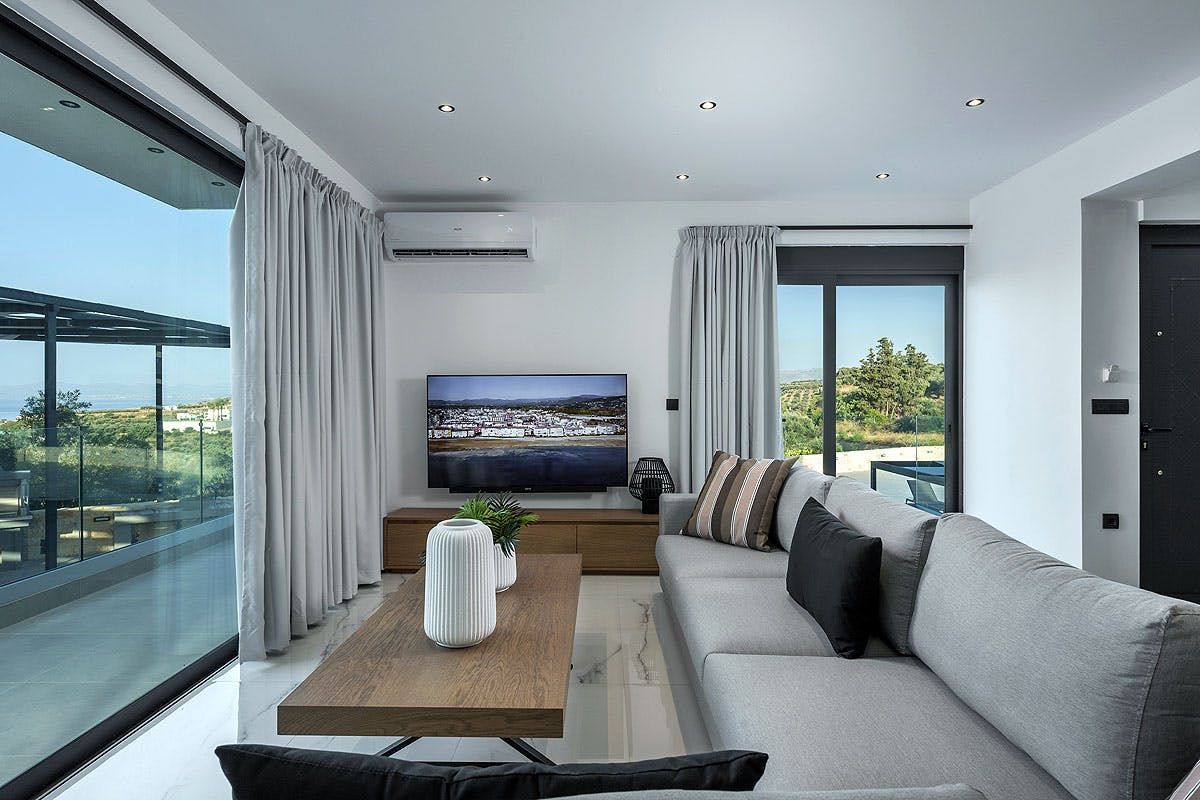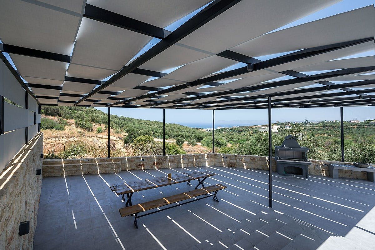 This sleek villa is situated within walking distance of the famous Agia Marina Beach, making it the perfect spot for a relaxing Crete holiday. In case you don’t feel like walking, there’s plenty of space to kick back and relax by the pool – there are sun loungers and a sun bed here, not to mention the huge alfresco dining area, complete with a barbecue. Inside it’s all about minimalist elegance – from the modern kitchen to a comfy living area, this home has you covered. And of course, those views of the surrounding countryside and the sea in the distance are pretty special too.
