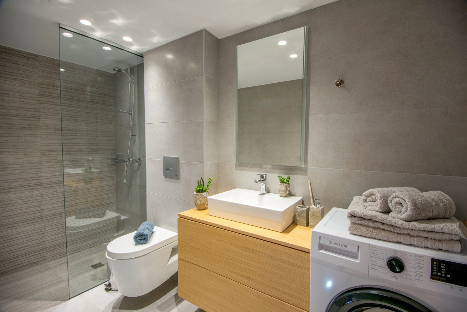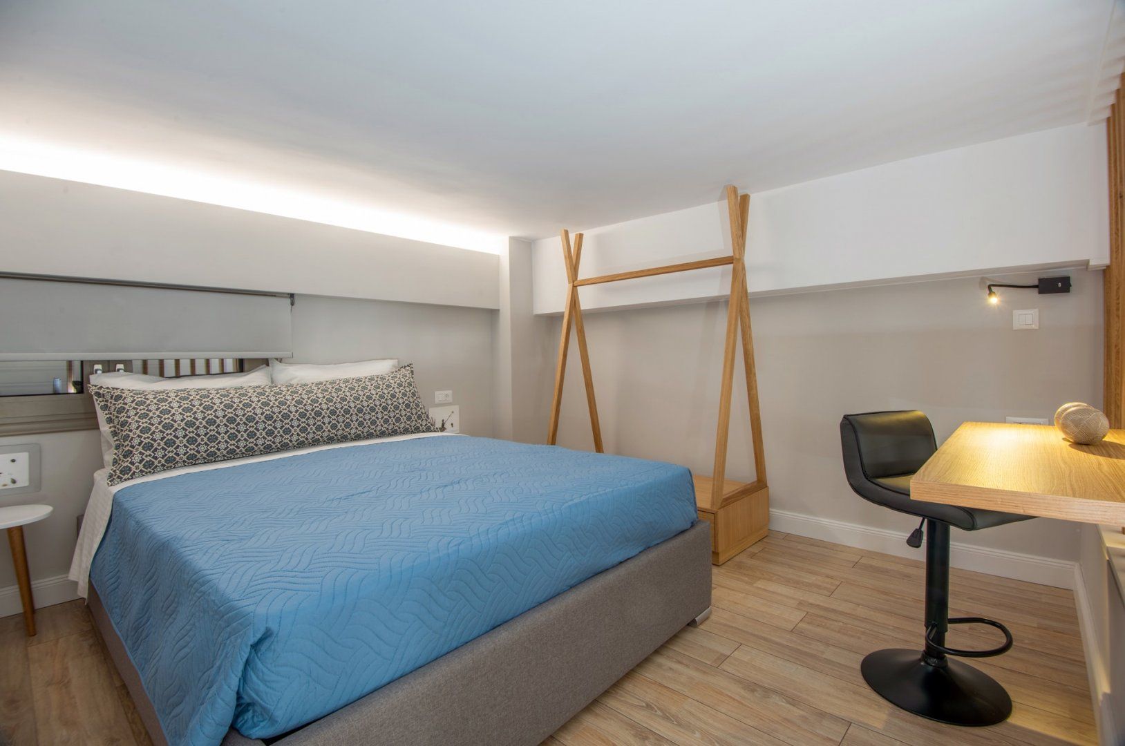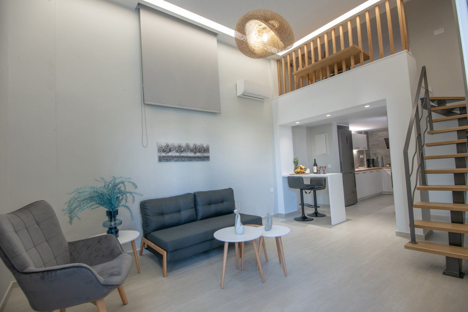 This home has a great location – it’s just 400 metres from the centre of Agios Nikolaos. Have a stroll around the Bay of Mirabello, or explore the harbour and the cafés and restaurants that line the shore of Voulismeni Lake. The nearby beaches of Ammos and Almiros are a must for beach lovers too. Back at this modern apartment – there are stairs to climb and although there’s an outdoor seating area, it’s not private, as it shares the terrace with neighbouring apartments.