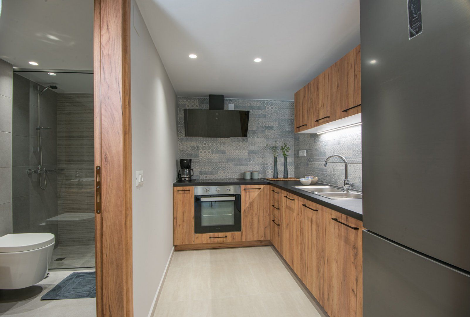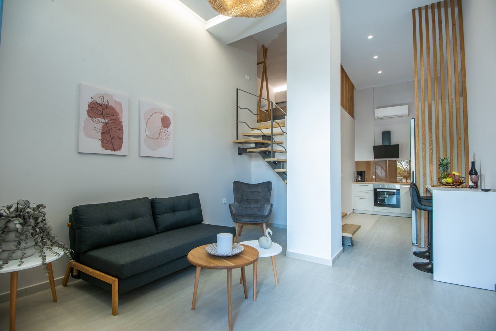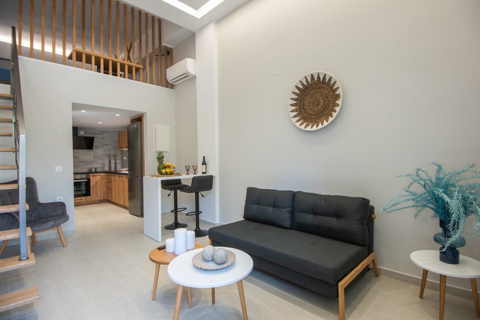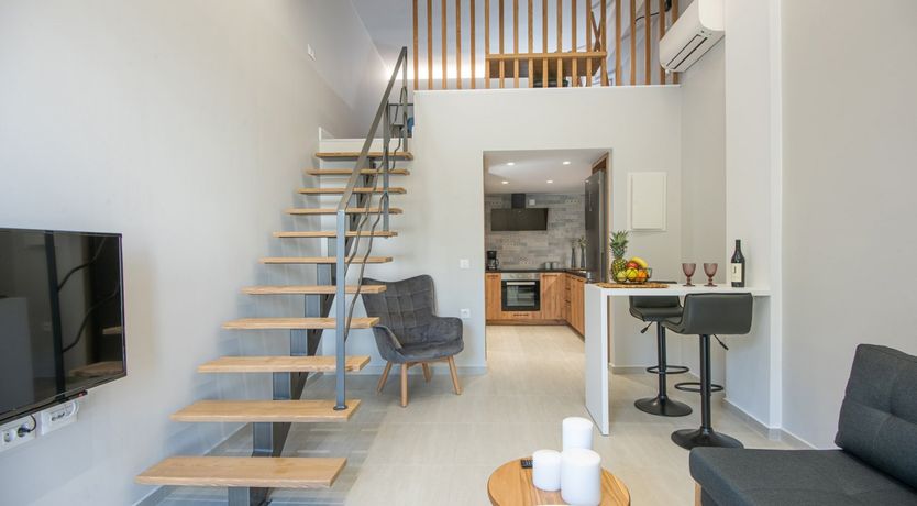 This apartment is situated just 400 metres from the centre of Agios Nikolaos on the beautiful Bay of Mirabello. Explore the small harbour or the circular Voulismeni Lake with its cafes and restaurants. Alternatively, spend the day on one of the nearby beaches of Ammos and Almiros. Back at this modern apartment, whilst there is a patio area, it’s part of a larger shared terrace with your neighbours, so this place won’t suit you if you’re looking for more outside space.