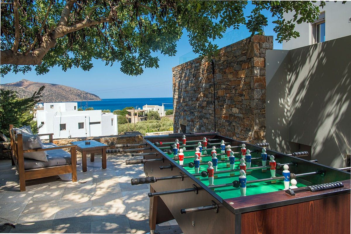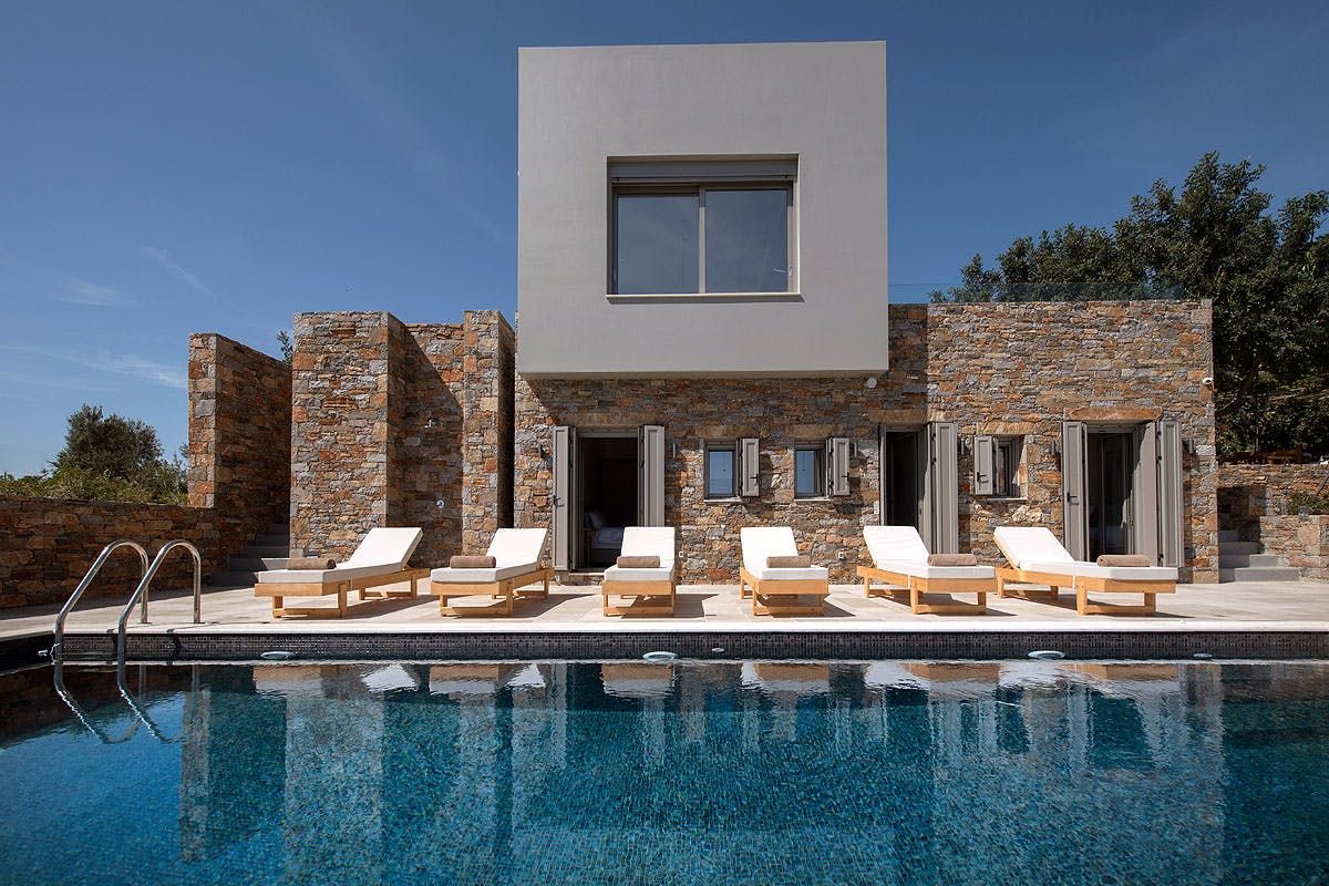 This villa is all about the view. It’s on a small hillside in Agios Nikolaos, looking out over Mirabello Bay. The terrace, with its private infinity pool, is a dreamy spot for gazing out at the blue sea. There’s also a pergola and a barbecue with an alfresco dining area. Inside, you’ll find luxuries like the Finnish sauna, which may come in handy after a workout – there’s exercise equipment here, along with a small basketball court. For days at the beach, you need only walk 200m to reach the Blue Flag-awarded Havania Beach. One guest will be on a sofa bed, which may not be suitable for everyone.