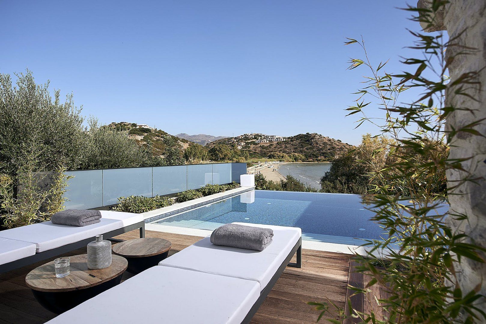 Overlooking Almyros Beach in eastern Crete, this villa is all about luxe details. Two heated pools, a private gym, manicured grounds and direct beach access are just some of the delights in store. The space is made up of two separate villas – each with its own living area and kitchen – making it perfect for multigenerational families or groups looking for a bit more privacy. Inside, the decor is coastal boho chic, with a freestanding en-suite tub and balcony access from the bedrooms among the many features that caught our eye. And a carefree stay wouldn’t be complete without daily breakfast served straight to your villa and daily housekeeping too. With your host also able to organise a plethora of extras (for a fee) – including chauffeurs, personal shoppers and in-villa dining – you’ll find yourself leaning into the holiday lifestyle in no time.