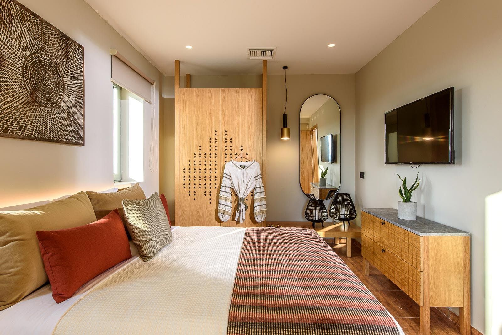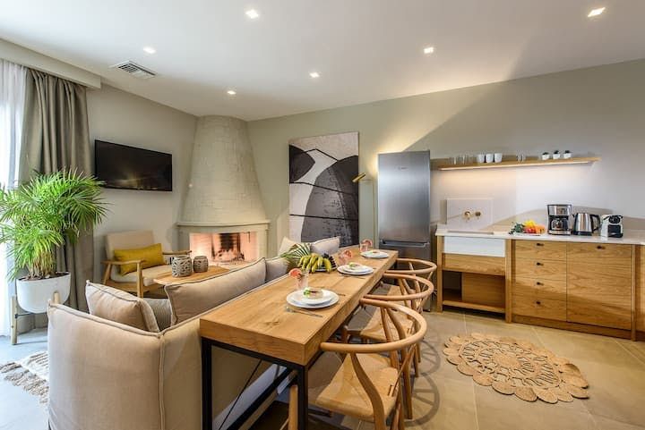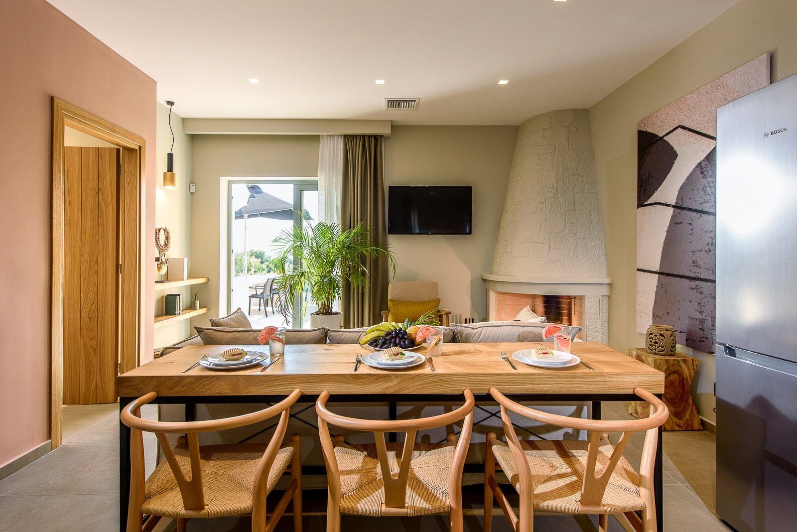 If you're looking for Greece without crowds of beachgoers, this rural villa just a short walk from the sandy beaches of Hersonissos is a perfect choice. Located in a remote spot, the port city of Heraklion is also just a quick drive away, giving you convenience without the noise of a beach resort. The villa itself is within a shared complex, although privacy is not a problem. It caught our eye for its generous outdoor space, with a swimming pool, sheltered garden and barbecue on the terrace. So you can soak up the sea views and surrounding natural beauty whilst enjoying a glass of wine on the balcony or lazing on sun loungers by the pool.