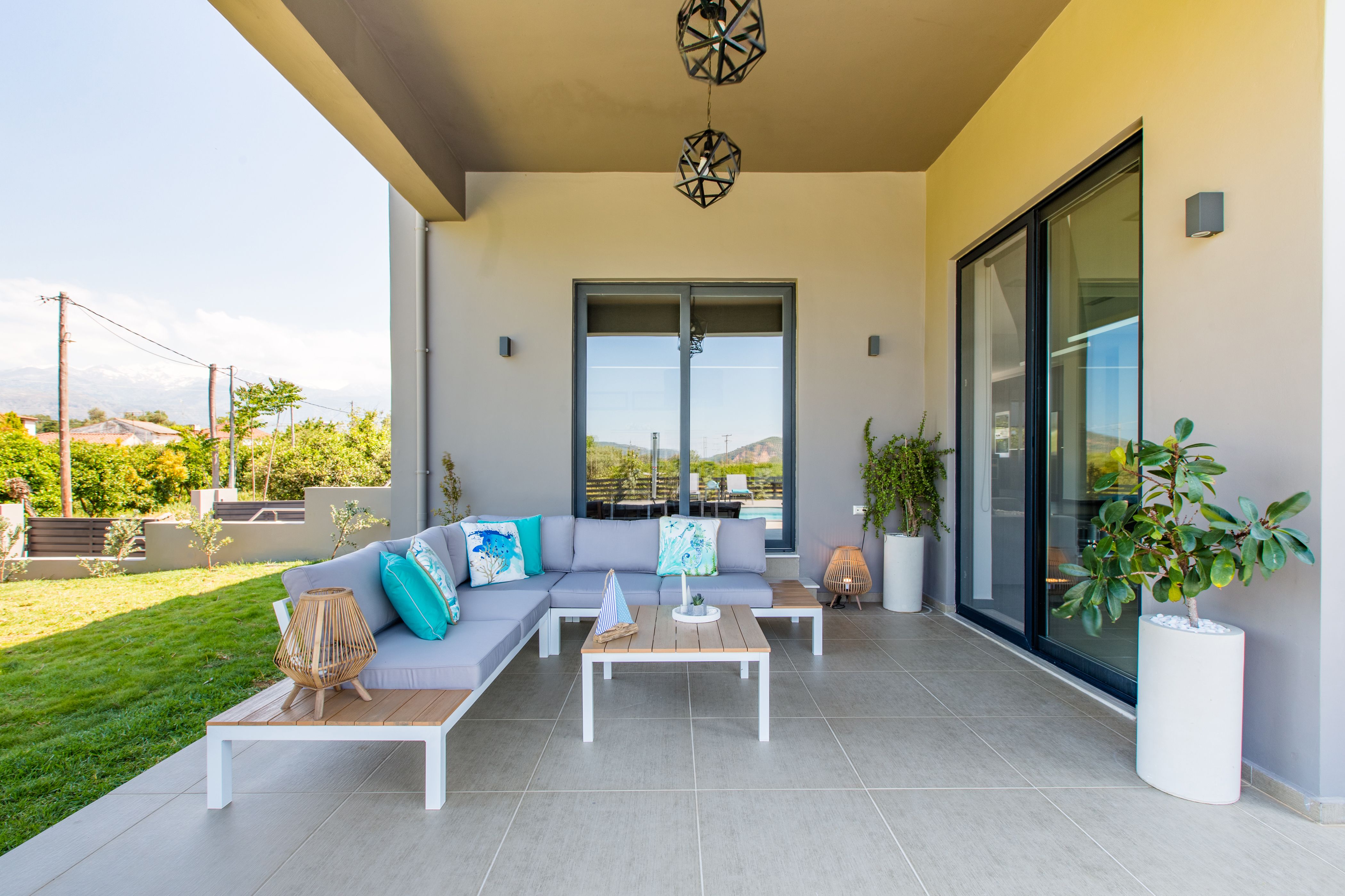 On the edge of the village of Alikianos, this modern villa offers a peaceful stay in west Crete. If you’re in the mood for some hustle and bustle, the vibrant city of Chania is only a fifteen-minute drive away. There’s plenty of space for both entertaining and relaxing here, with two dining areas, a shaded patio and enough loungers for the whole group to soak up the sunshine. If you’ll be staying out of season and still want to take advantage of the private pool, heating is available for an additional fee.