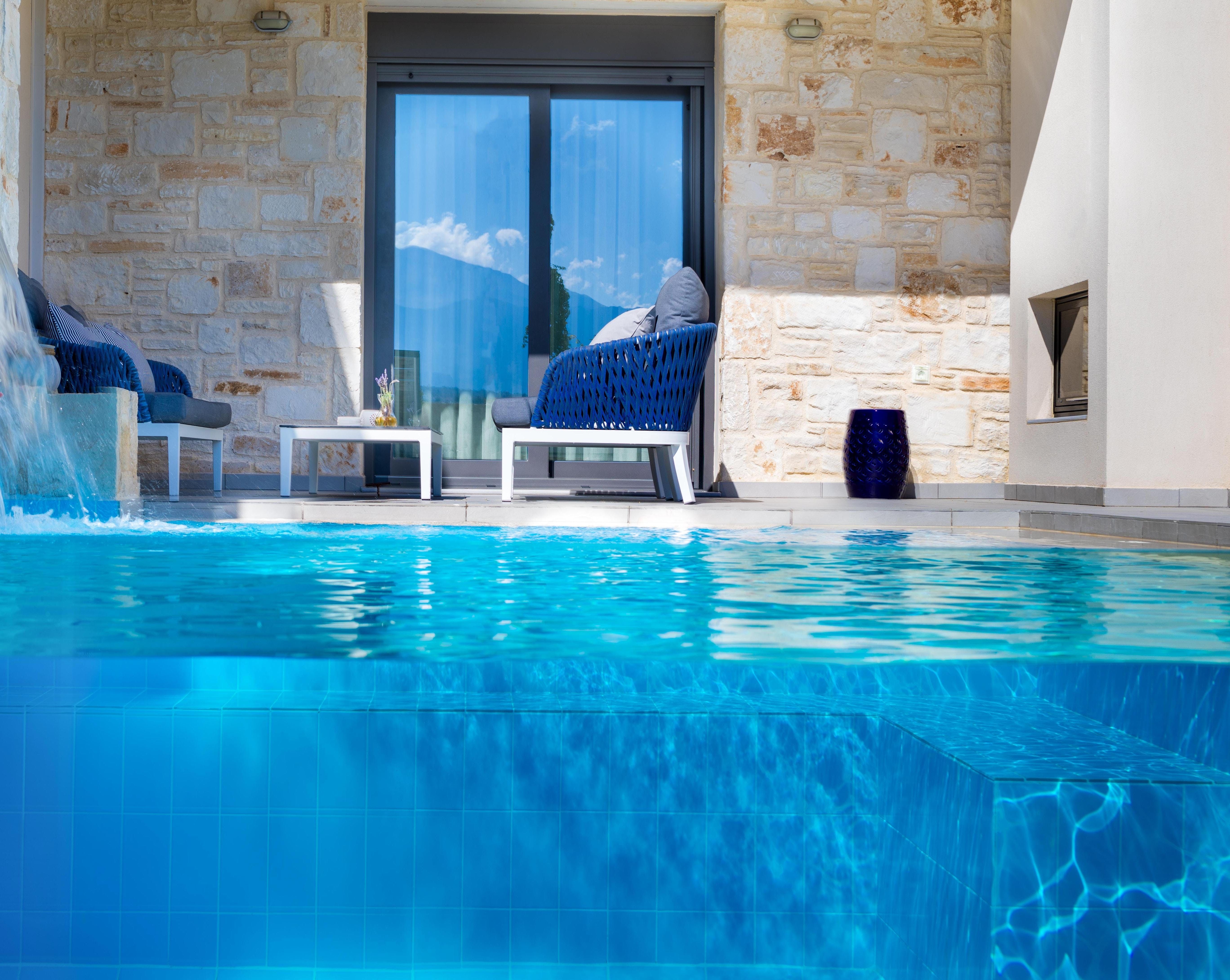 Settle into this coastal hillside villa, and revel in the long summer days from your perfect little terrace and private pool. Soak up the sunshine on one of the lounge chairs, before cooling off with a dip or a massage under the waterfall feature. After a refreshing swim, dry off for an alfresco lunch under the shade of the pergola – complete with a barbecue and a covered seating area, it's the ideal spot for lazy mezze platters or big Greek feasts come evening.
