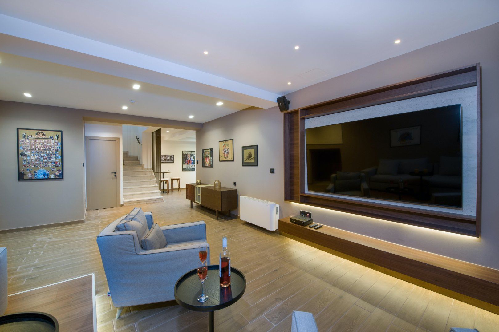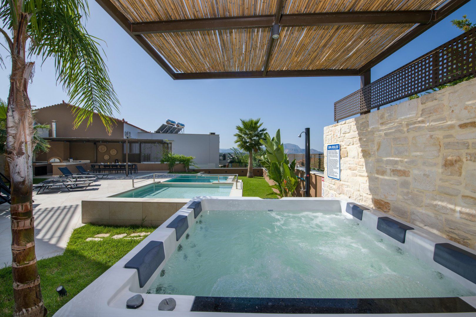 Located in Almyrida, this villa is just 500 metres from a long stretch of sandy beach. Whilst the fishing village is quiet, its offers an array of cafes, shops and restaurants, all within walking distance. Featuring two private pools, one of which is designed especially for kids, you can rest assured that the little ones will always be kept entertained. The garden is particularly impressive thanks to a hot tub, lush lawn and Jacuzzi, but the inside of the home has its fair share of little luxuries, too. We love the basement here, where you’ll find a plush home cinema and a pool table.