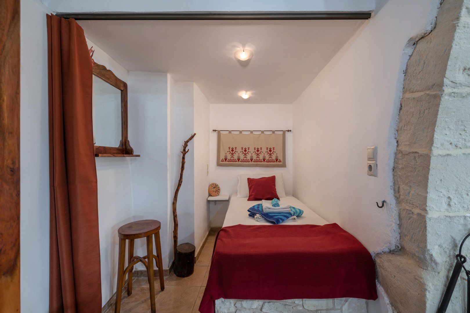 In the historic village of Aspro, this charming villa offers beautiful mountain views and plenty of peace and quiet. Just 1650 metres from the beaches of Almyrida, you needn’t venture far to find clear shallow waters and golden sand. Chania town is a little further away but well worth a visit, so we’d recommend renting a car to get the most out of your stay. The villa itself is a little rustic with plenty of luxurious touches like a private pool and barbecue area, while inside you’ll find traditional stone units. These bedrooms are separated by a curtain, so have less privacy than the bedroom, but offer a cosy and authentic place to lay your head each night.