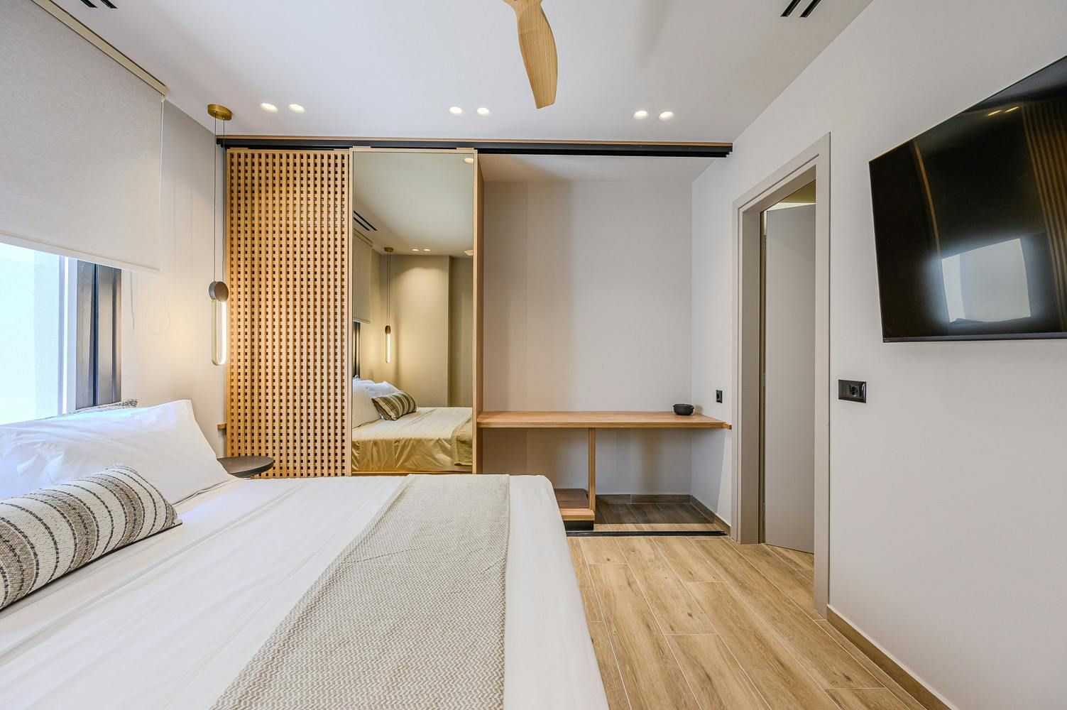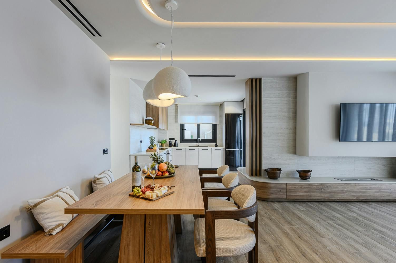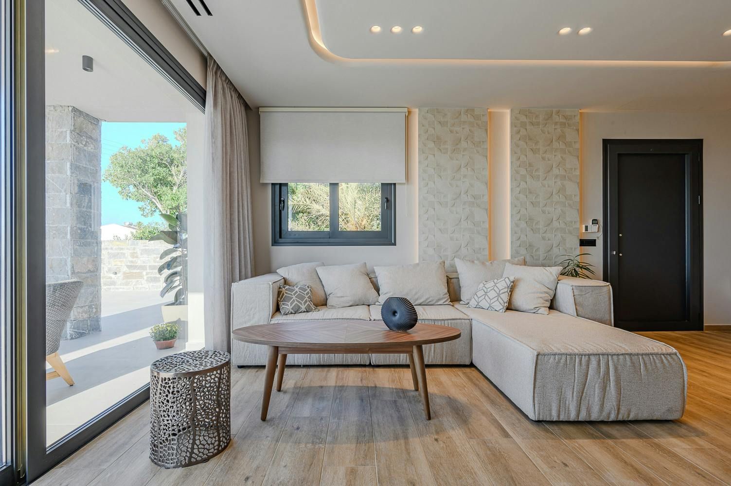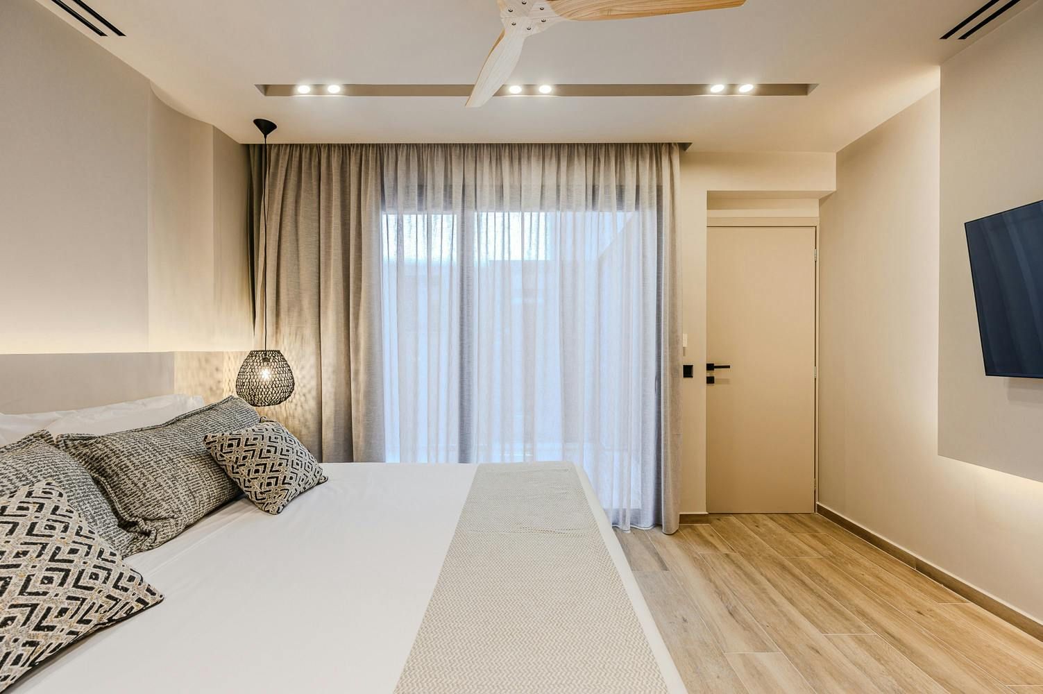 Thanks to its hillside position, this modern villa boasts knockout views of the Sea of Crete. Choose to savour the vistas from the dining terrace or perhaps from the comfort of a poolside lounger. When dusk falls, we recommend heading up to the main bedroom’s private balcony with a chilled glass of raki in hand. In terms of what’s on your doorstep, there’s a restaurant just a five-minute walk away, and Anissaras Main Beach is one kilometre down the road. While walkable, it's more comfortable to drive or take a taxi, especially in the height of summer.