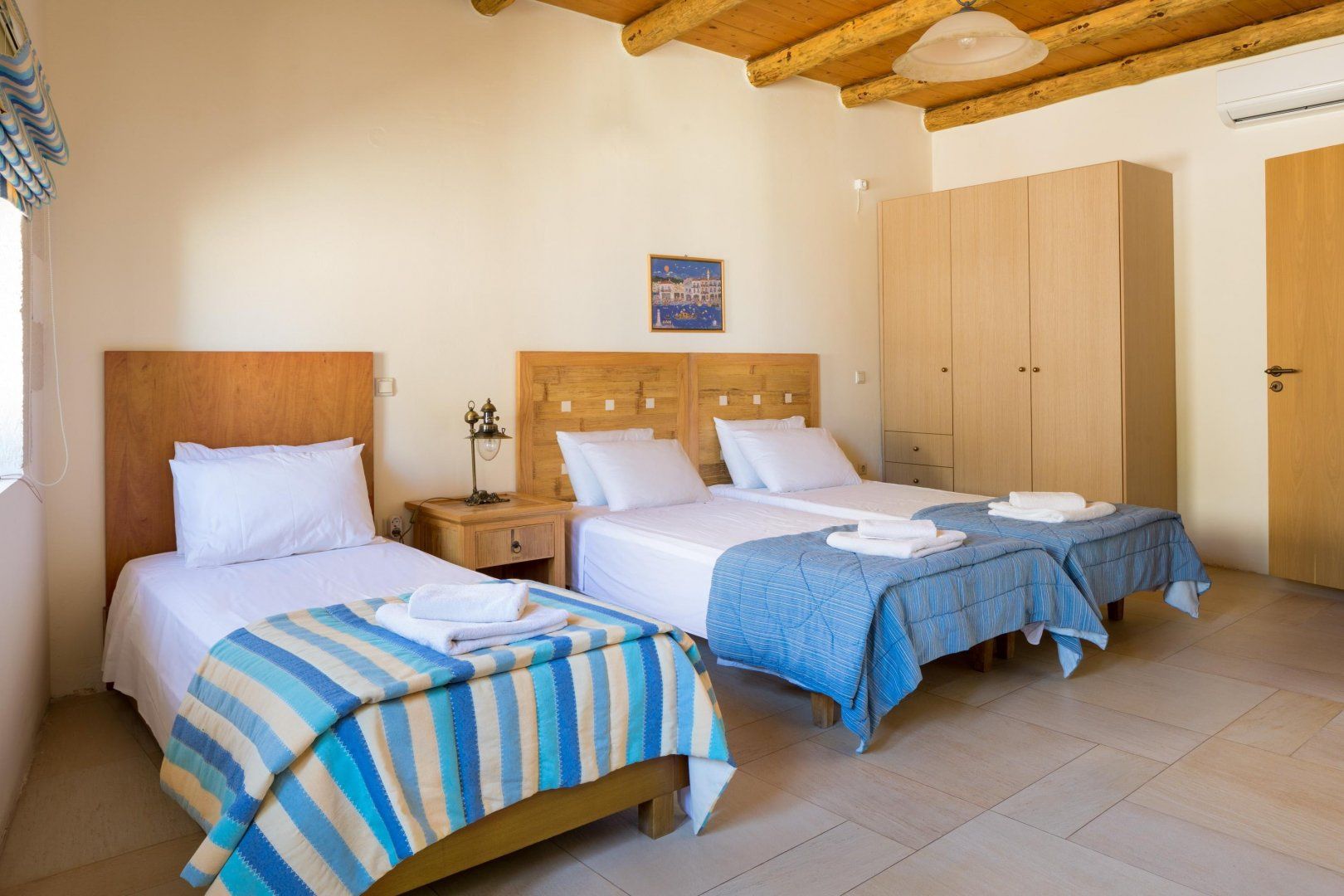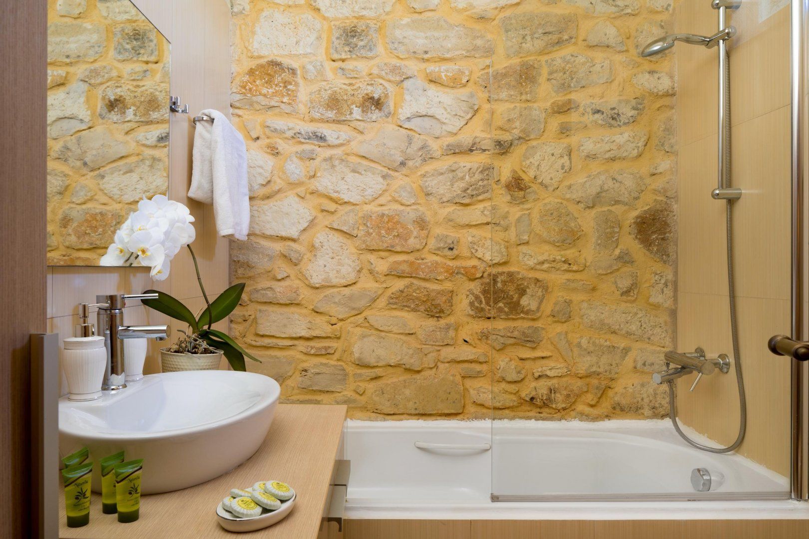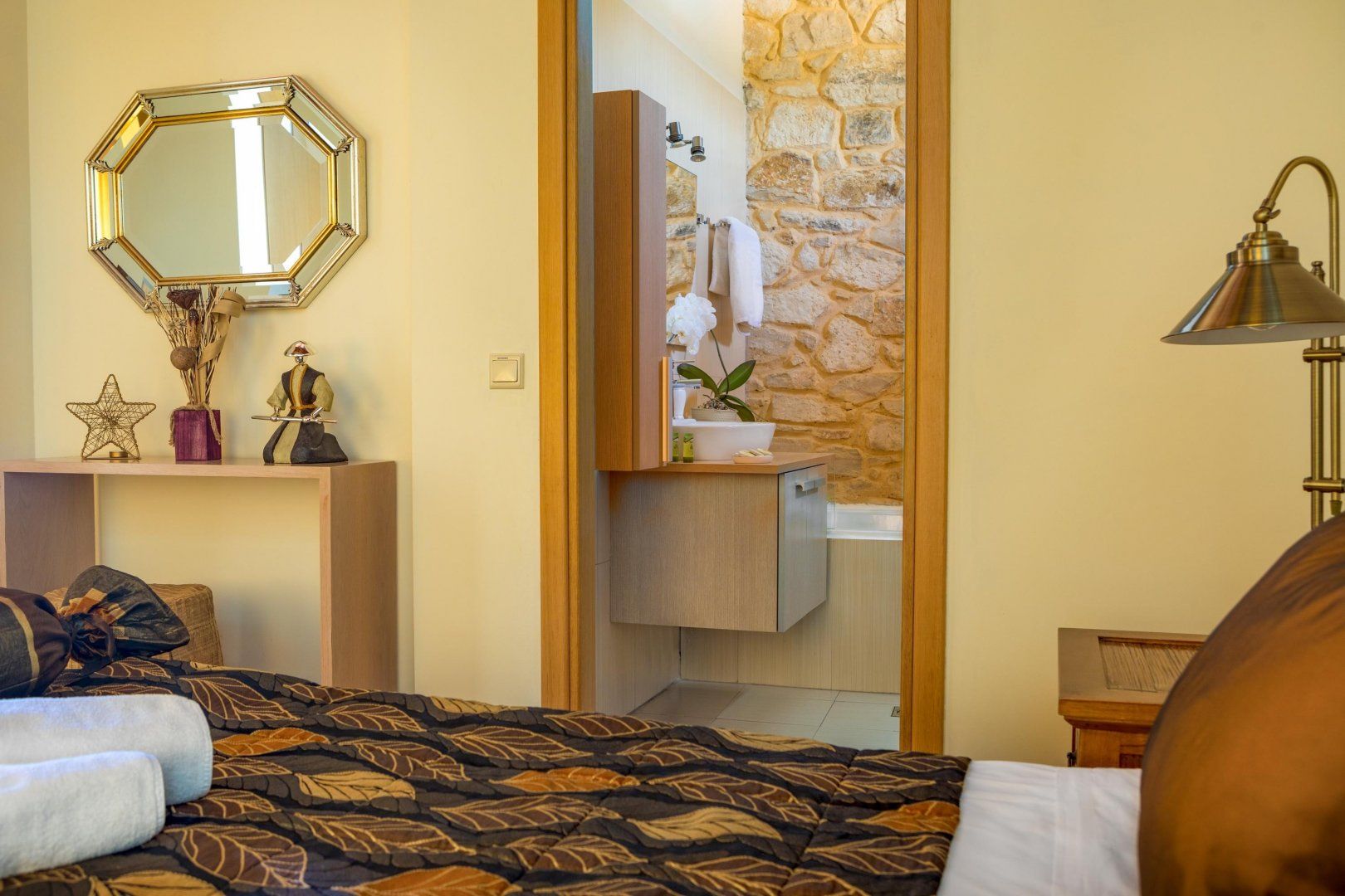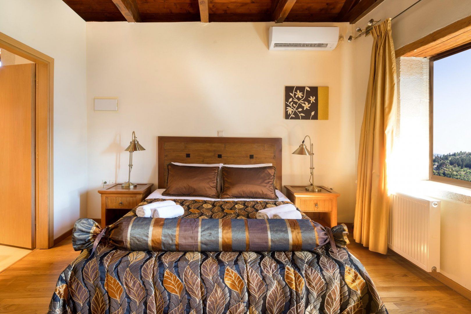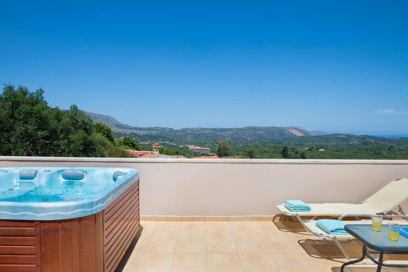 The villa mixes exposed stone walls, spectacular archways and stunning timber ceilings so typical of Cretan construction, with a well-equipped kitchen, beautiful bathrooms and a gorgeous outdoor pool. It's a clever combination of traditional construction (to fit in with neighbouring buildings) and modern convenience that creates a desirable package. A rooftop terrace with far-reaching views over the surrounding landscapes towards the Bay of Souda is just the cherry on top.
