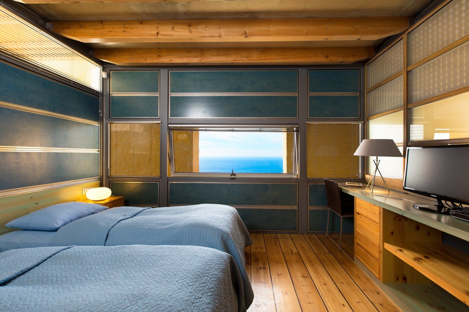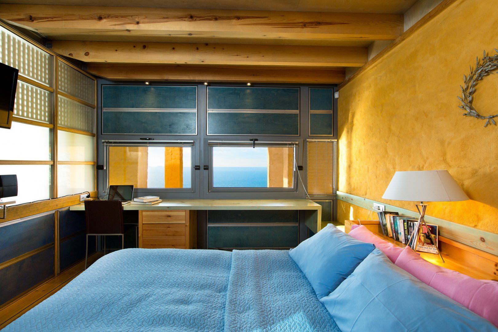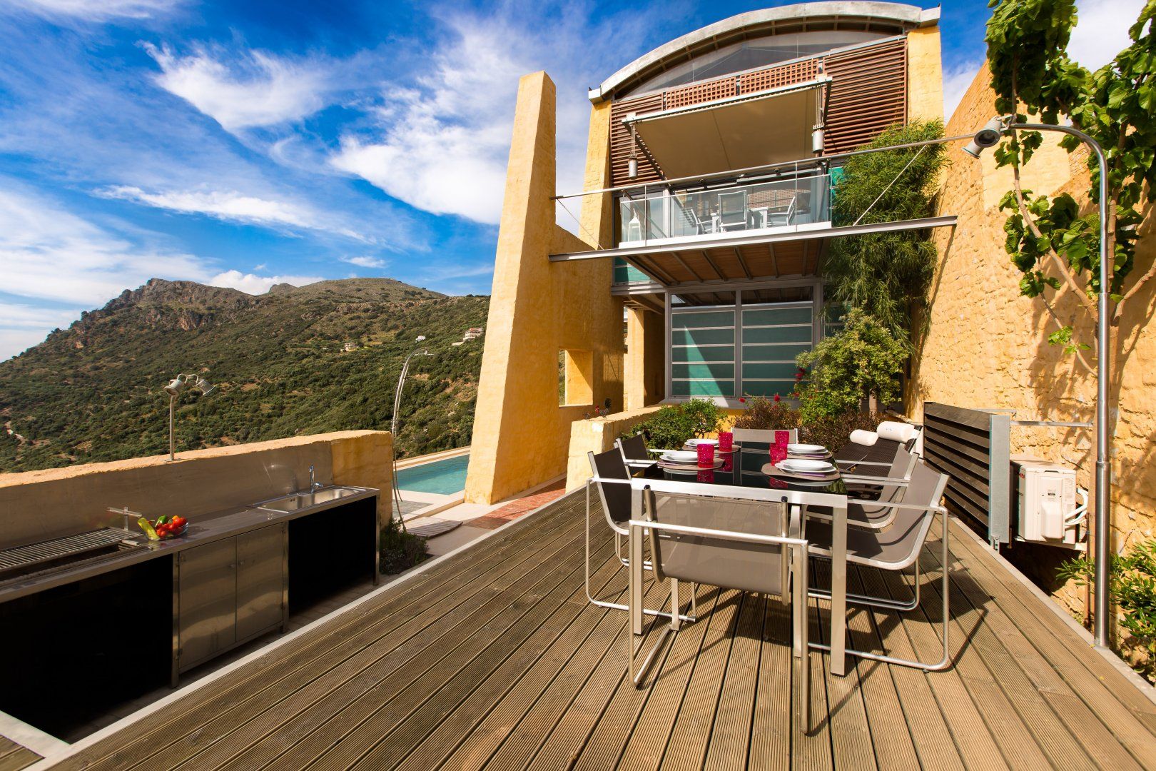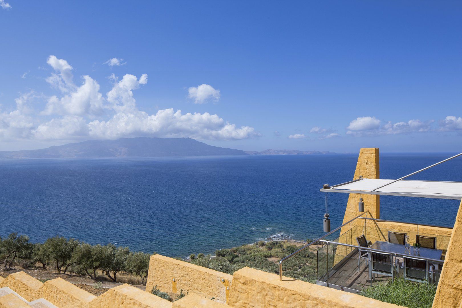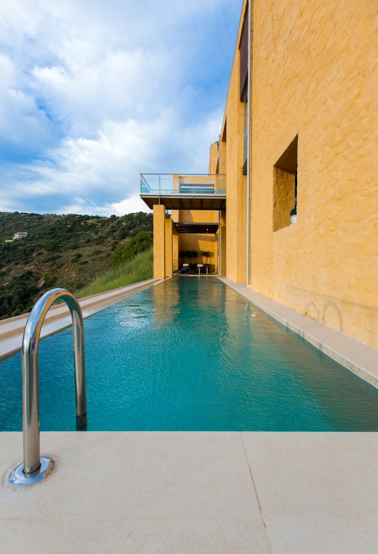 This architecturally unique villa in Chania is all about that view. Overlooking Kissamos bay and the Cretan sea beyond, the vistas are on full display from the private swimming pool and the balcony. Though the colour scheme might not be to everyone's taste, the location is ideal, and the outdoor kitchen provides the perfect opportunity for alfresco meals. The private gym and sauna are an added bonus, but if you'd rather spend your days basking in the sun at the beach, Ravdoucha is a short drive away.
