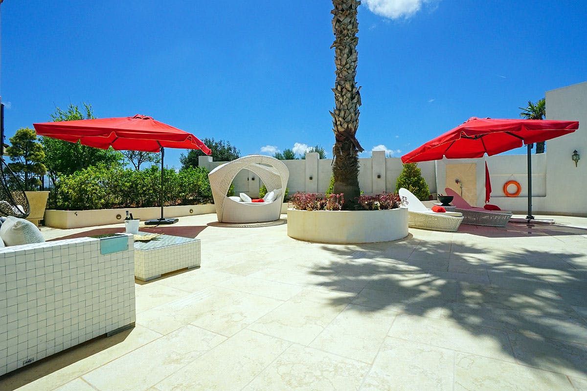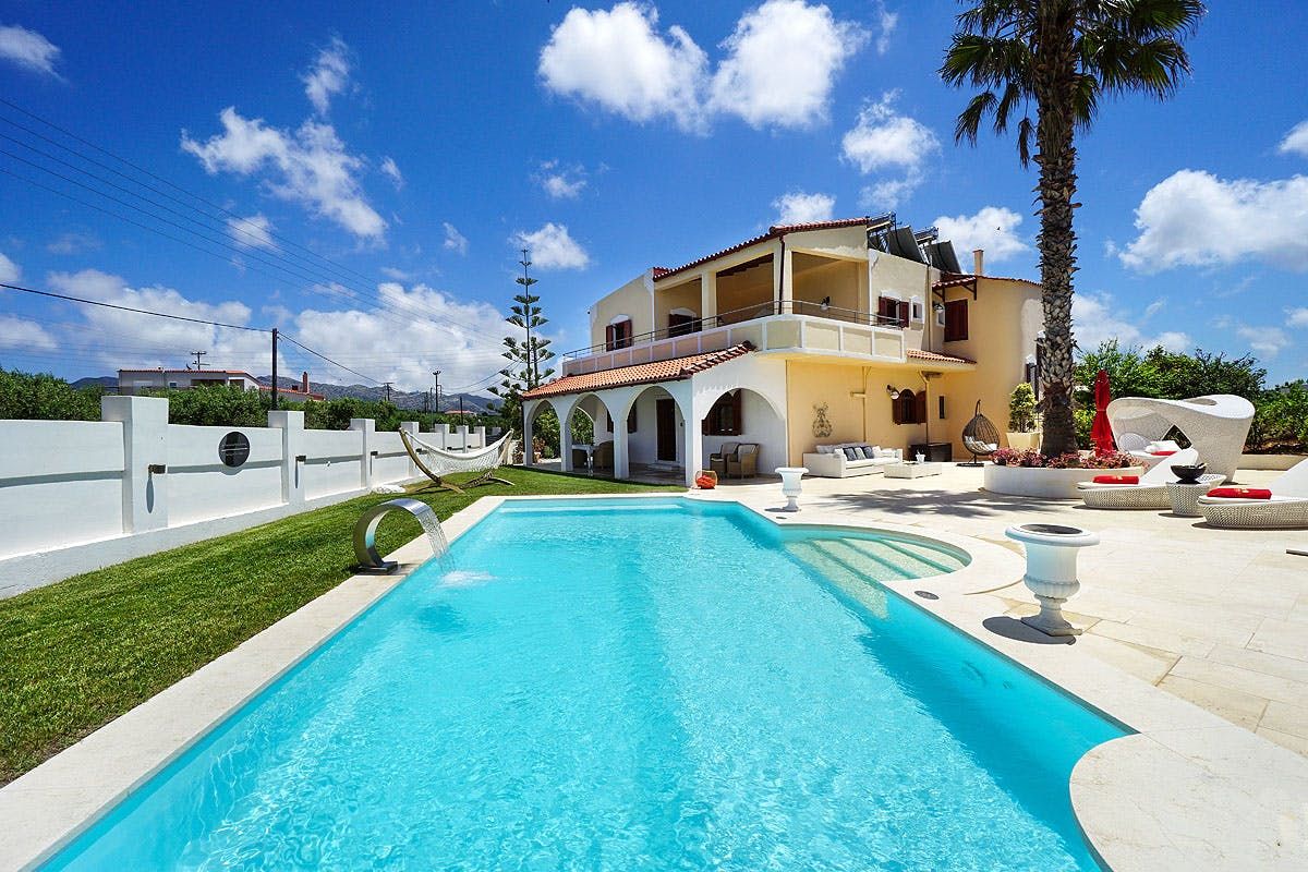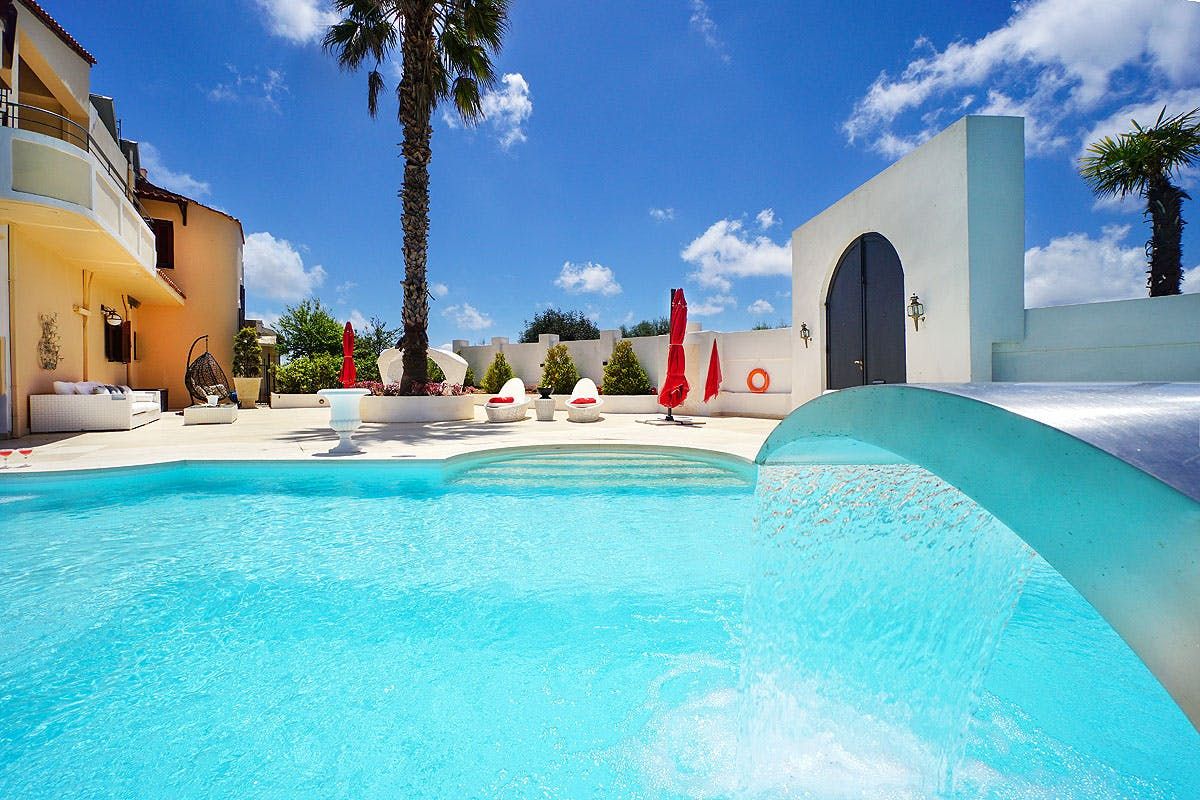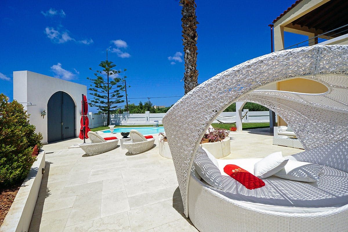 Set one kilometre back from the shoreline, Greek supermarkets and open-air restaurants are a short drive from this villa. For families seeking a quiet break in the sun, the pool terrace and seating spots centre around outdoor living. But we think the small home gym and tiled bathtub offer bonuses inside, too. At nearby Kalathas Beach, bucket and spade days are aplenty, and you can rest easy knowing that the shallow waters are safe for kids and great for snorkelling.