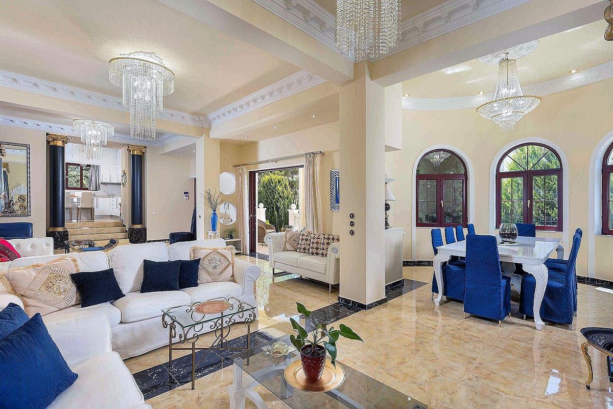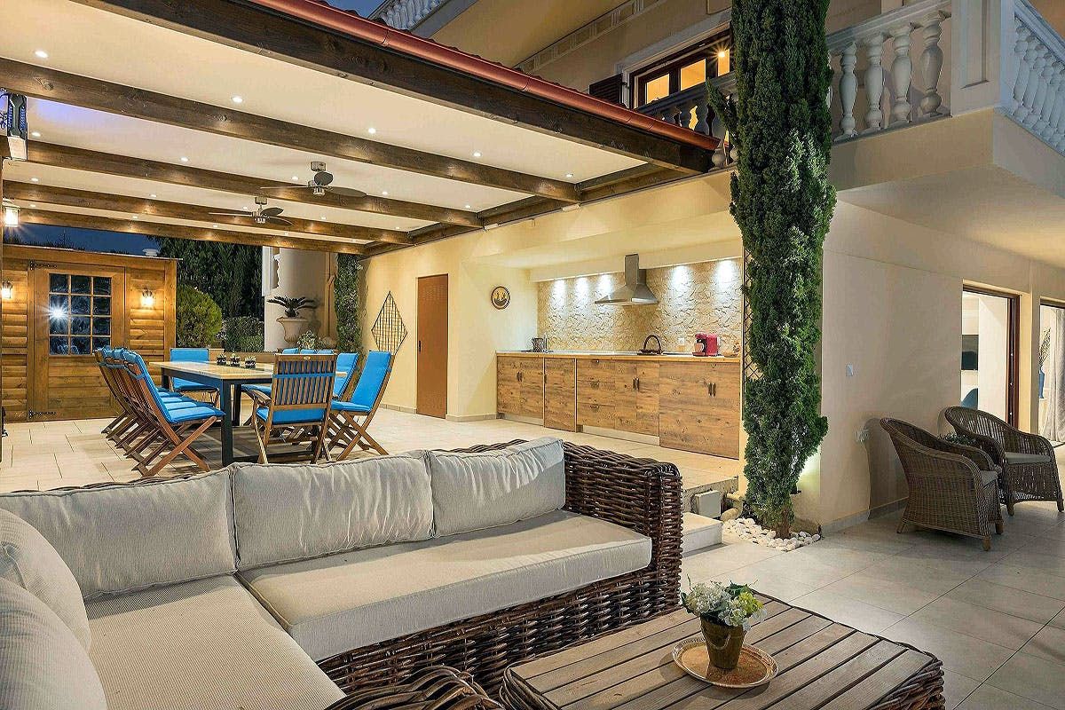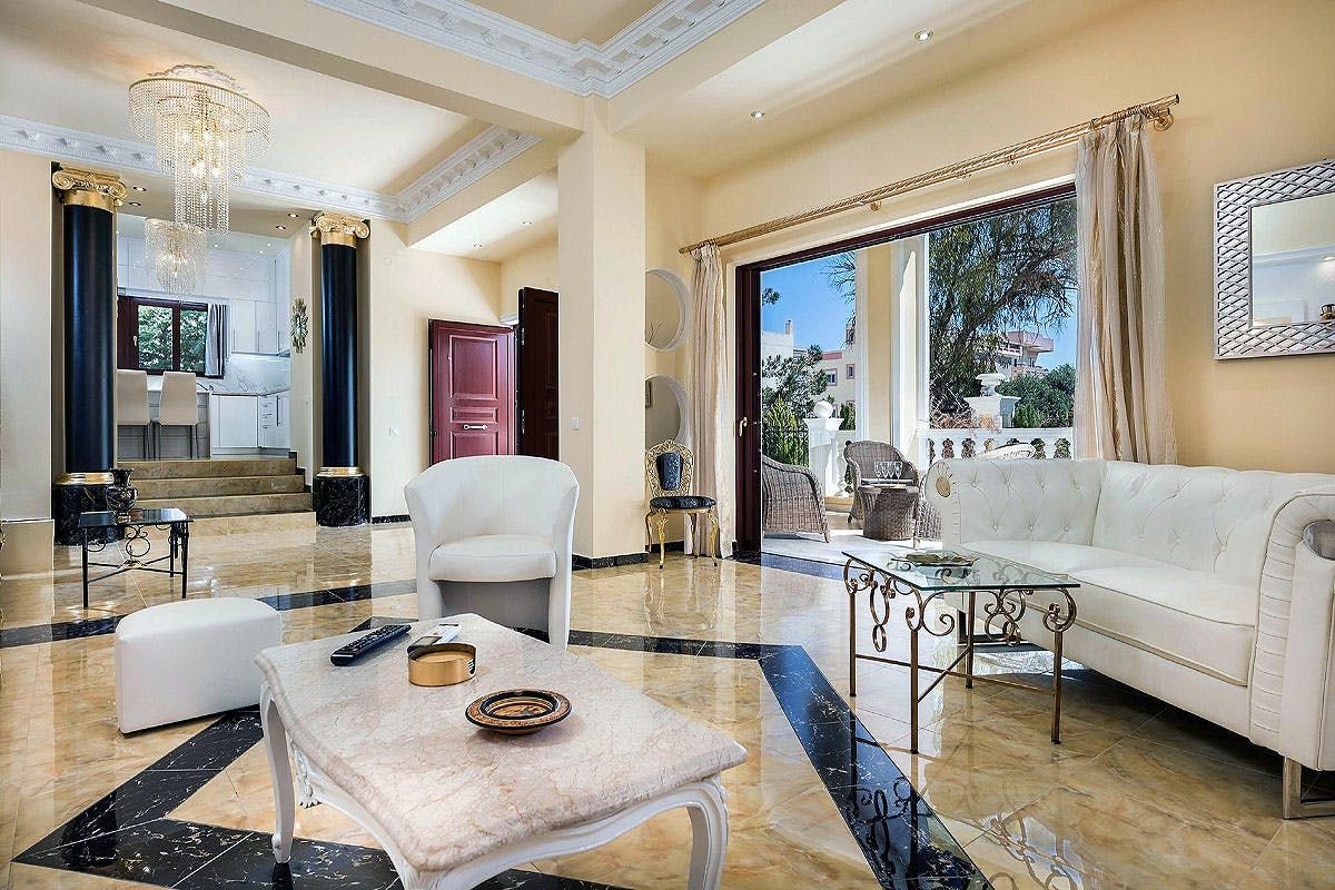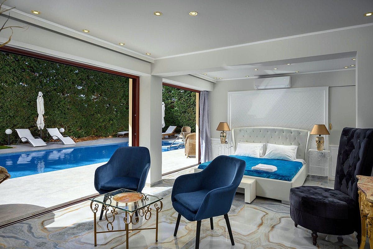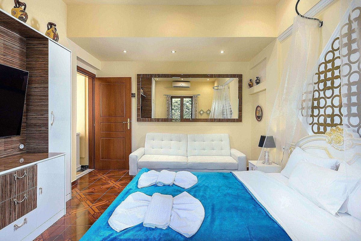 Bringing a touch of luxury to island living, this palatial villa has everything from Swarovski chandeliers to marbled Jacuzzi tubs. The decor, inspired by ancient Greek myths, might not be to everyone's taste, but the home has plenty of space and is comfortable. Private pool, alfresco dining area, and sun-kissed terraces – this home truly has it all. More than that, you're only a five-minute walk from the sandy beach of Agios Onoufrios, so you can drop your bags and head down the hill to bask in the sun. Chania is also a short drive away.