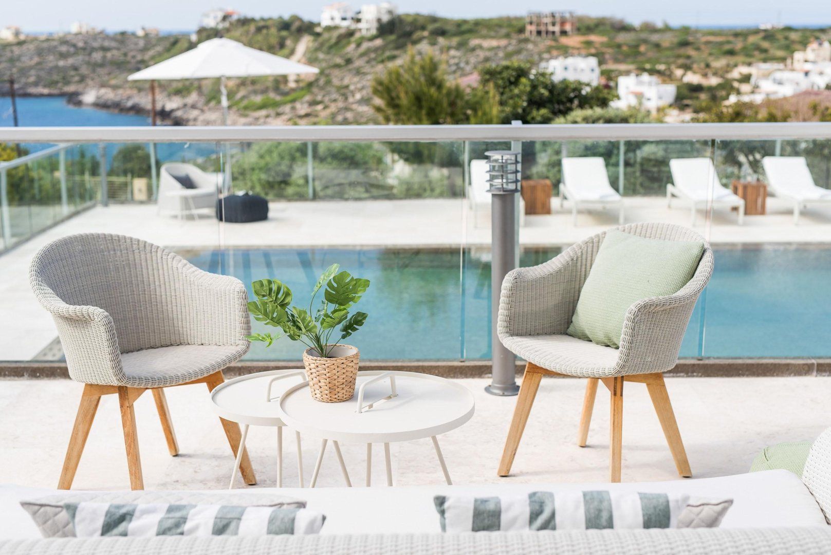 Individually designed and redecorated each season, the concept of design is fundamental here, so feel assured that the interiors will present the space in the most comfortable and admirable style that adapts with the seasons. Since the sun shines pretty much all year round in Crete, you'll no doubt spend much of your time in the garden by the pool. With an outdoor shower, outside dining area and plenty of lounge seating from which to master the art of relaxation – you'll be spoilt for choice when it comes to choosing a spot to settle down.