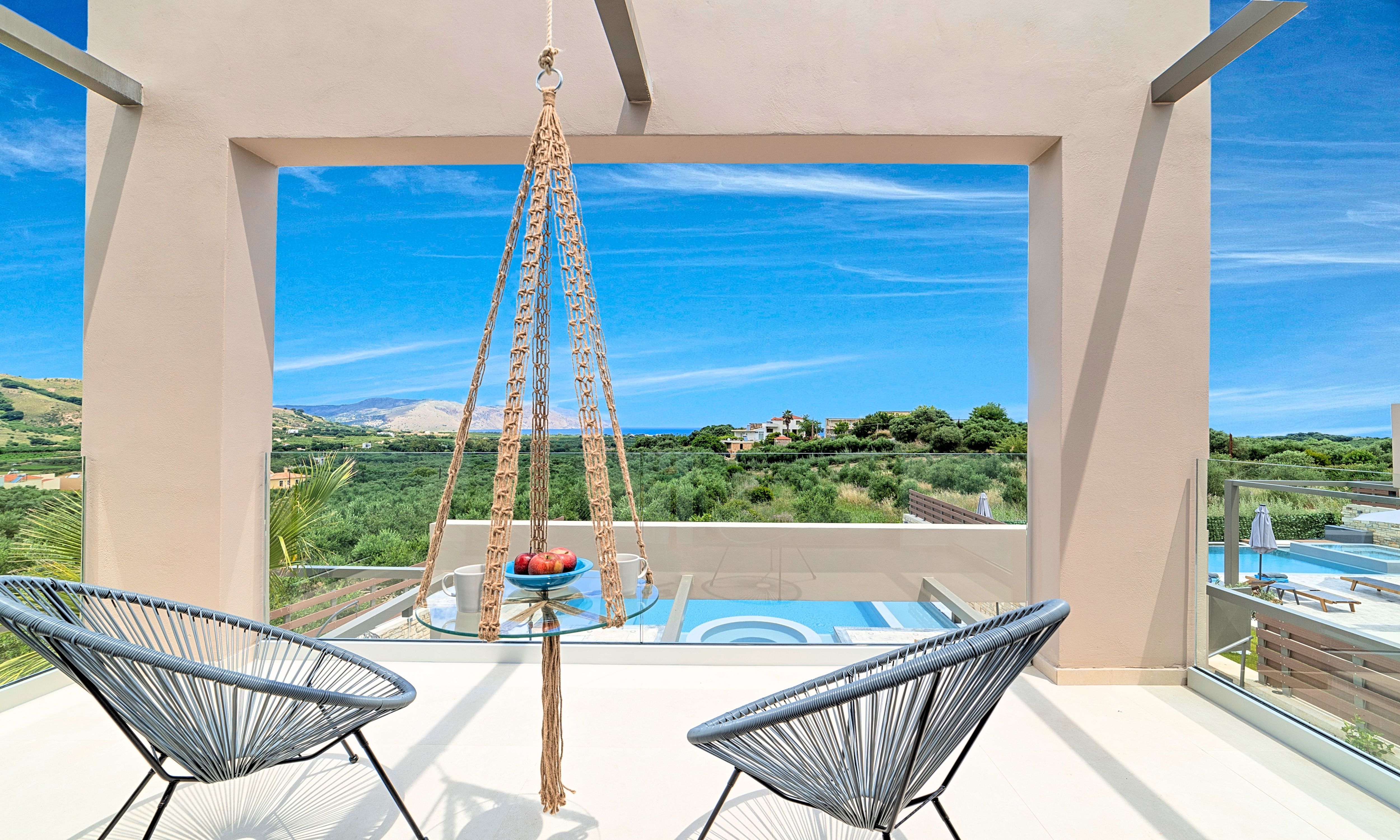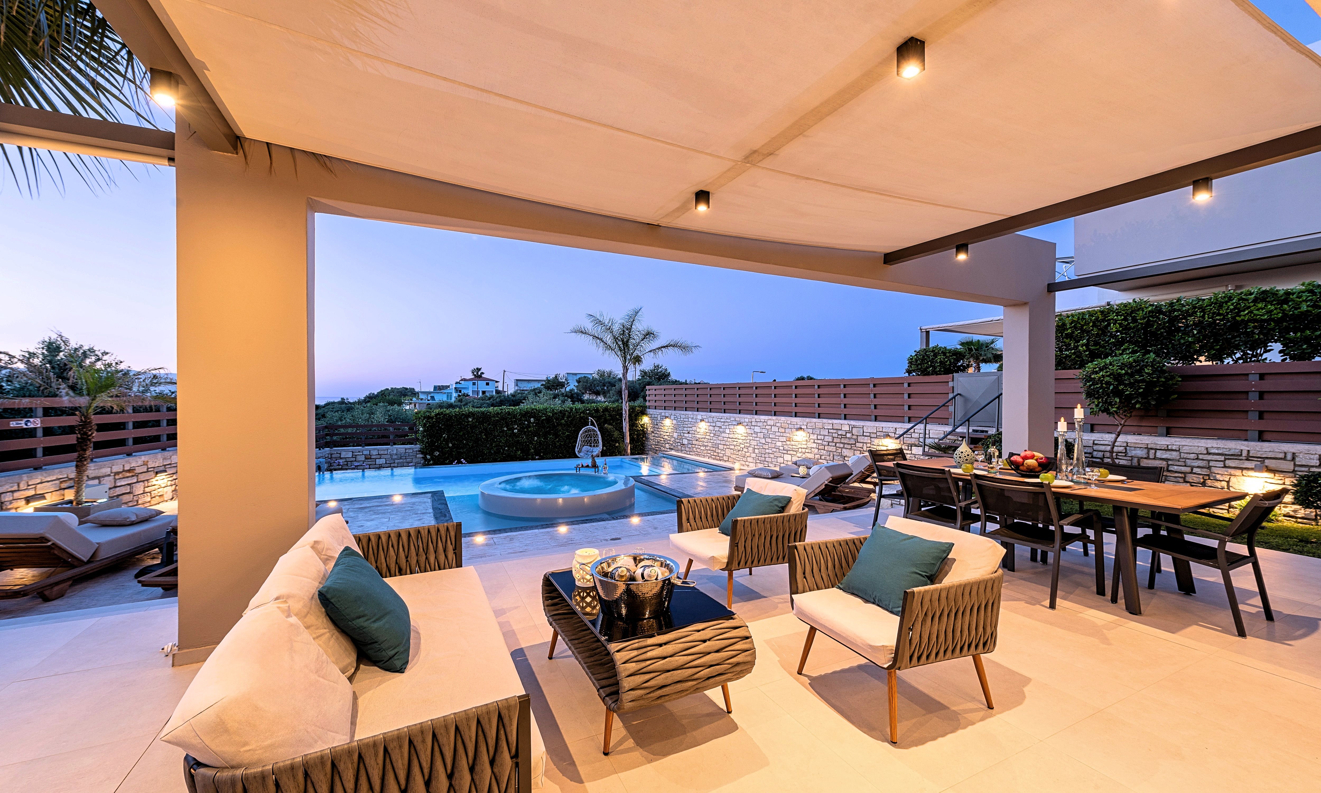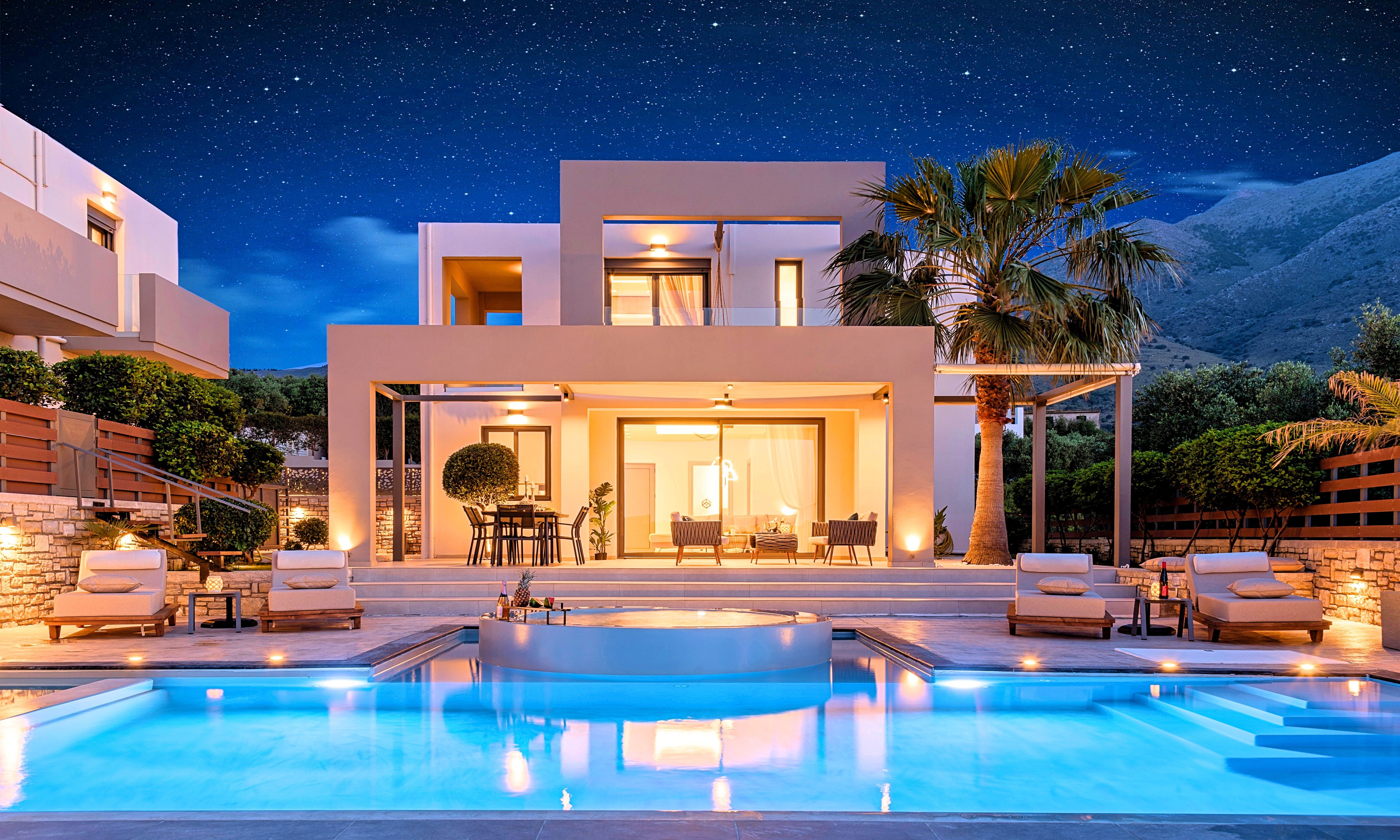 Nestled in the countryside, surrounded by mountains, this villa captures the laid-back Cretan lifestyle. A scenic stroll through ancient olive groves brings you to the shores of Lake Kournas, where you can rent pedalos or picnic on the sand, while the sea is just a few minutes’ drive away. Inside, it’s bright and contemporary, with an open-plan living area that flows onto a terrace with a lounge, alfresco dining, and a swimming pool with a built-in hot tub. Fire up the barbecue for feasts under the stars, or wander down to one of the local tavernas to sample freshly caught fish and traditional Greek mezze.
