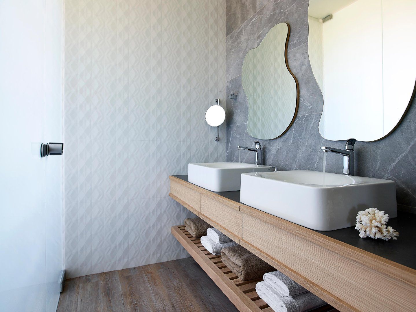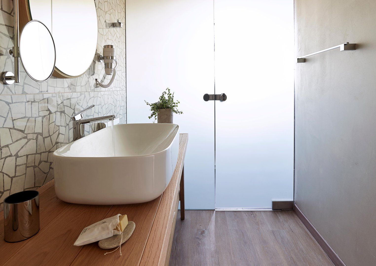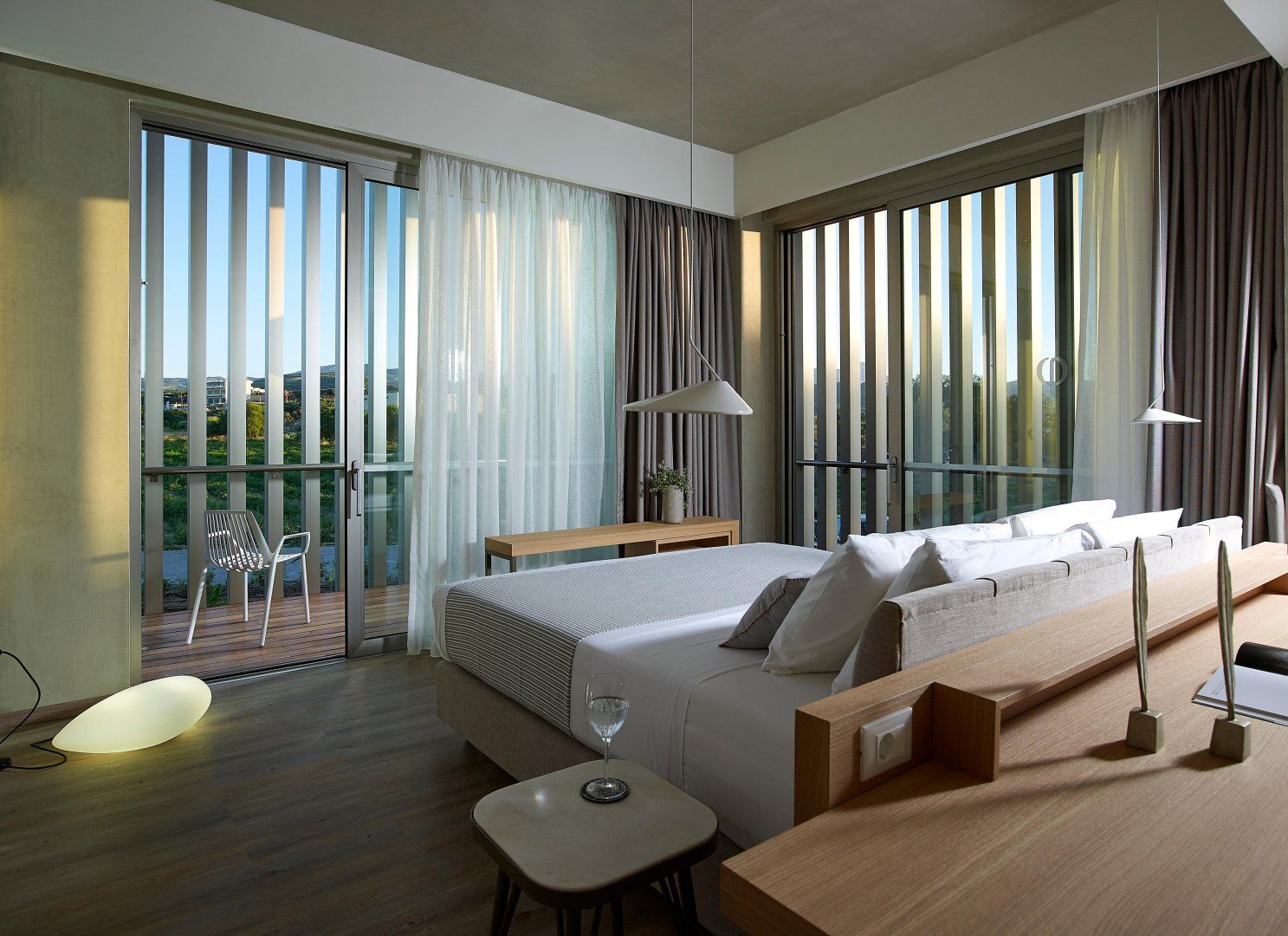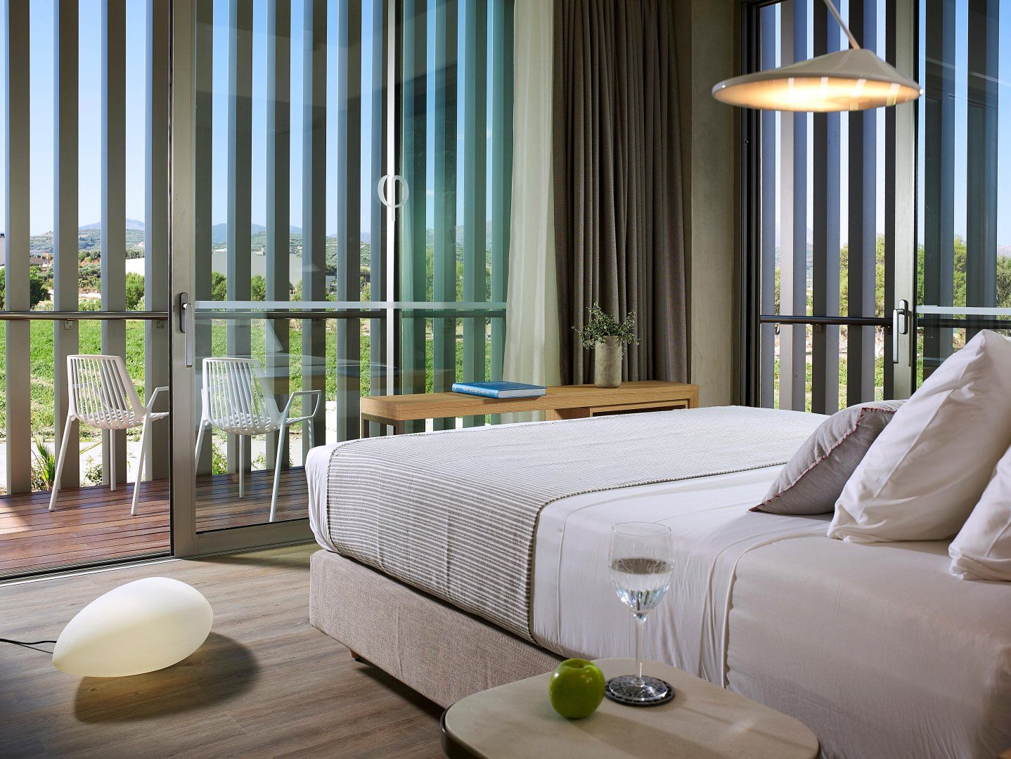 Luckily, this villa is perfectly set up to make the most of the stunning location. The open-plan living space has huge windows which bring the outside in, and the modern design is crisp and chic. Although this home can accommodate up to eighteen guests, it never feels too busy – there's plenty of space to find your own peace and quiet. Relax on the balcony, stretch out on a lounger, or make a splash in one of the two swimming pools. Then, as evening arrives, gather everyone at the alfresco dining table to share a Greek feast together.