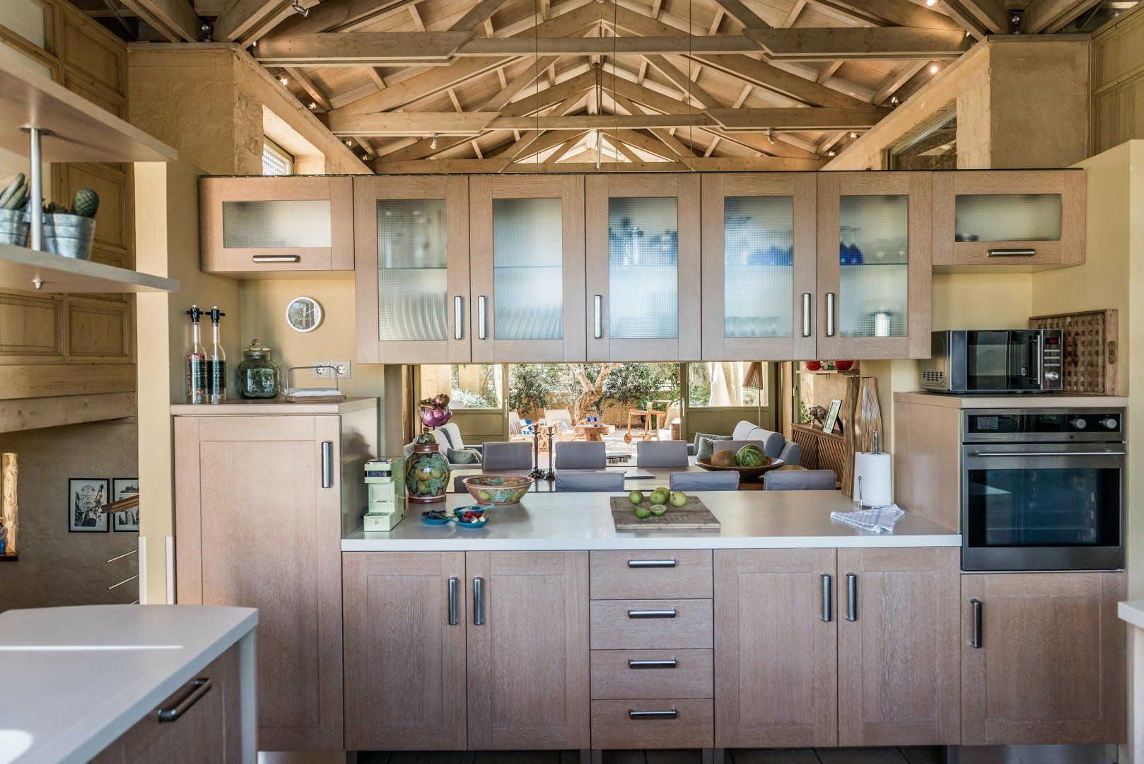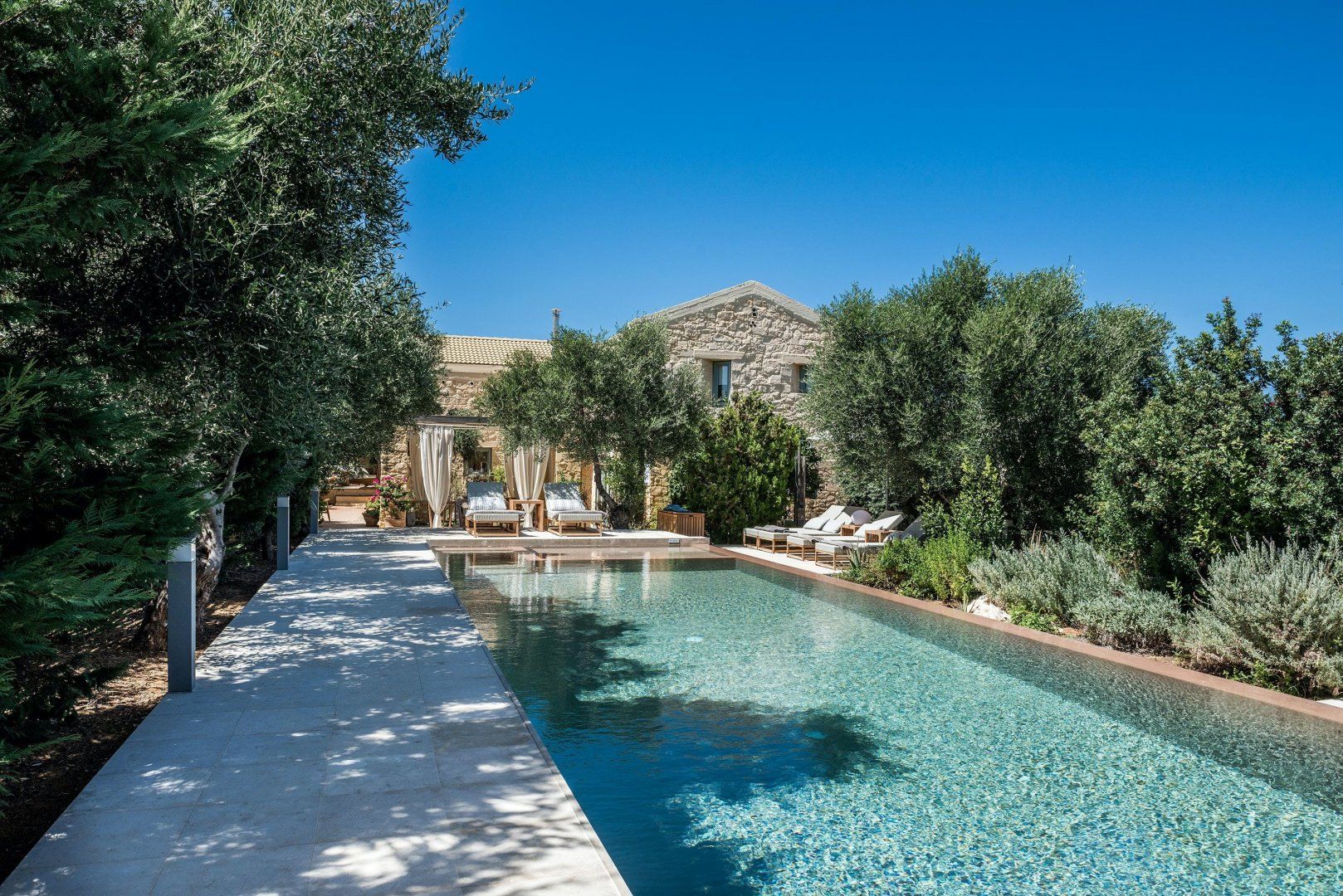 Bright and calming, this villa with stone architecture, vaulted ceilings and a mix of traditional and contemporary elements is ideal for families coming to experience island bliss in Chania. When not soaking up the rays at the sandy beach of Kalathas, just over a meter away, you can bask in the sunshine from the large outdoor area. Complete with a private pool and more than one seating area for everything from alfresco breakfasts to sunset drinks, make the most of sunshine days surrounded by olive groves. The gym is also a nice touch for fitness fanatics.