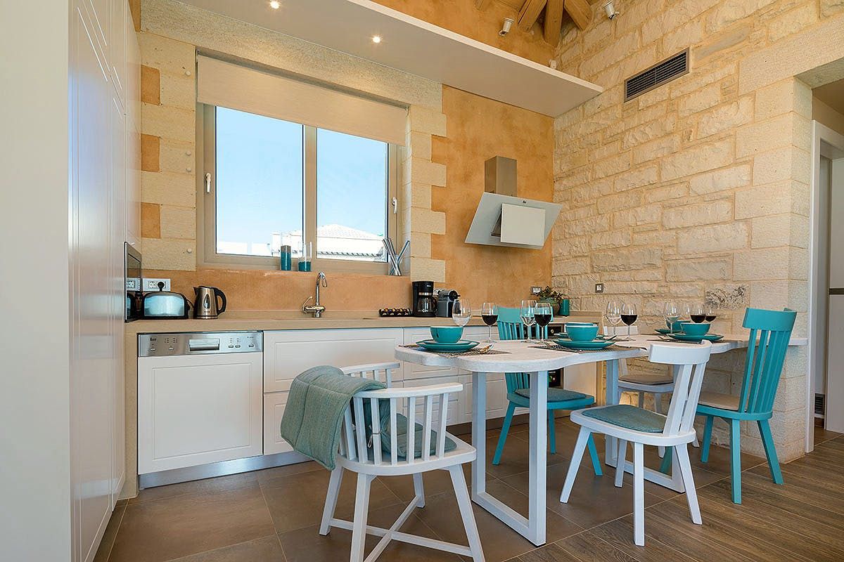 Tranquil and secluded, this villa on Crete’s northern coast is a gem, ideal for family holidays. You’ll enjoy stunning sea views from the pool area, which includes the main swimming pool and a separate one for little ones. There’s also an outdoor dining area here with a barbecue oven, as well as a Jacuzzi. The inside is compact and cosy without feeling cramped – there’s certainly enough space for everyone to kick back and relax. We do recommend hiring a car to explore the island and reach the beaches.