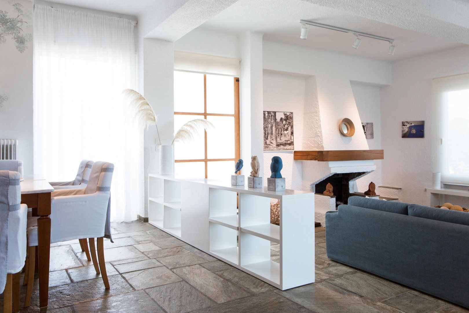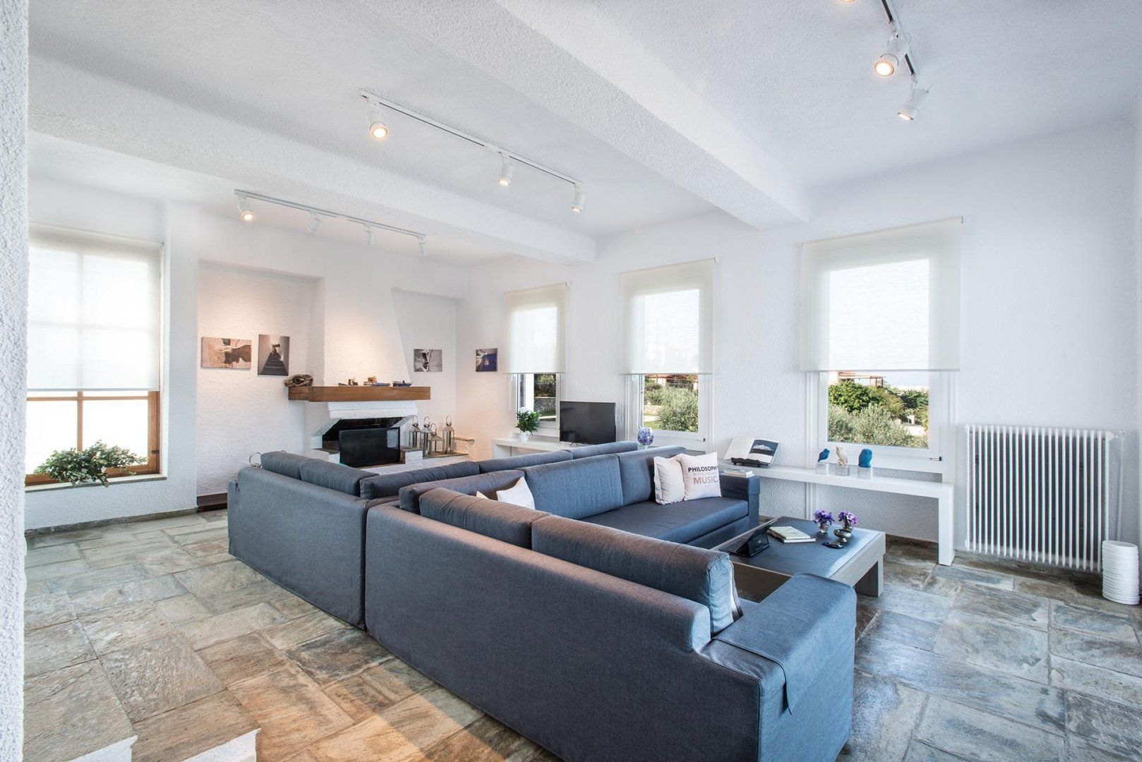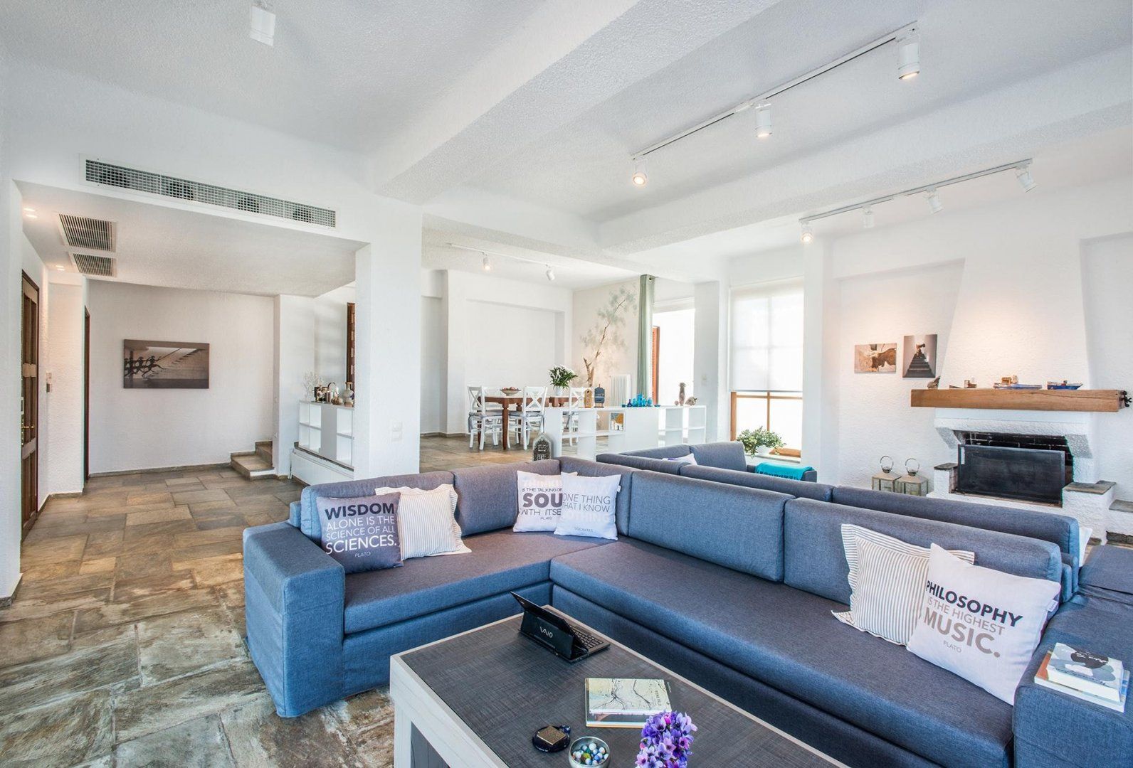 Located on the Akrotiri Peninsula, this wonderful villa offers a slightly different option for large groups travelling together that want the option of privacy. It looks like one property from the outside, but each floor is a separate apartment in itself, each with a lounge, fireplace, kitchen and dining area. The upper storey has a balcony, but the lower level has direct access to the garden.