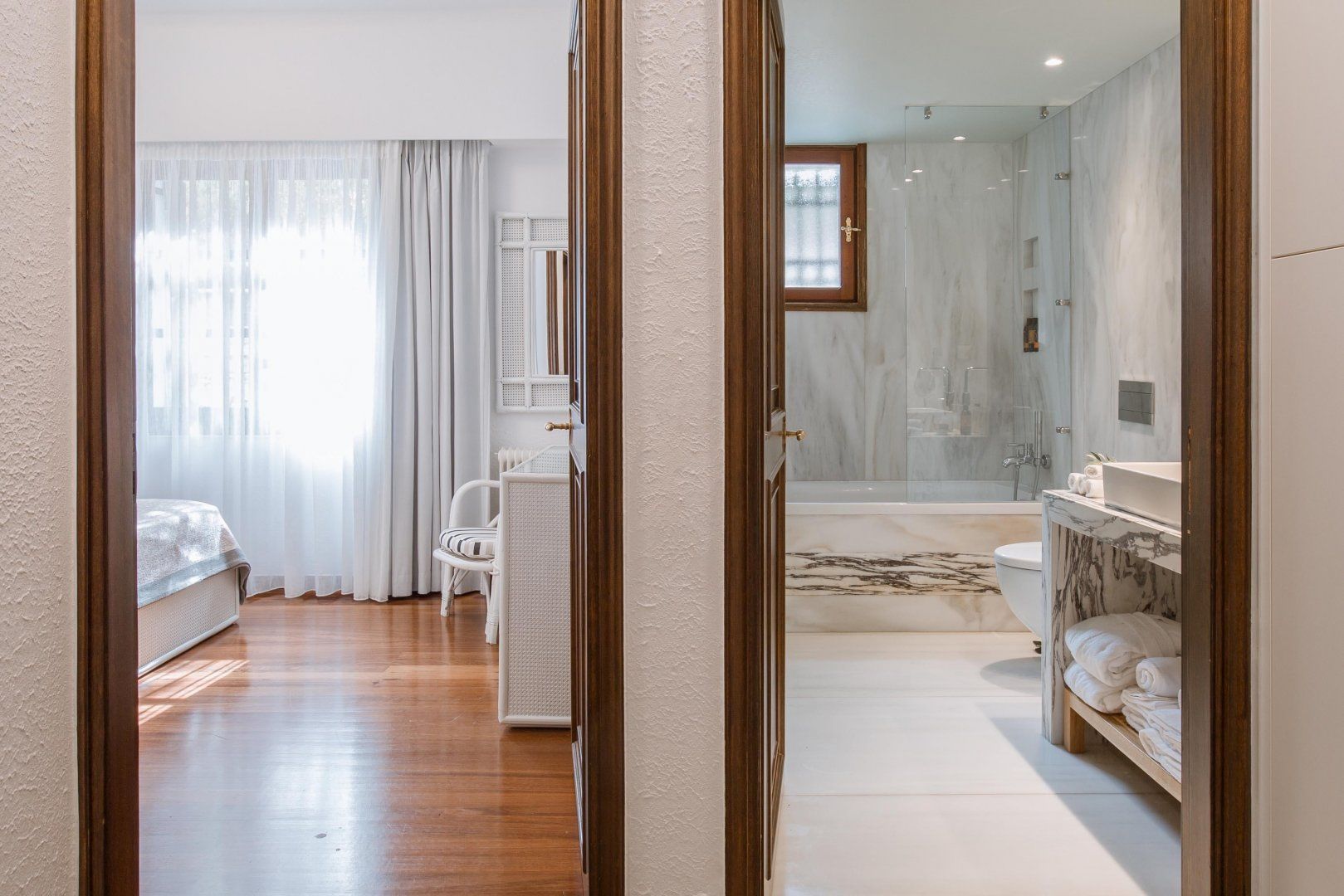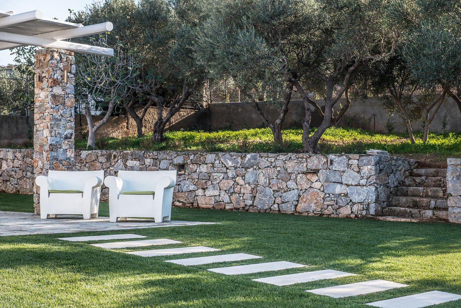We don't like to pick favourites, but we'd probably plump for the ground floor, purely for the reason that it would get us to the home's wonderful exterior that little bit quicker. Out here, you'll find a long saltwater swimming pool, a covered barbecue area and a dining area underneath a pergola where you can enjoy the fruits of your labour. All of this is set in a pleasant plot populated by olive trees, aromatic herbs and Mediterranean flowers.