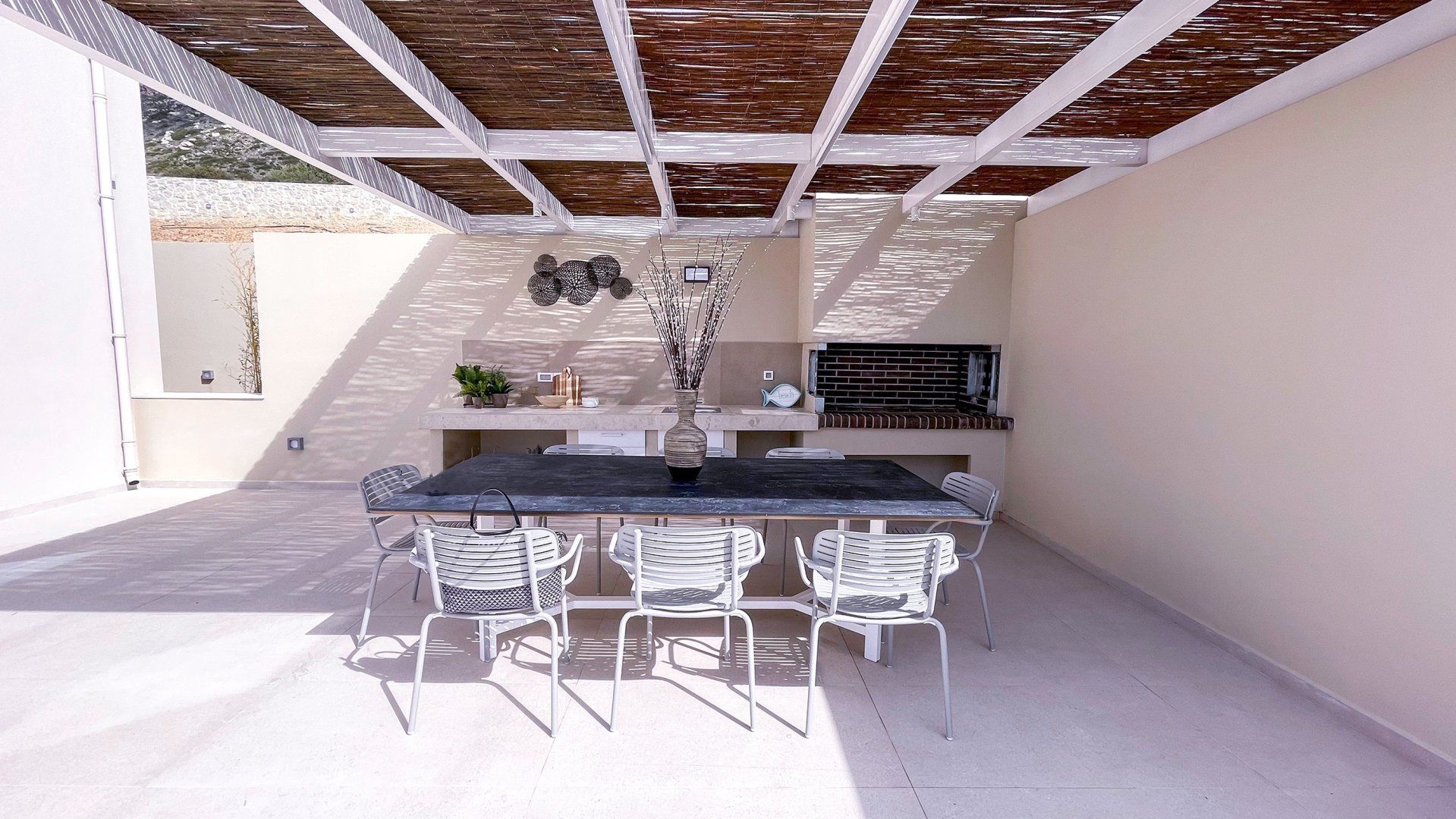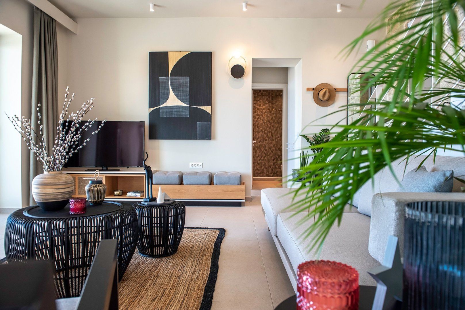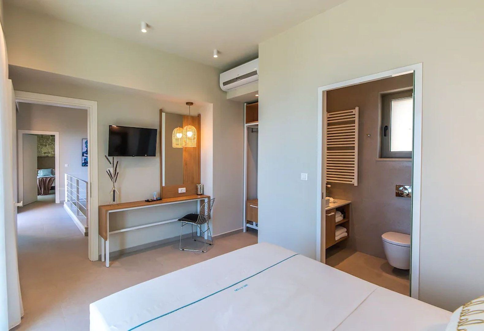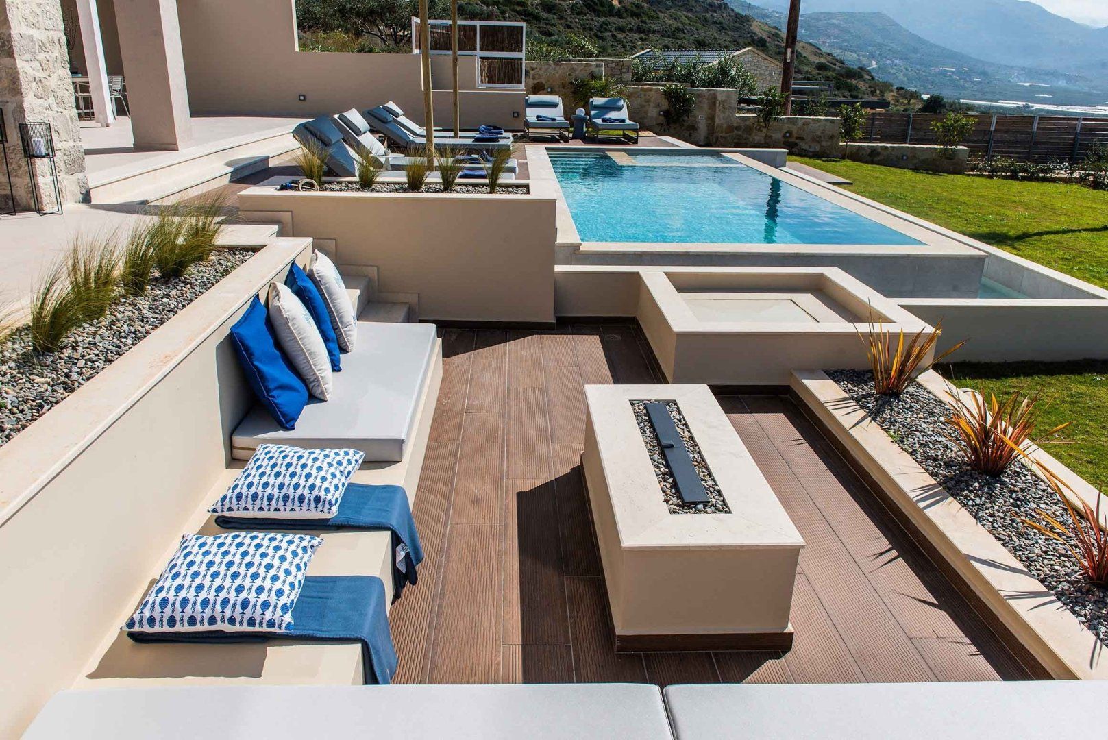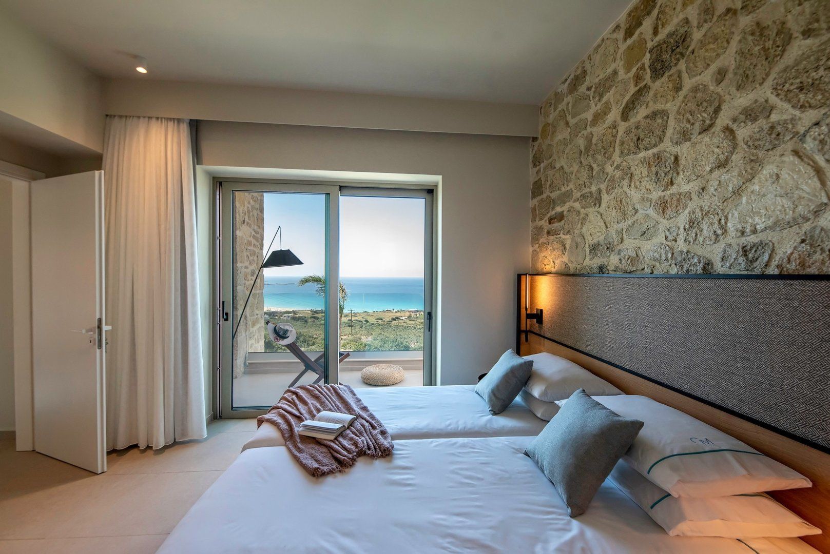 A recent addition to the map, this modern villa sits on a hillside close to the western shoreline of Crete, a prime position that blesses anybody lucky enough to call it home for a while with stunning views of the Ionian Sea and Cretan mountains standing tall in the distance.