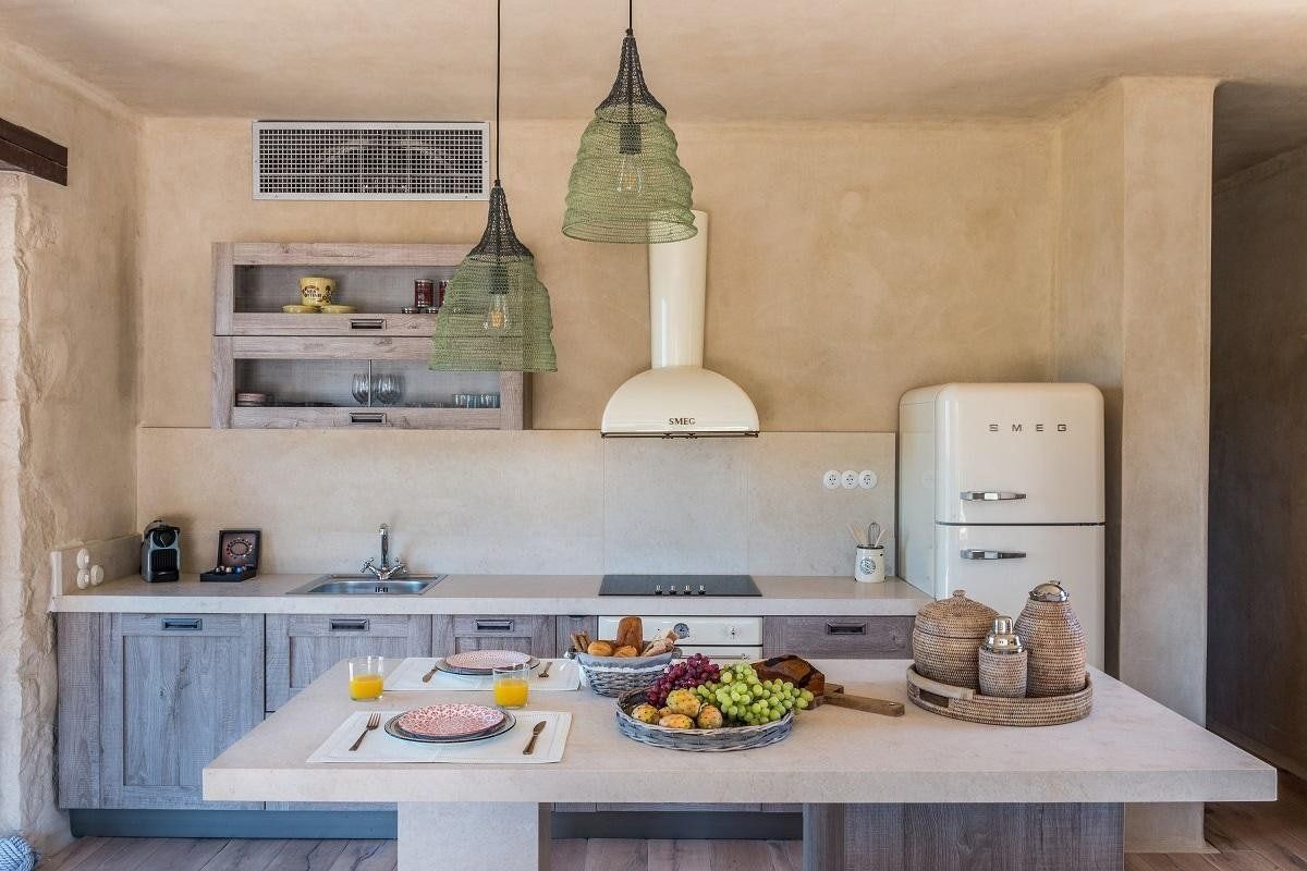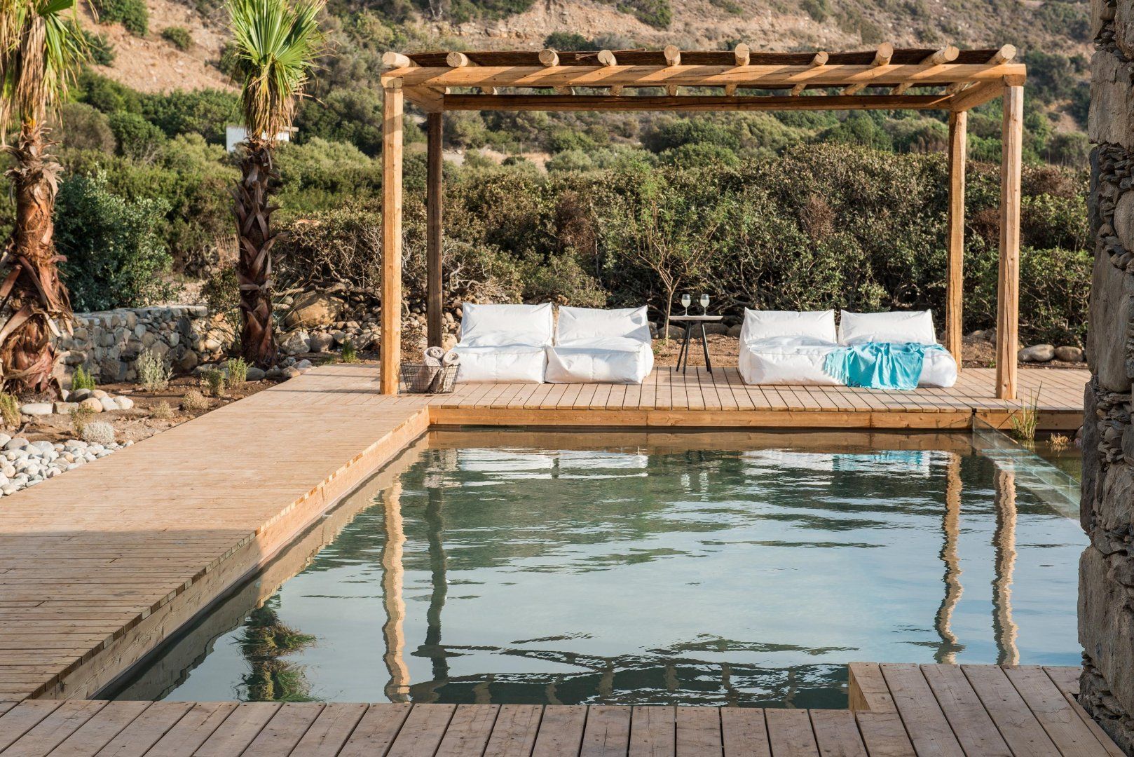 Slide open the floor-to-ceiling glass doors and step out onto the terrace. A natural pool with water lilies and bamboo slots in seamlessly with the surroundings. Spend your mornings swimming gentle laps before reclining on soft loungers in the sunshine. When it’s time for lunch, a summer kitchen makes light work of cooking up fresh Cretan dishes. In the late afternoon, skip down to the seafront and snorkel in the shallows. Retreat home salty-haired and freckle-flecked to your rooftop terrace to uncork a bottle of local wine and watch the sun dip into the inky ocean.
