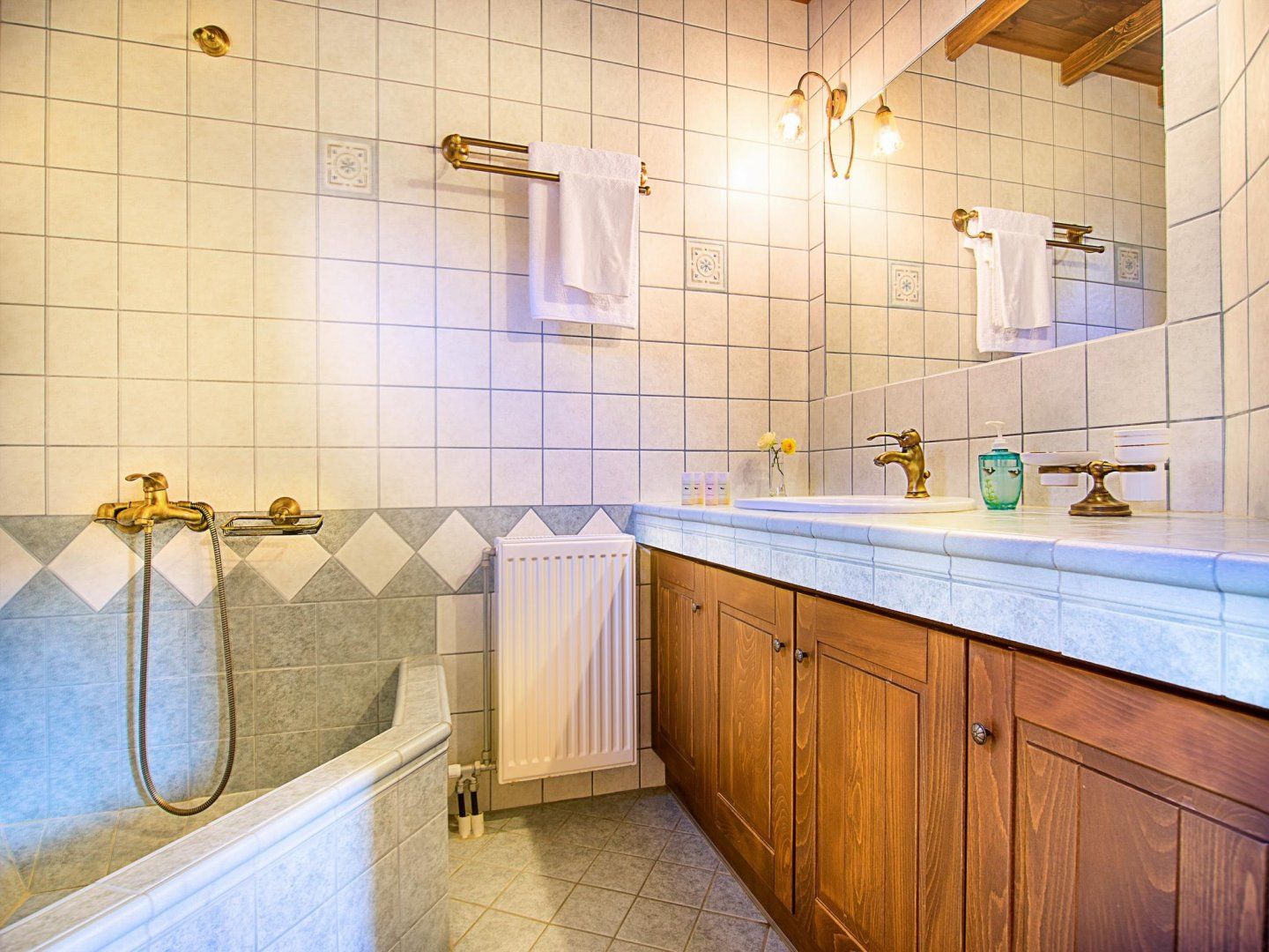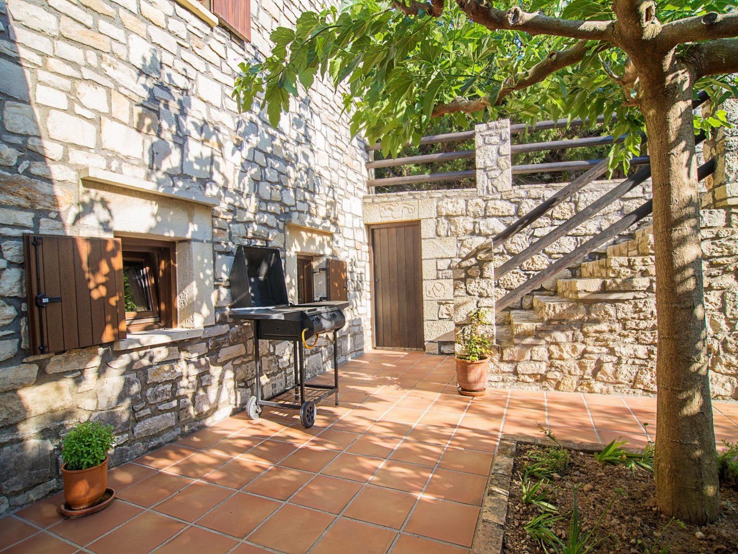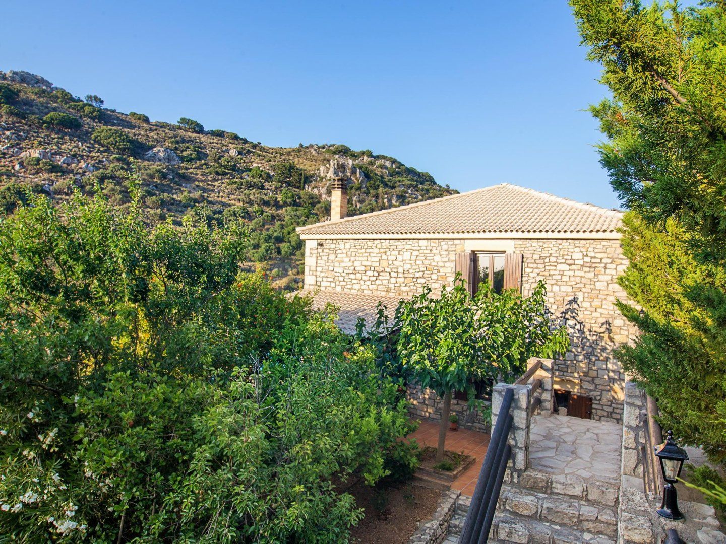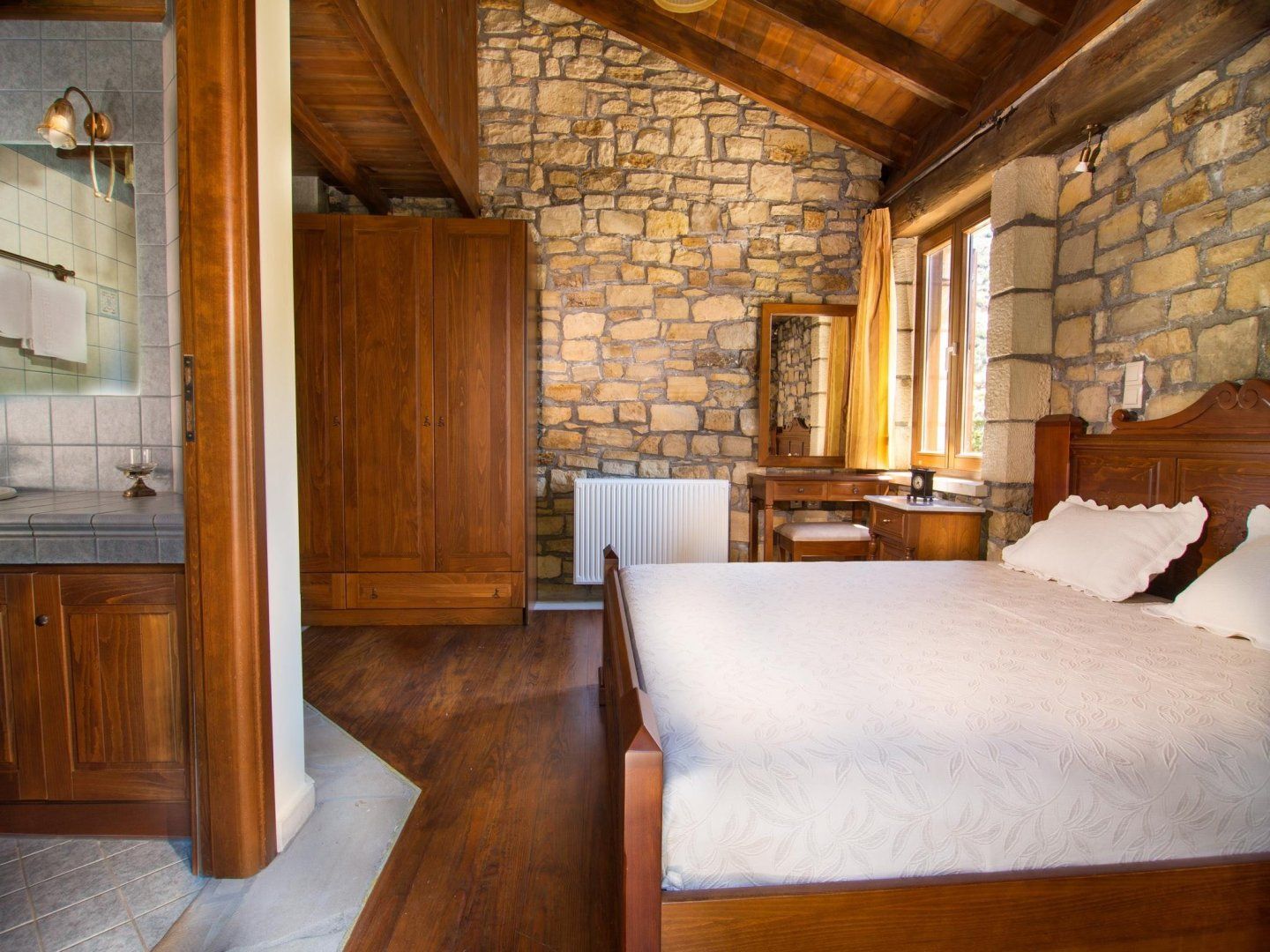 Once you've finished being tended to, you have the option of paddling about in the swimming pool, catching some rays on one of the loungers or enjoying an unrushed lunch under the shade of the verandah. Alternatively, the home's interior is wonderfully cooling thanks to its stone walls, tiled floor and high ceilings, which lend a sense of airiness.