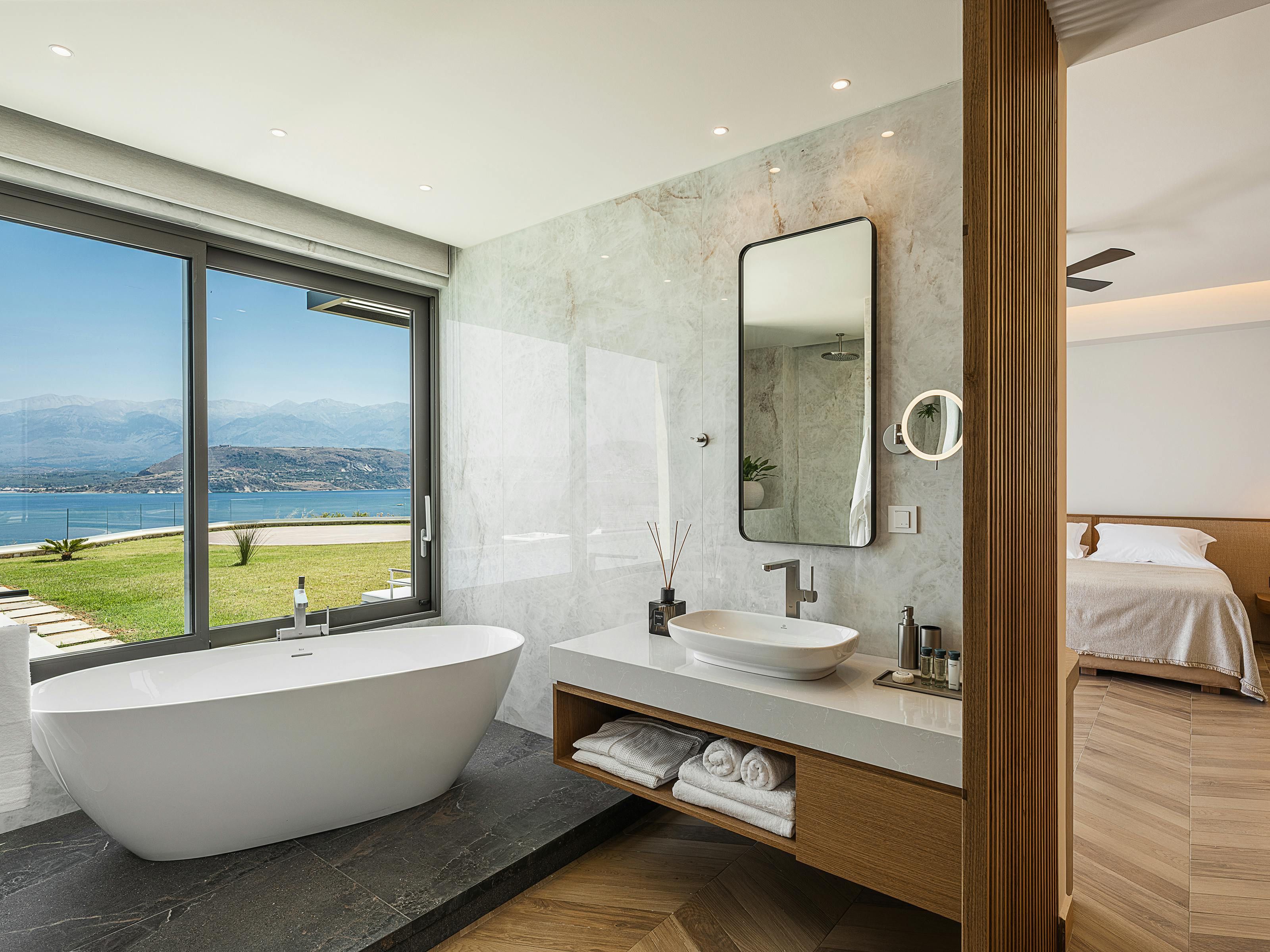 It might seem unbelievable, but every corner of this sprawling, sun-drenched retreat is entirely yours to enjoy. Parents of little ones will appreciate the flexible connecting bedrooms and playground, while friend groups might spend their time in the spa or outdoor hot tub overlooking the Bay of Souda. As the sun sets, prepare for an outdoor cinema experience on the lawn – or enjoy a friendly competition in the bowling alley. There are solo spaces to unwind too, from hidden terraces to private balconies in the bedrooms. An indulgent escape doesn't get better than this – and with Chania just a short drive away, you can bookend your stay with some local culture.