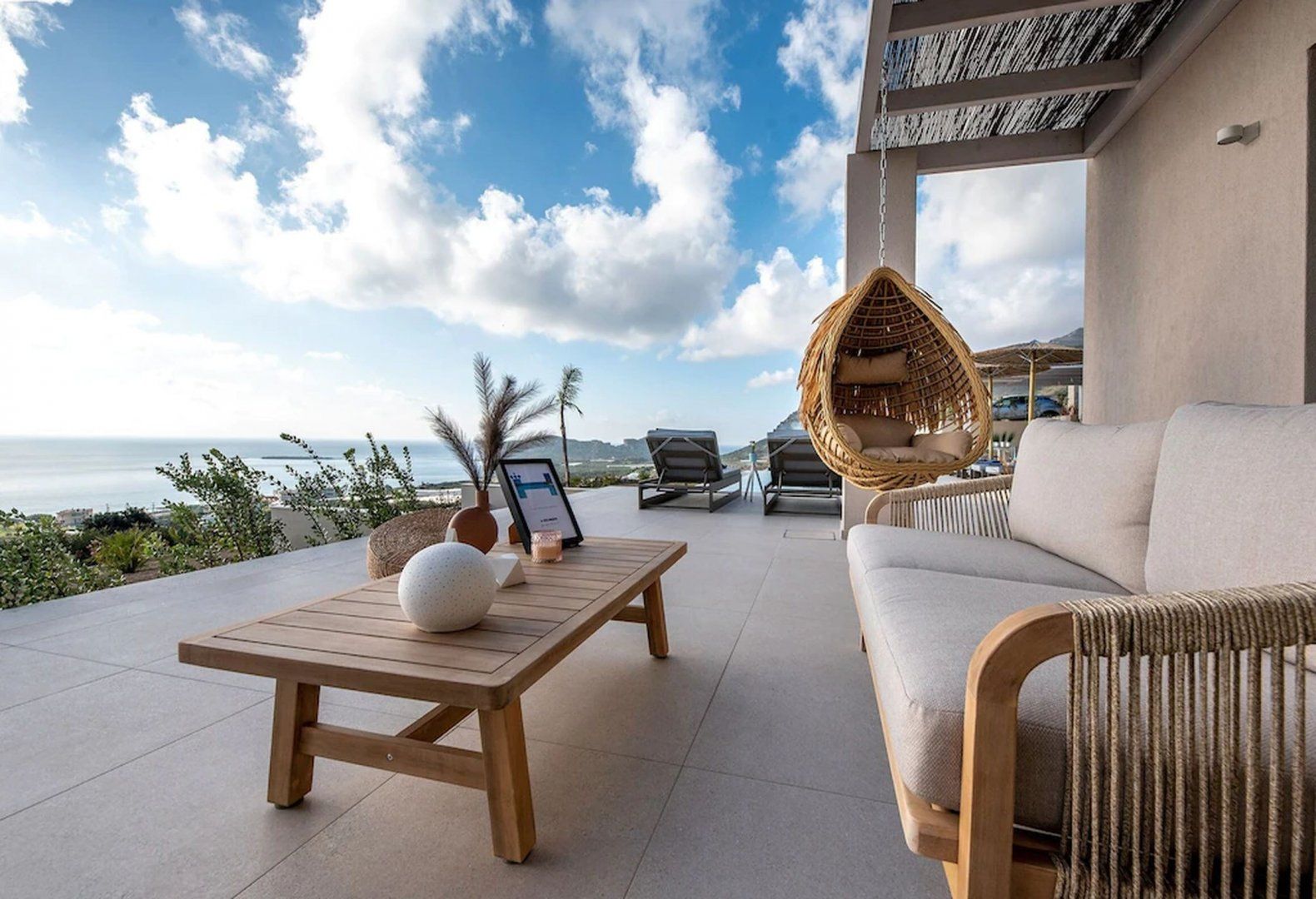 While the interior has been thoughtfully designed, it’s the outdoor space that takes the cake. The view will take your breath away every time. Whether you’re swinging in the hanging egg chair, chatting around the outdoor sofa, or relaxing on a sun lounger, the wide-stretching panorama will continue to impress. Of course, the best place to take it all in is from the edge of your heated pool.