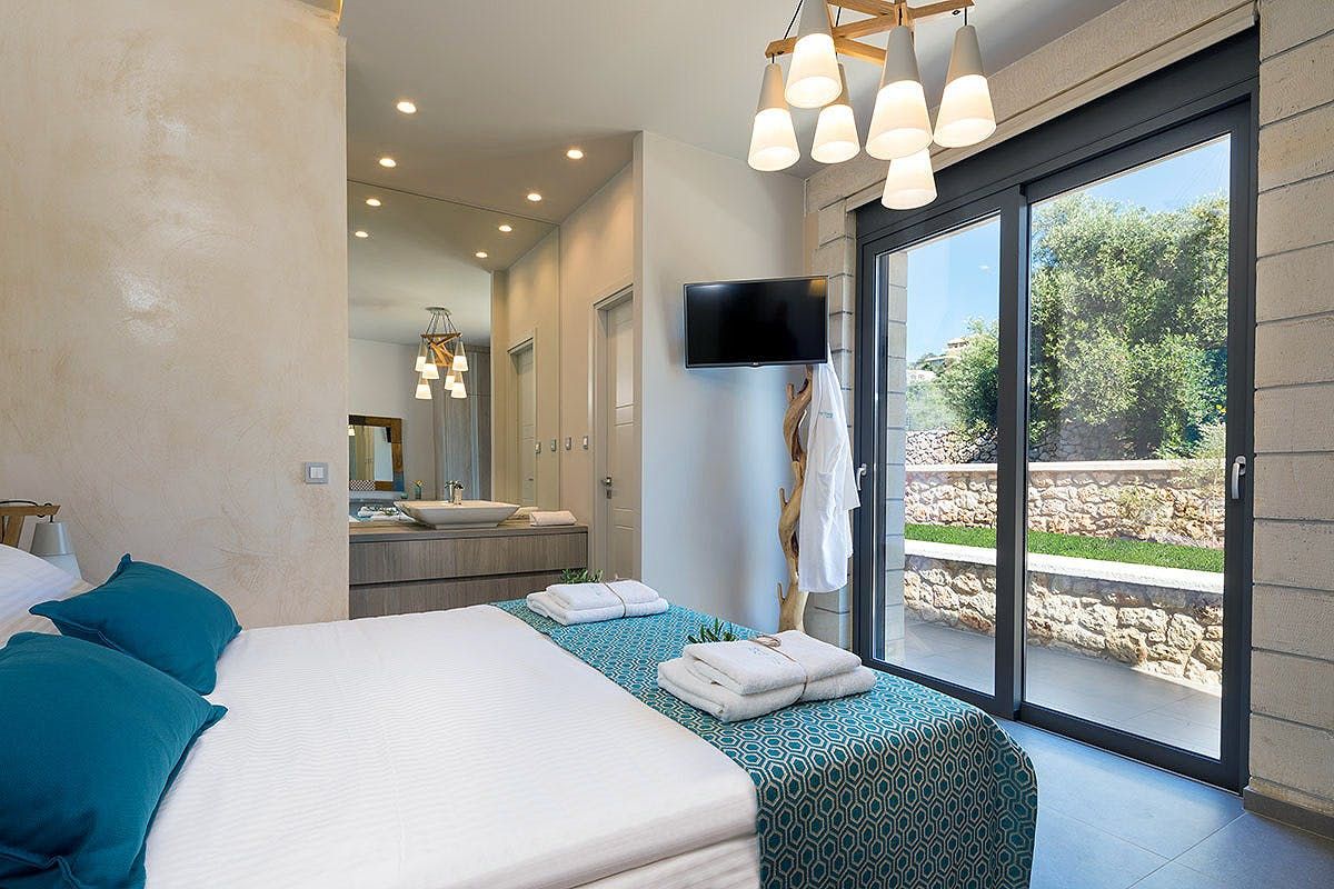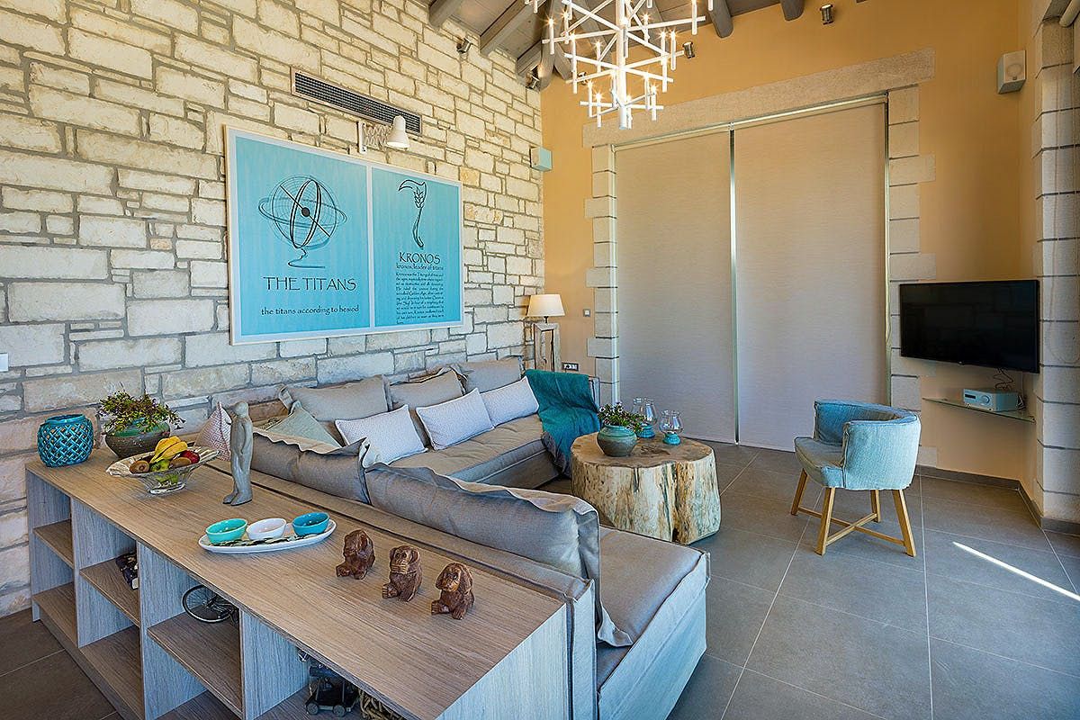 Situated just outside the village of Kokkino Chorio, this villa offers gorgeous sea vistas, as well as a tranquil setting, ideal for family stays. The outdoors boasts a private swimming pool, an alfresco dining area, and a barbecue – all you have to do is kick back and enjoy the view. Surrounded by a large private plot, you’ll be undisturbed here. The host also offers a free tablet, in addition to satellite TV, meaning the whole family can stay entertained. We recommend hiring a car to reach the nearby beach and explore the island beyond.