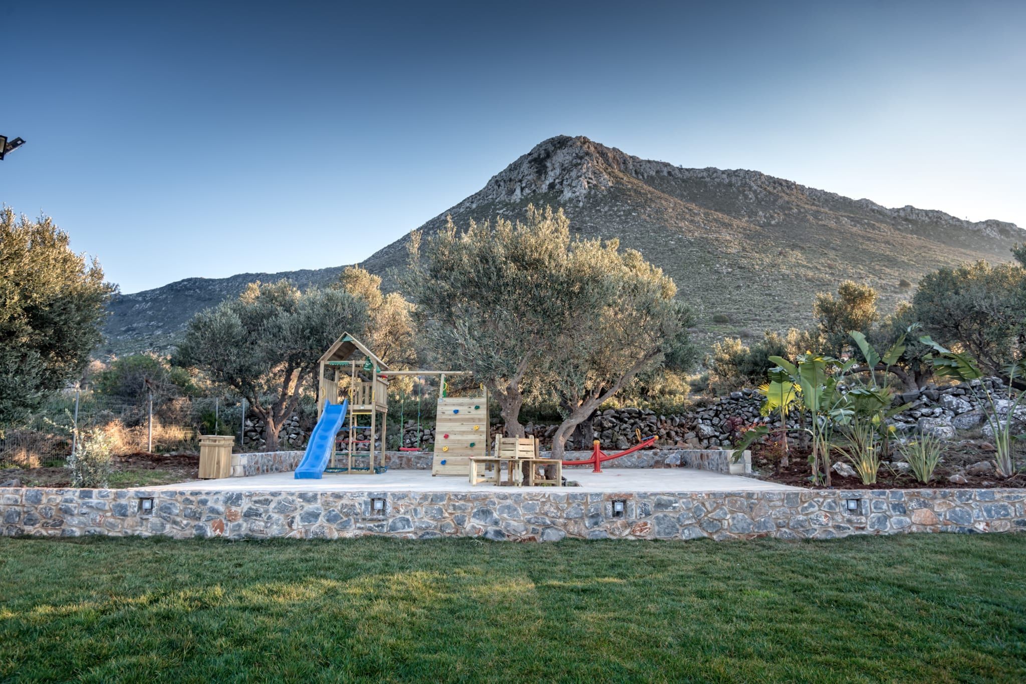 The villa is built from stone and decorated in a traditional style. Best of all, it’s in a huge plot of land with no neighbours – it’s an absolute haven of peace, quiet and relaxation. When you wake up in the morning your toughest decision will be which balcony to drink your coffee on, or possibly whether to sunbathe on a sun lounger or in a hammock. Will the children tire themselves out in the wheelchair-accessible heated pool, the playground, or playing football on the mini footy field?