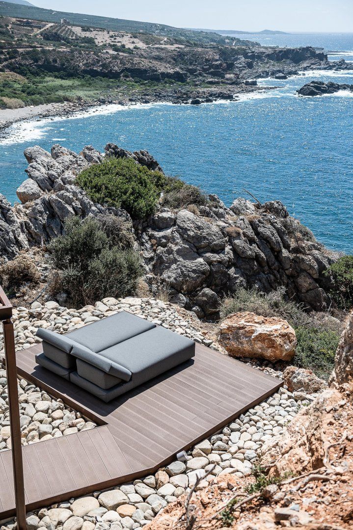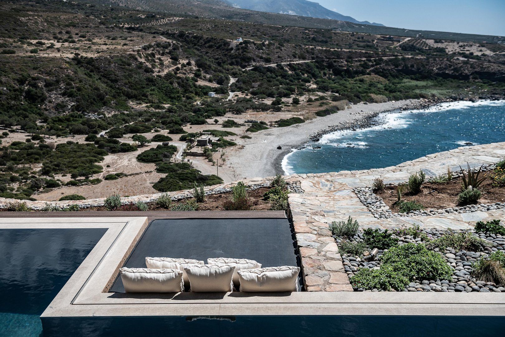 On Crete’s West Coast, this deluxe villa sits just along from the turquoise shallows and stone-grey pebbles of Keramoti Beach. This one’s for those seeking seclusion in nature and nothing more than sun, sea and sky as far as the eye can see.