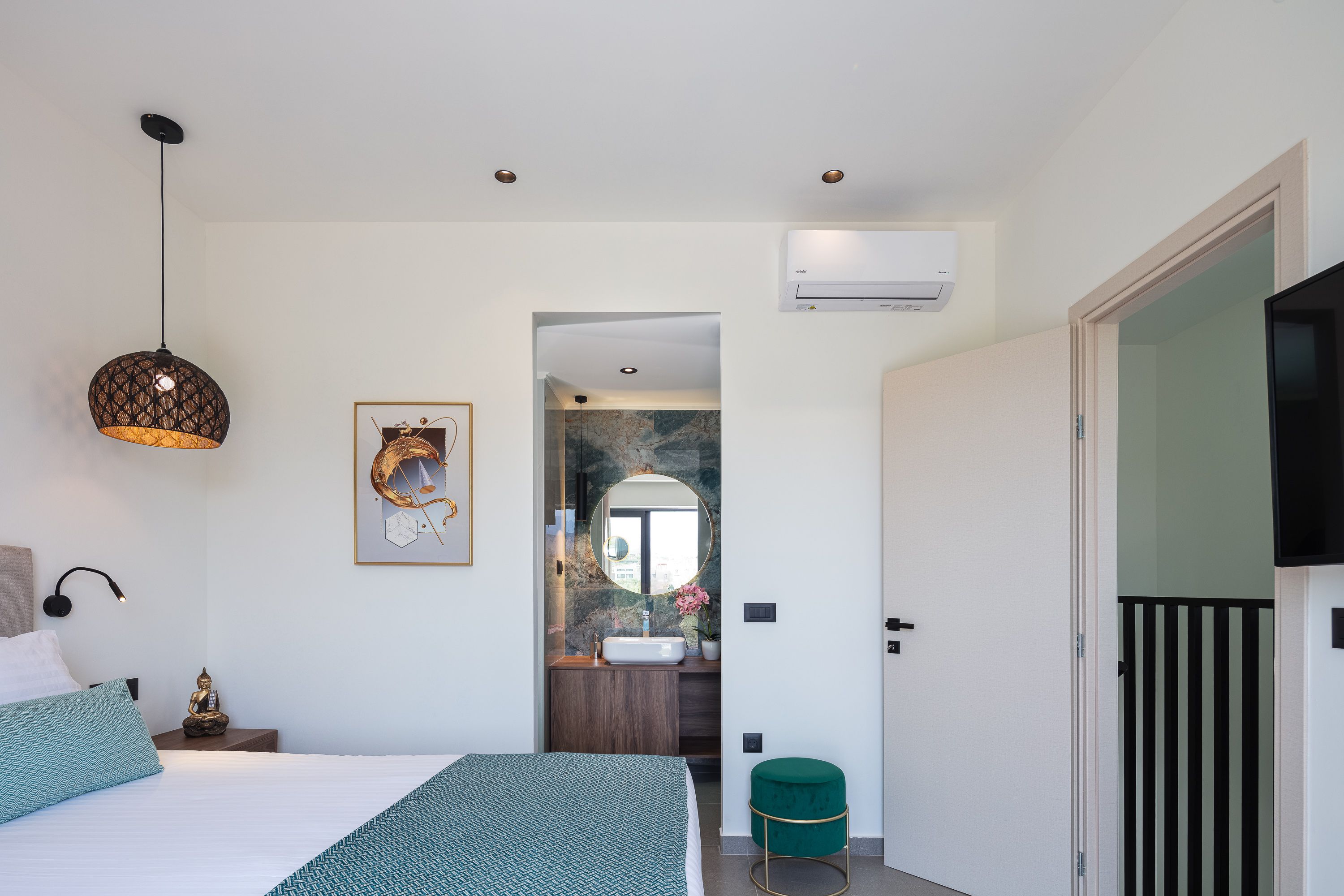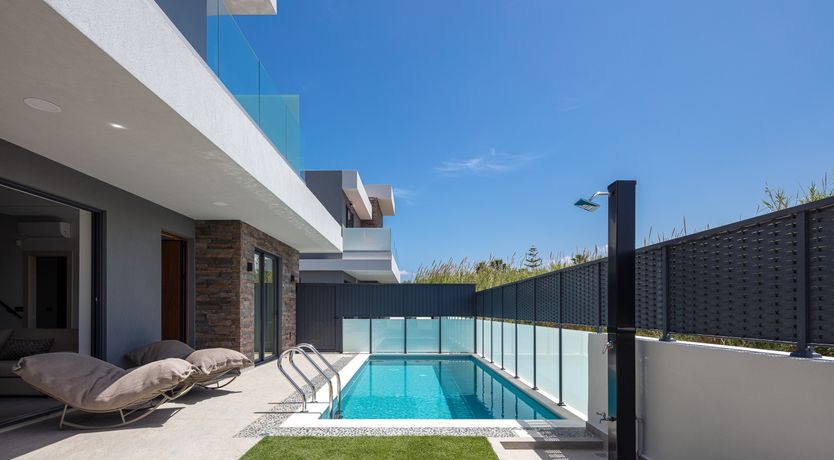 With its private pool, shaded barbecue area, and balcony with views over the countryside, this villa has everything you need for a relaxing holiday in Crete. Inside, the bright living space with its minimalist design and neutral tones creates a relaxing space to unwind in. Location-wise, the sands of Agioi Apostoloi beach are under 500 metres away, and shops and tavernas are a short walk. Plus, Chania, with its 14th-century Venetian harbour and lighthouse, is 5 kilometres from this home.