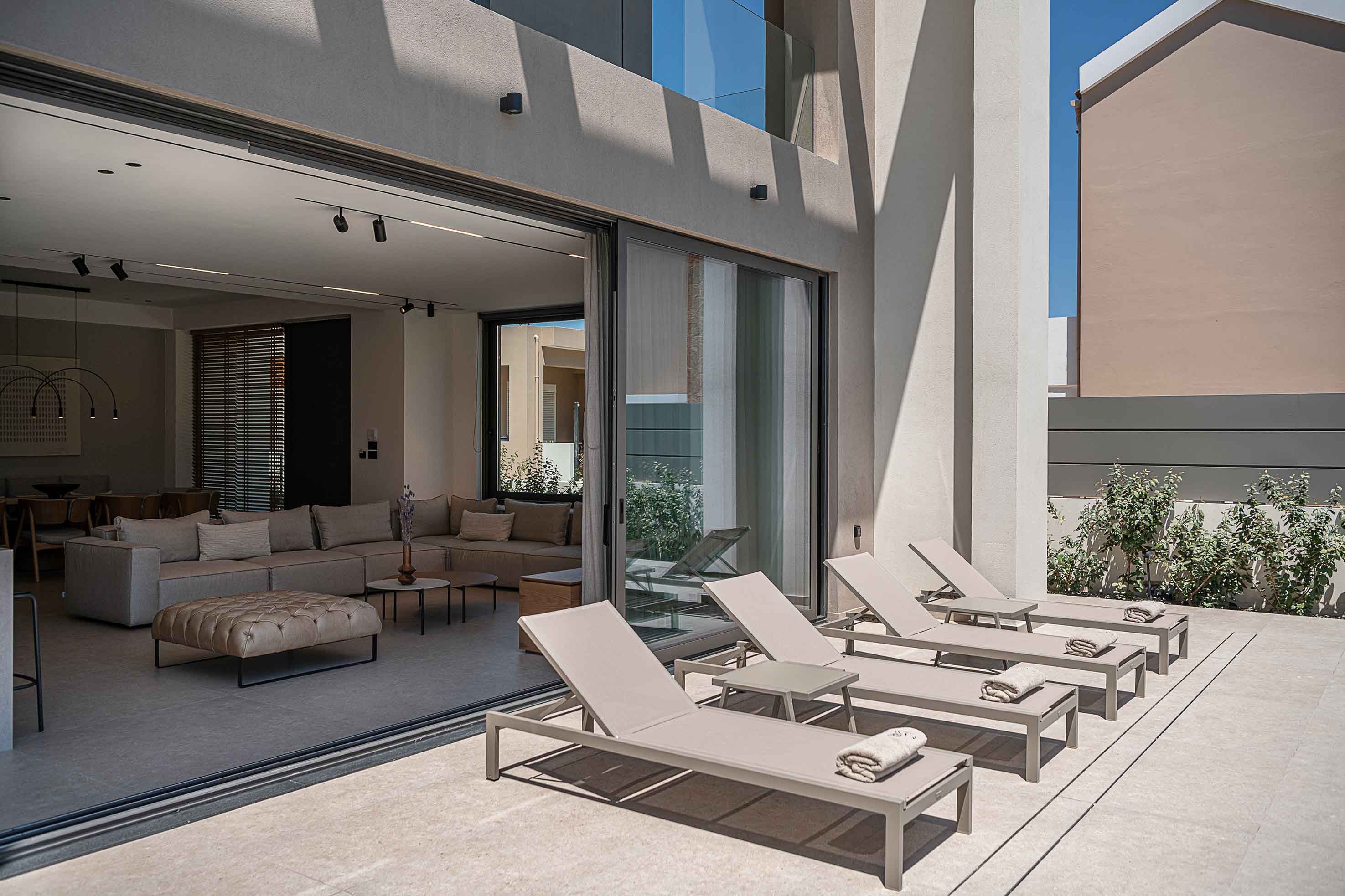 This villa may be just a few minutes from the beach in beautiful Agii Apostoli, but we wouldn't blame you if you spent your holiday at home. Floor-to-ceiling sliding glass doors seamlessly link the contemporary interiors to the terrace, offering endless options for sunny days – will you lounge under the shade of the veranda, or take charge of preparing Greek feasts at the outdoor kitchen? Little ones can join in the fun, too – there's a dedicated shallow area in the pool. Did we mention the downstairs games room and gym? The location is the cherry on top of your stay – it's just a fifteen-minute drive to the centre of historic Chania.