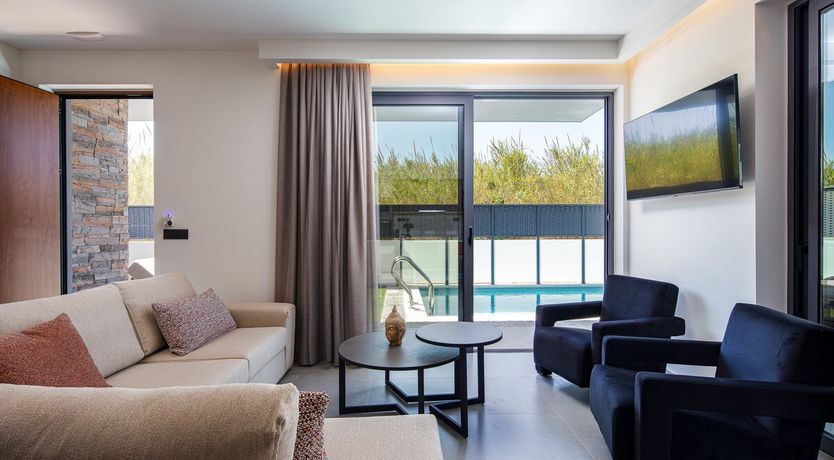 Less than a fifteen-minute walk from the sparkling waters of Golden Beach, this modern villa has everything you need for a beachside escape. Set across two floors with space for six, each bedroom has its own en-suite and private balcony, giving everyone a little extra privacy. The outdoor area may feel a little compact for some, but there’s still space to bask in the Cretan sun and cool off in the pool – and with so much at your doorstep, you may not mind. When you’re ready to head out, the painted streets of Chania are just 5km away, with cafés, restaurants, and plenty of opportunity for a little Greek dancing.