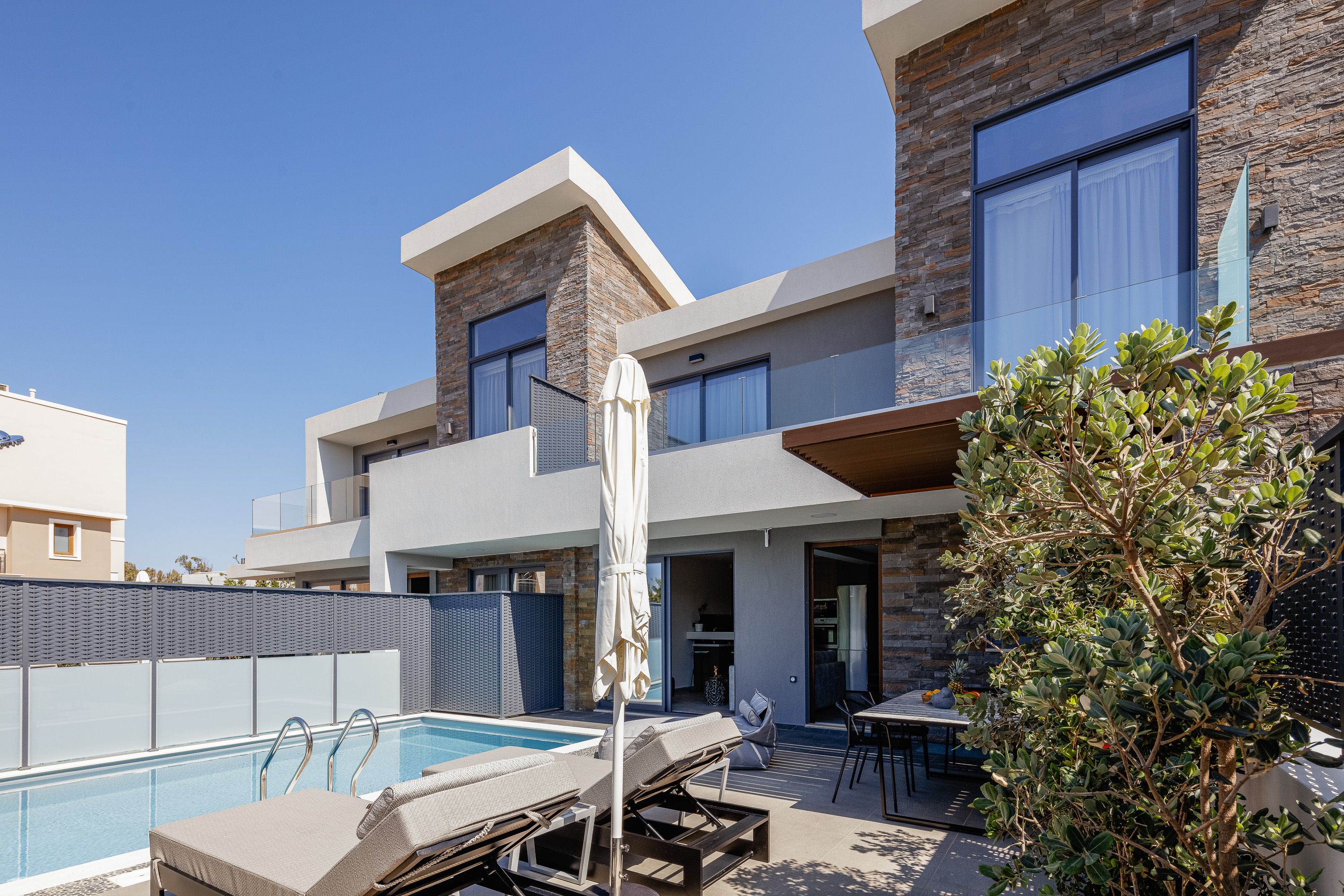 High above Souda Bay on Crete’s Akrotiri peninsula, this villa pairs contemporary design with panoramic views that steal the show. With ensuite bedrooms and generous living areas, it’s a great base for families or groups who want space to both relax and come together. The outdoor terrace is where we imagine you’ll spend most of your time – a private pool, sunbeds, shaded pergola and barbecue make it easy to drift between cooling dips and lunches under the sky. When you can pull yourself away from all of that, Chania’s cafés, beaches and historic centre are all within easy reach.