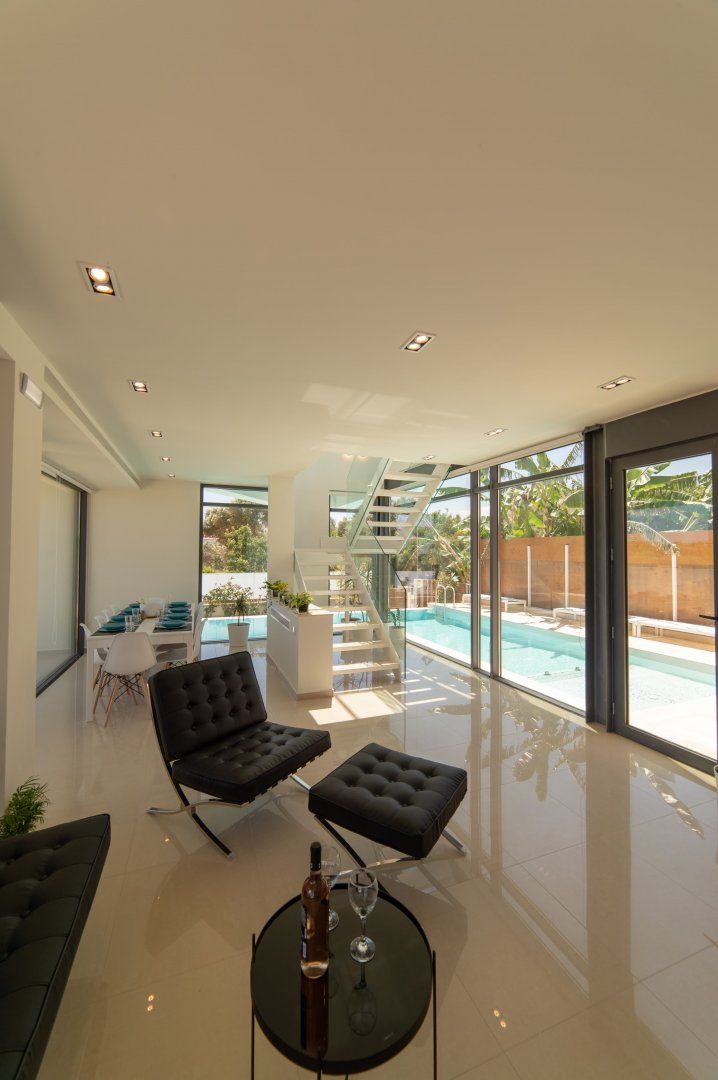 The villa is modern and stylish, with floor-to-ceiling glass walls. Light floods into the home, and the indoor and outdoor living spaces are merged seamlessly. Swim in the pool, lie out in the sun, or dine on the terrace – there’s a barbecue so alfresco dining is on the cards. You’ll love sitting out on the terrace after the sun has set, sipping wine and admiring the stars.