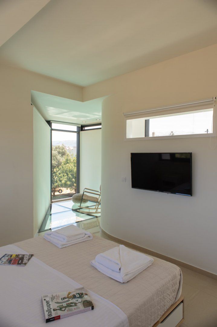 This gorgeous glass house can be found just a short stroll from the beaches of Agii Apostoli. When you’re not at the villa, you can swim in the calm coves and dine at beach bars while soaking up the sunshine. The old port of Chania is a ten-minute drive, so you’re not short of options when it comes to dining out and shopping for souvenirs.