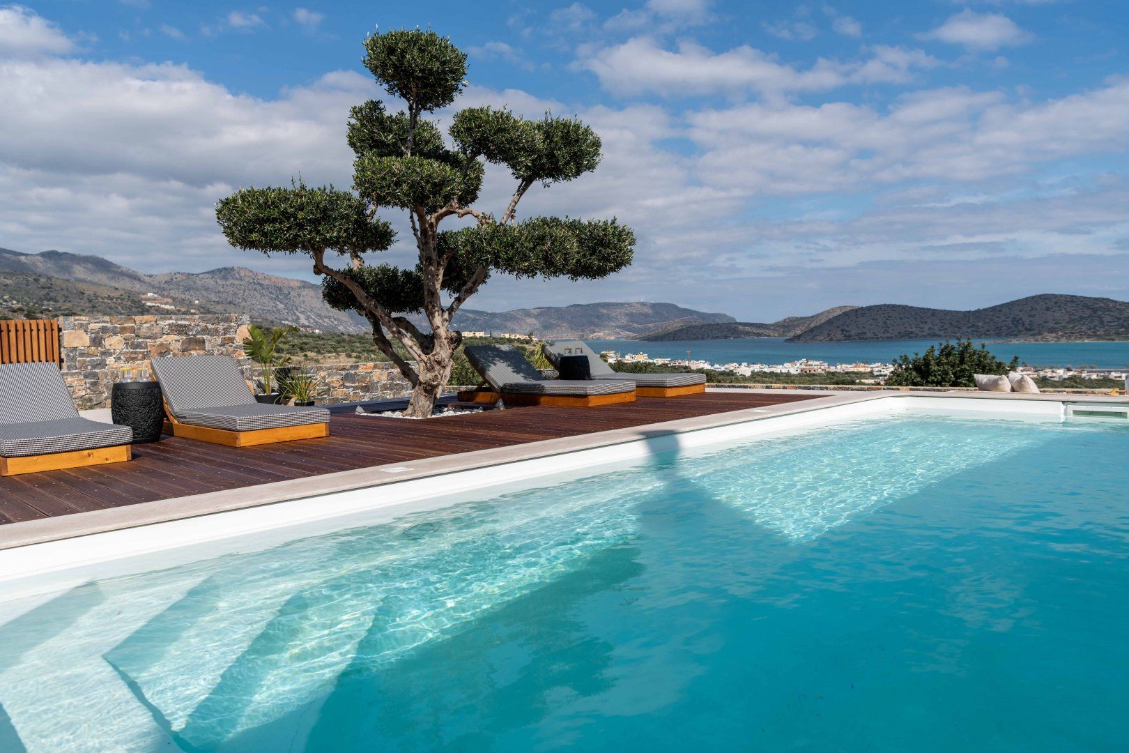 The sweeping coastal views from this newly-built villa may be heaven-sent, but it’s the lengthy pool and stylish sun terraces which are getting us hot under the collar. An excellent choice for two couples sharing, each bedroom has direct access to the wraparound panoramic balcony and an en-suite shower room to kickstart your day. Location-wise, the centre of Elounda and its wide sandy beach and seafront restaurants are just a two-kilometre stroll downhill – and you can always hop in a taxi on your way back home later.