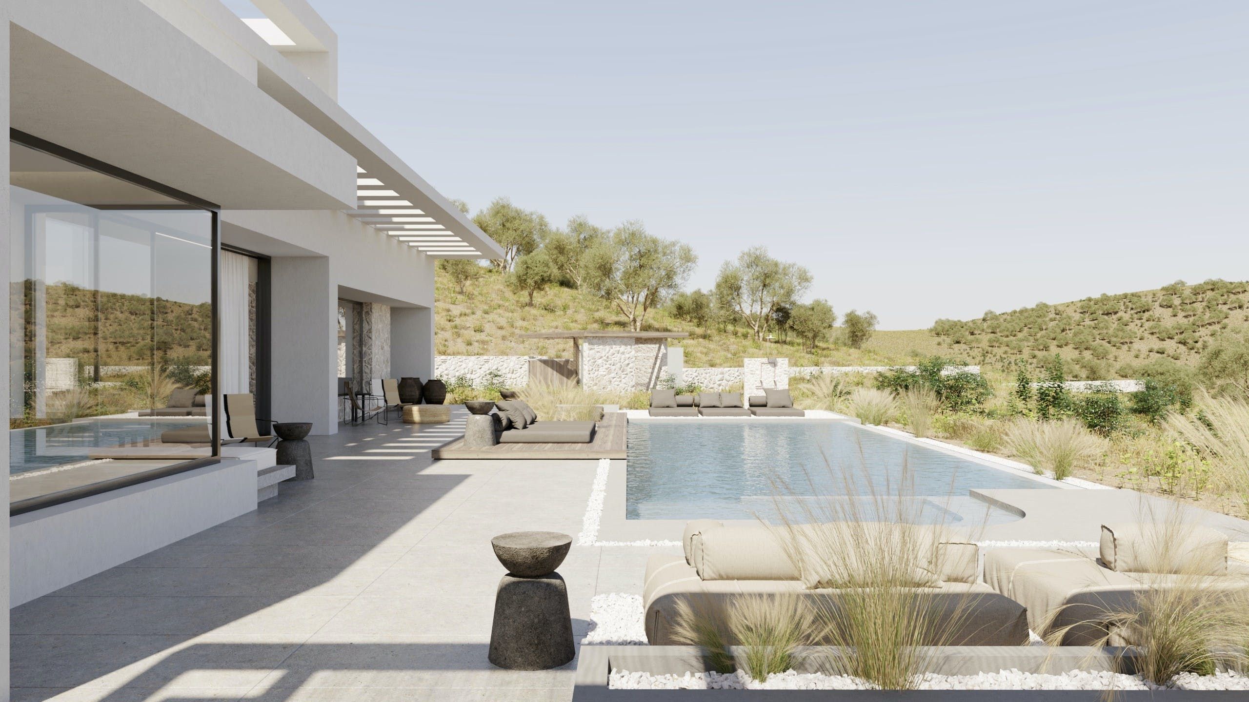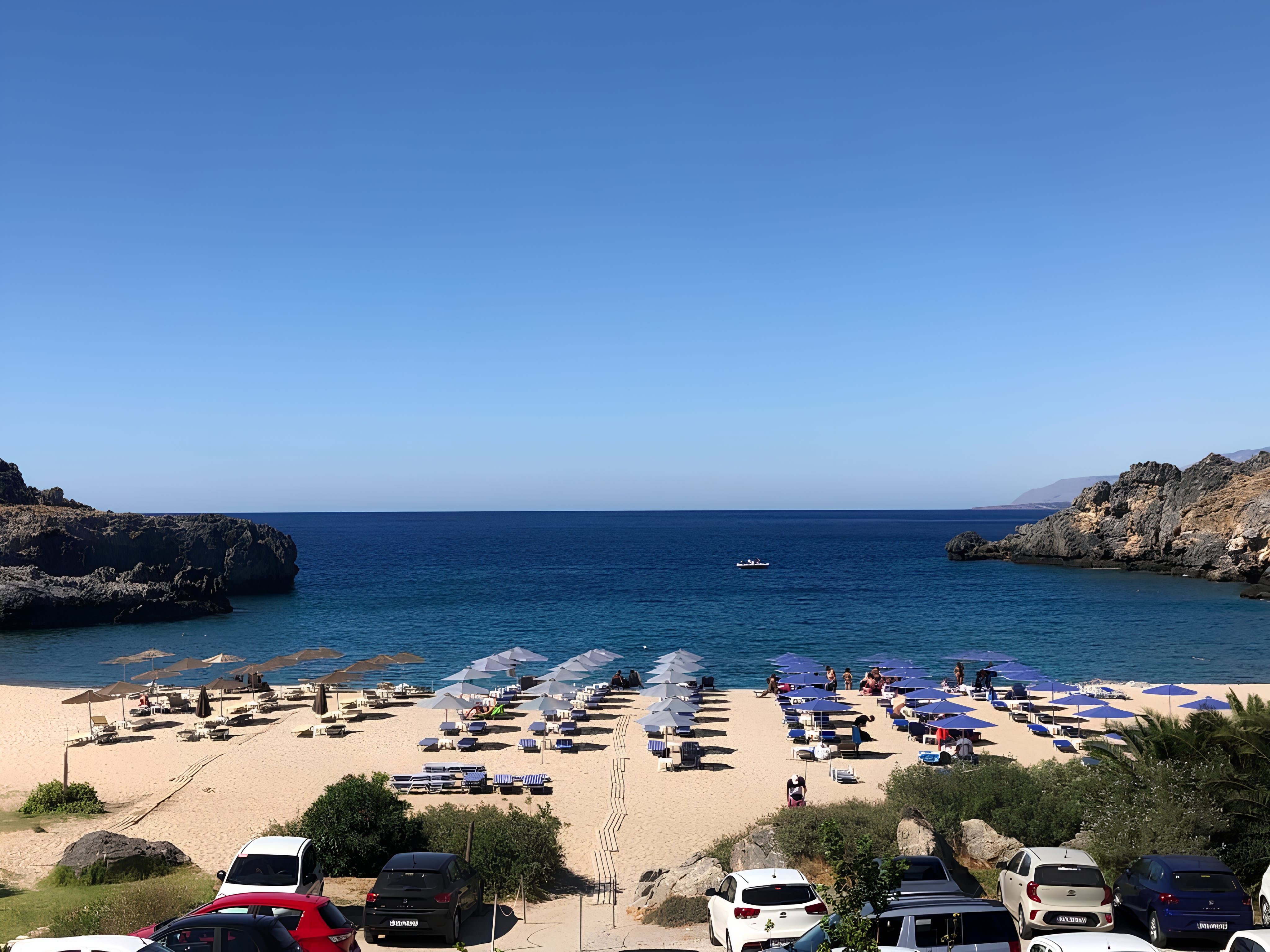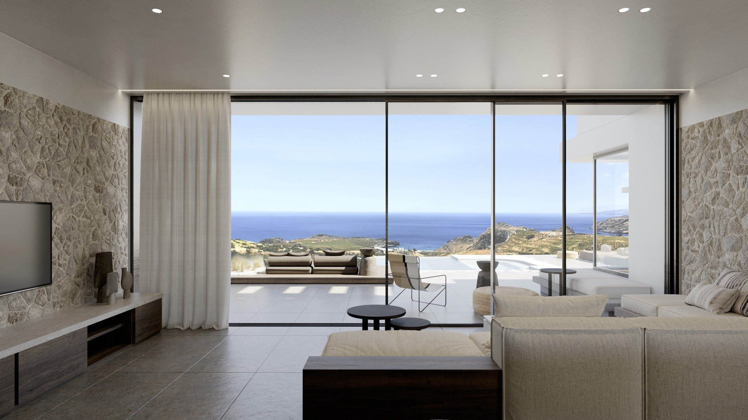 This beautiful whitewashed villa, with neutral tones and natural elements, is not only pleasing to the eye, but offers the perfect environment to relax in. The home features several outdoor seating areas, perfect for alfresco meals, and an infinity pool with stunning views of the Libyan Sea. It also boasts modern amenities such as a fully equipped kitchen and Smart TV and with all bedrooms being en-suites, it's an ideal place to share with friends or family. Make sure to check out some local beaches, such as Schinaria, Ammoudi or Damnoni, which are all worth a visit.