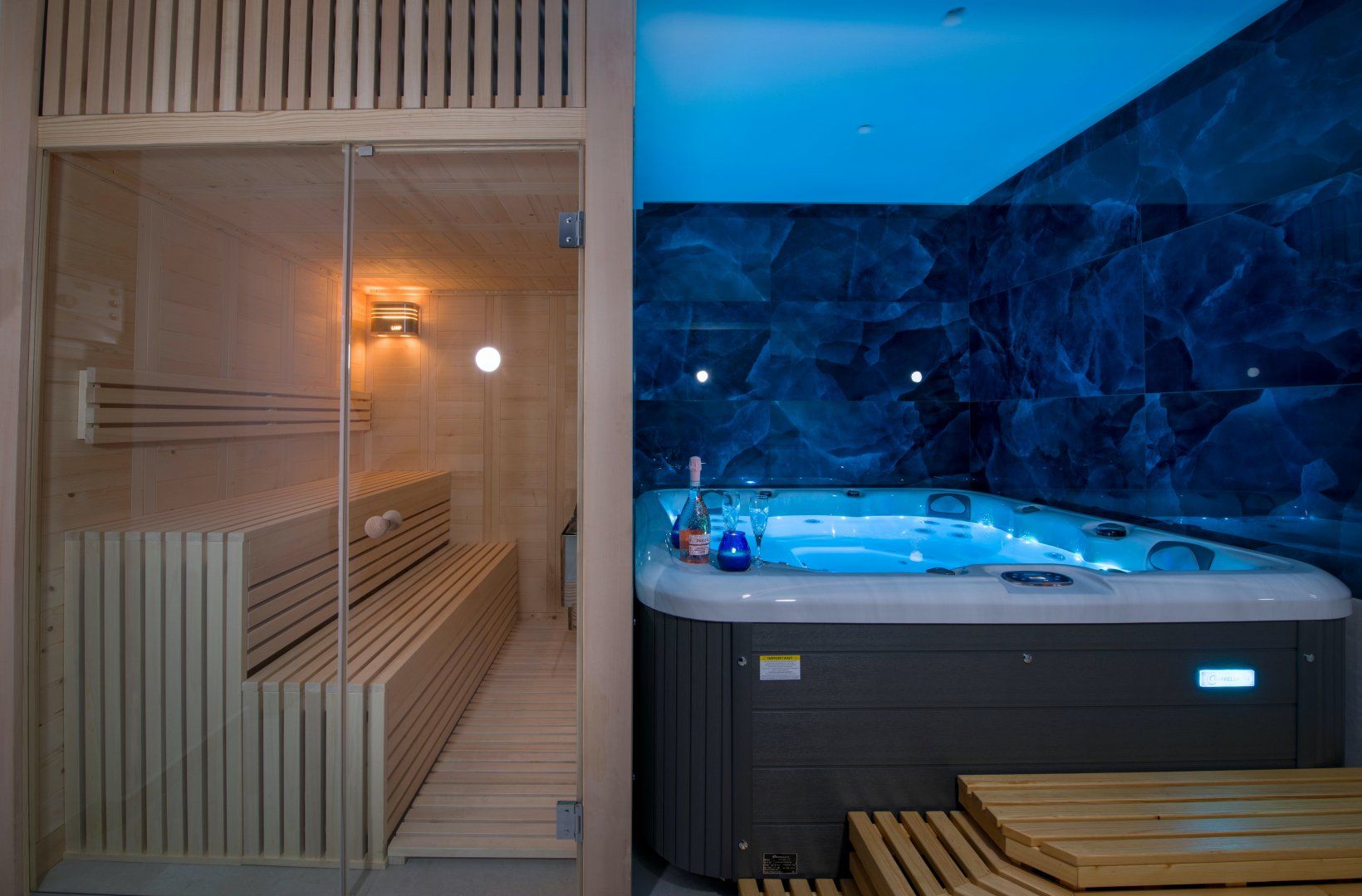 Inside, the home is contemporary and dressed in earthy tones. The corner sofa promises the perfect spot to settle down with your holiday read or a movie in the evenings as you unwind for the day. If fitness is your thing, there’s a private gym for you to squeeze in a workout. For those who prefer a more laid-back way of life, the spa room is likely more up your street, with a sauna and Jacuzzi just waiting to be enjoyed.