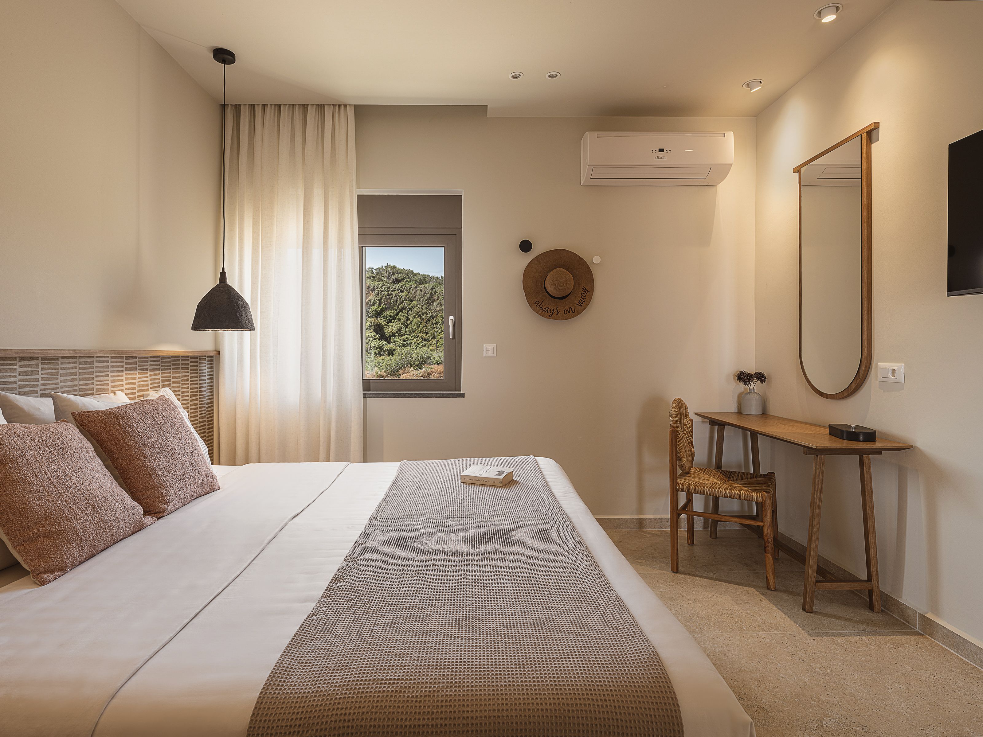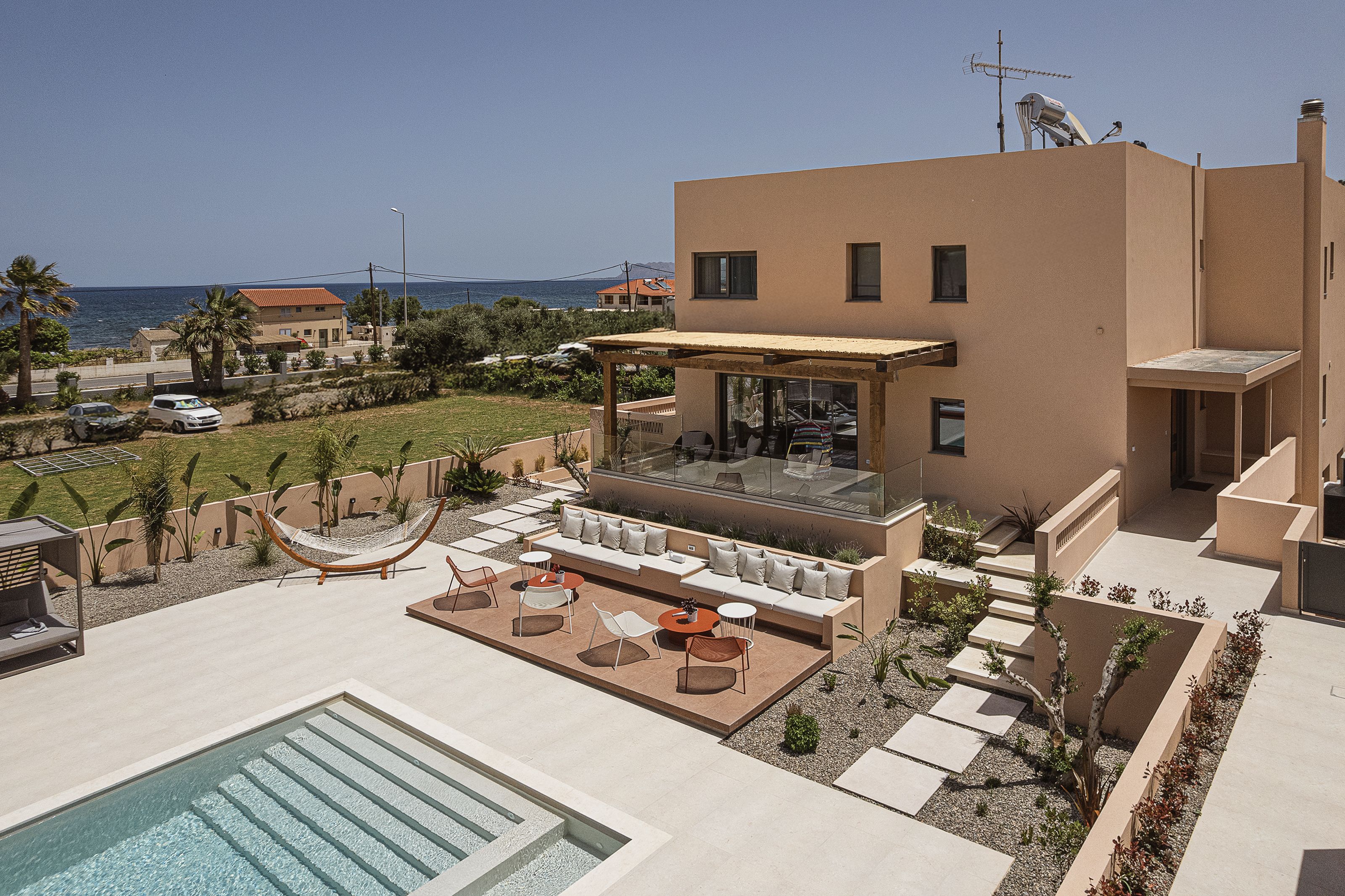 Steps from the Cretan coast and close enough to Chania for the action, yet far enough to feel secluded, this villa’s exterior is as impressive as the interior – modern with a classic Grecian touch. Six bedrooms span two floors, and the open-flow living space makes entertaining easy for larger groups. Outside, the saltwater pool and lounge areas make it hard to leave, with outdoor workout equipment to keep your routine on track. When you’re ready to explore, Chania is just a short drive away for waterfront dinners and harbour strolls.