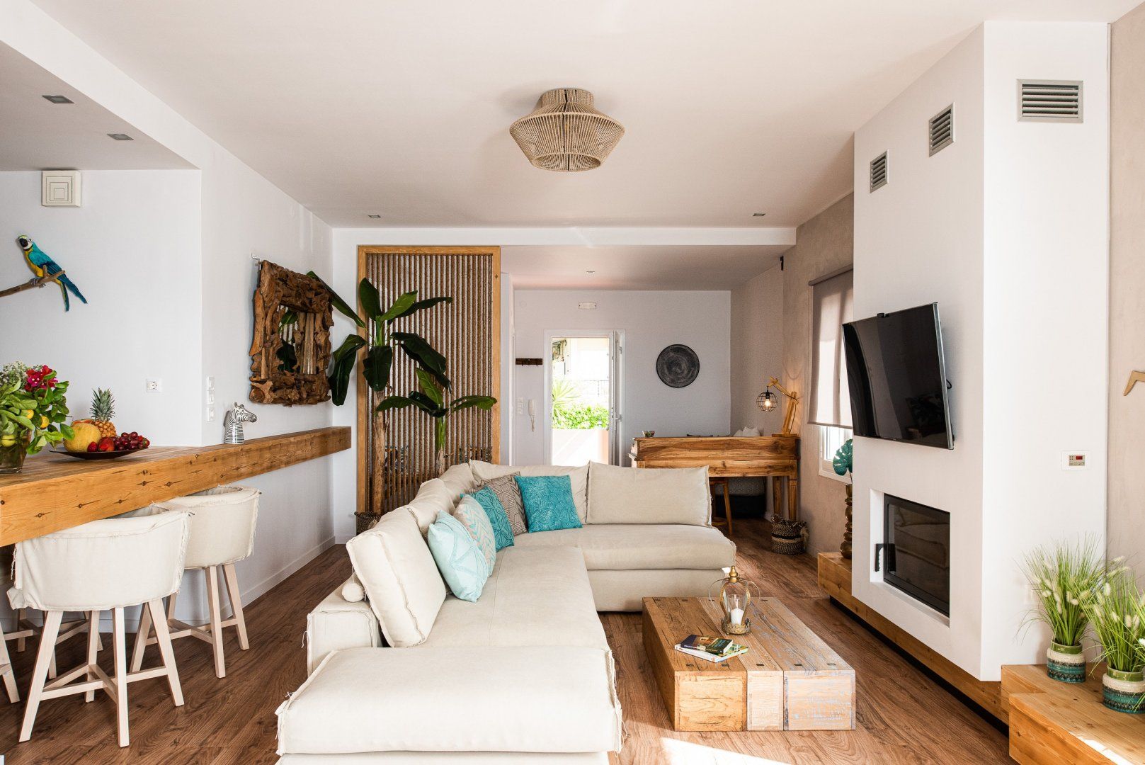Outdoor living is at the fore here. You’ll be able to choose from relaxing in the two sunken Jacuzzis on the deck – where you can admire wonderful sea views – or reclining on the sun terrace. There’s also a shaded veranda with two alfresco dining areas, and a garden at the back of the house. The main bedroom leads directly out onto a terrace too. With so much room to spread out, there’s no chance of you feeling over-crowded here – especially when you have direct access to Glaros Beach.