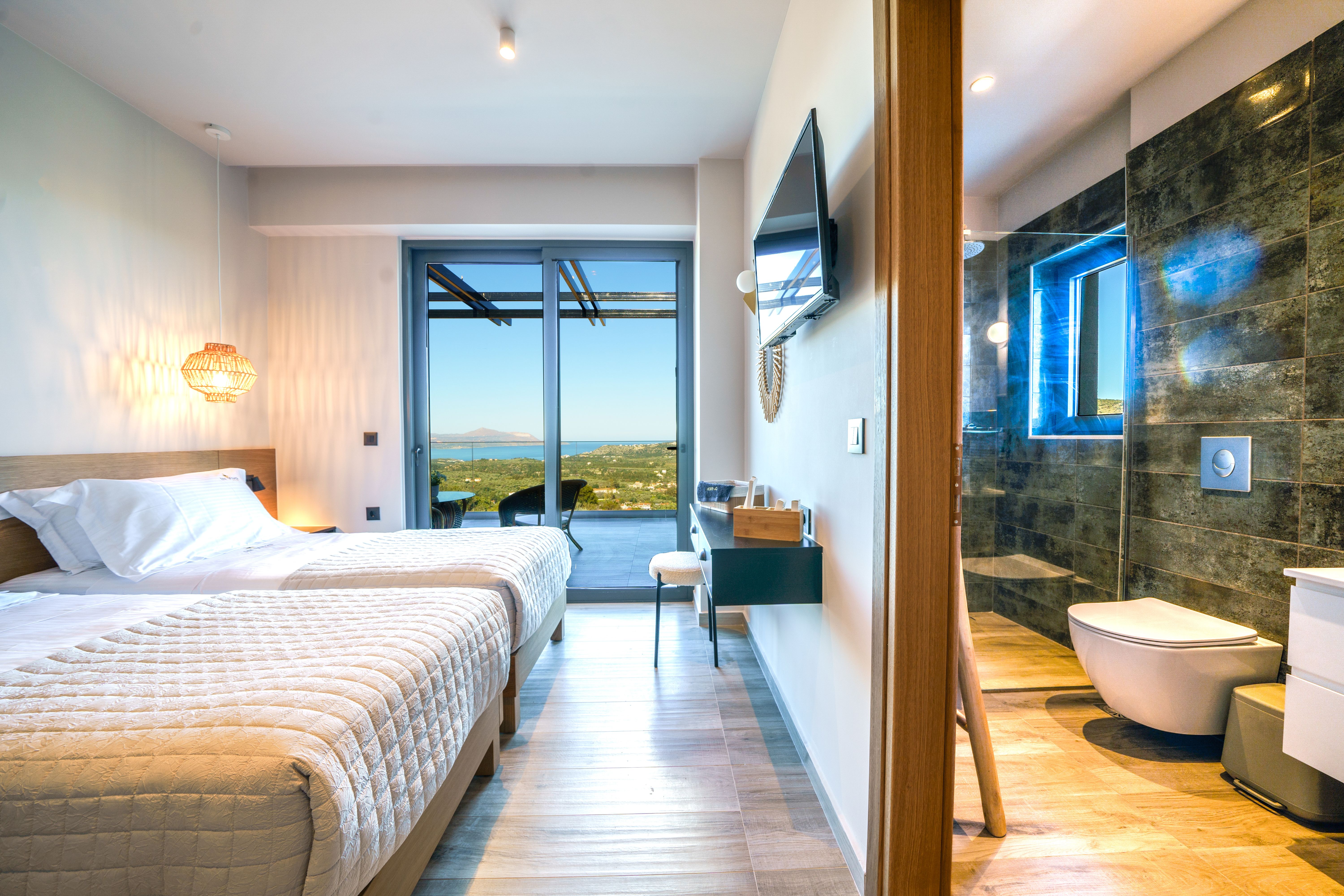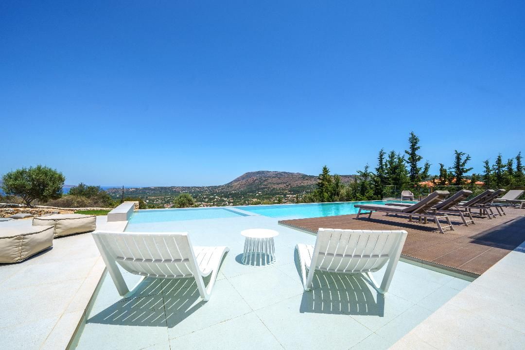 Wake up to serene views across the countryside and out to the ocean at this Cretan villa. Carefree days can be spent stretched out by the pool, enjoying long alfresco lunches cooked in the outdoor kitchen, or gathering around the firepit for starlit conversation while the little ones explore the playground. Inside, there’s plenty of space for the whole group to make themselves at home, with two kitchens and bedrooms offering flexible sleeping arrangements – ideal for couples or families. You’re just five minutes from local tavernas and shops, and 3 kilometres from the golden sands of Almirida Bay.