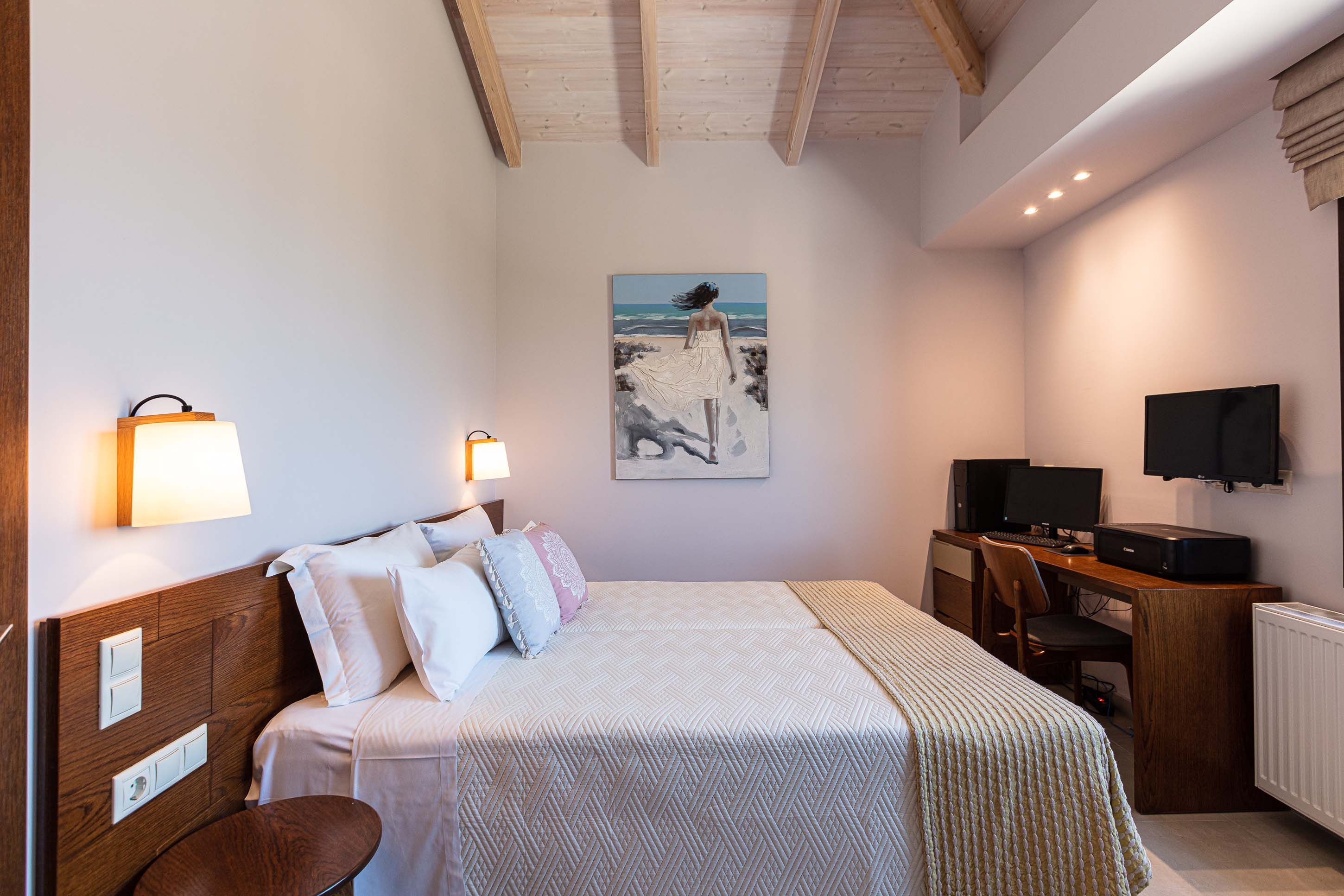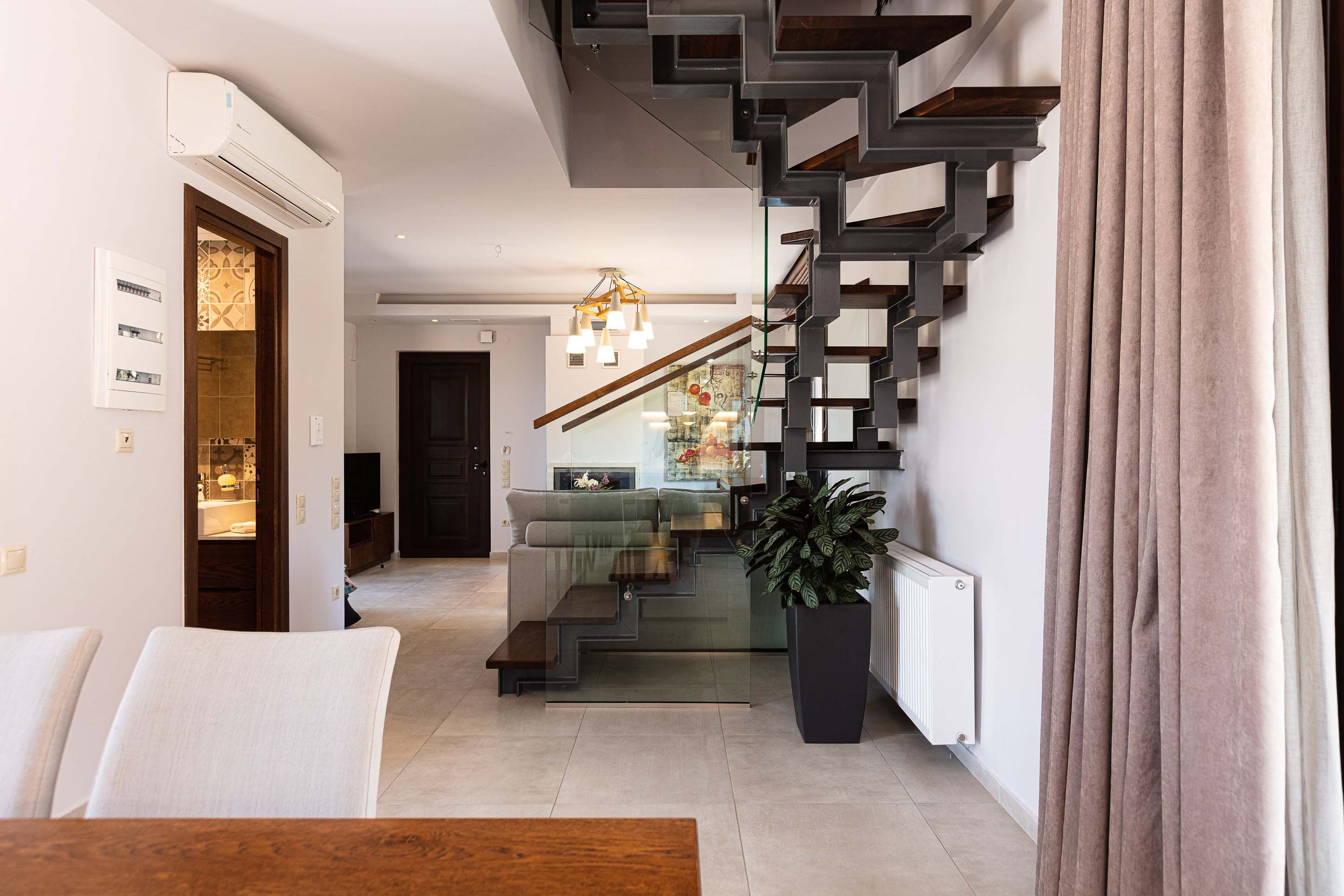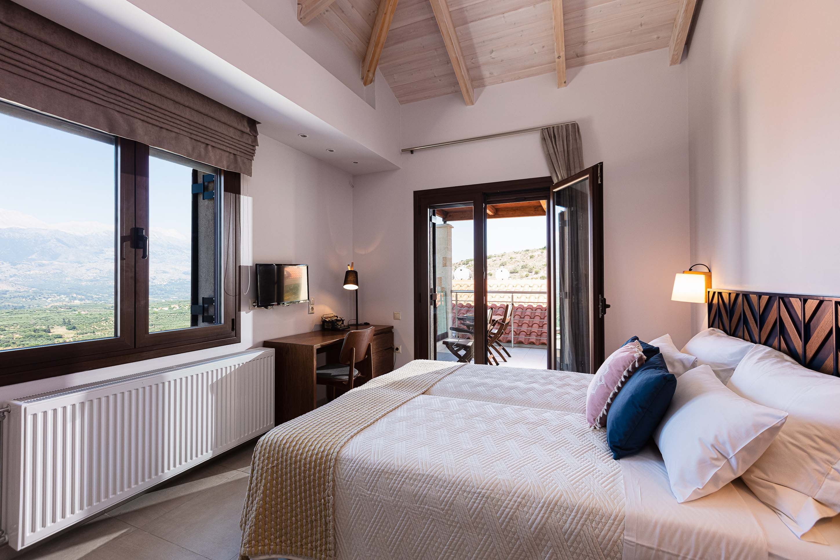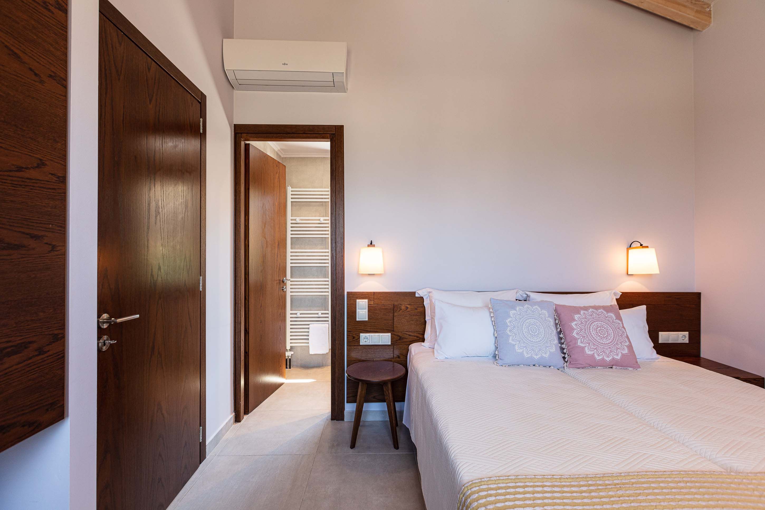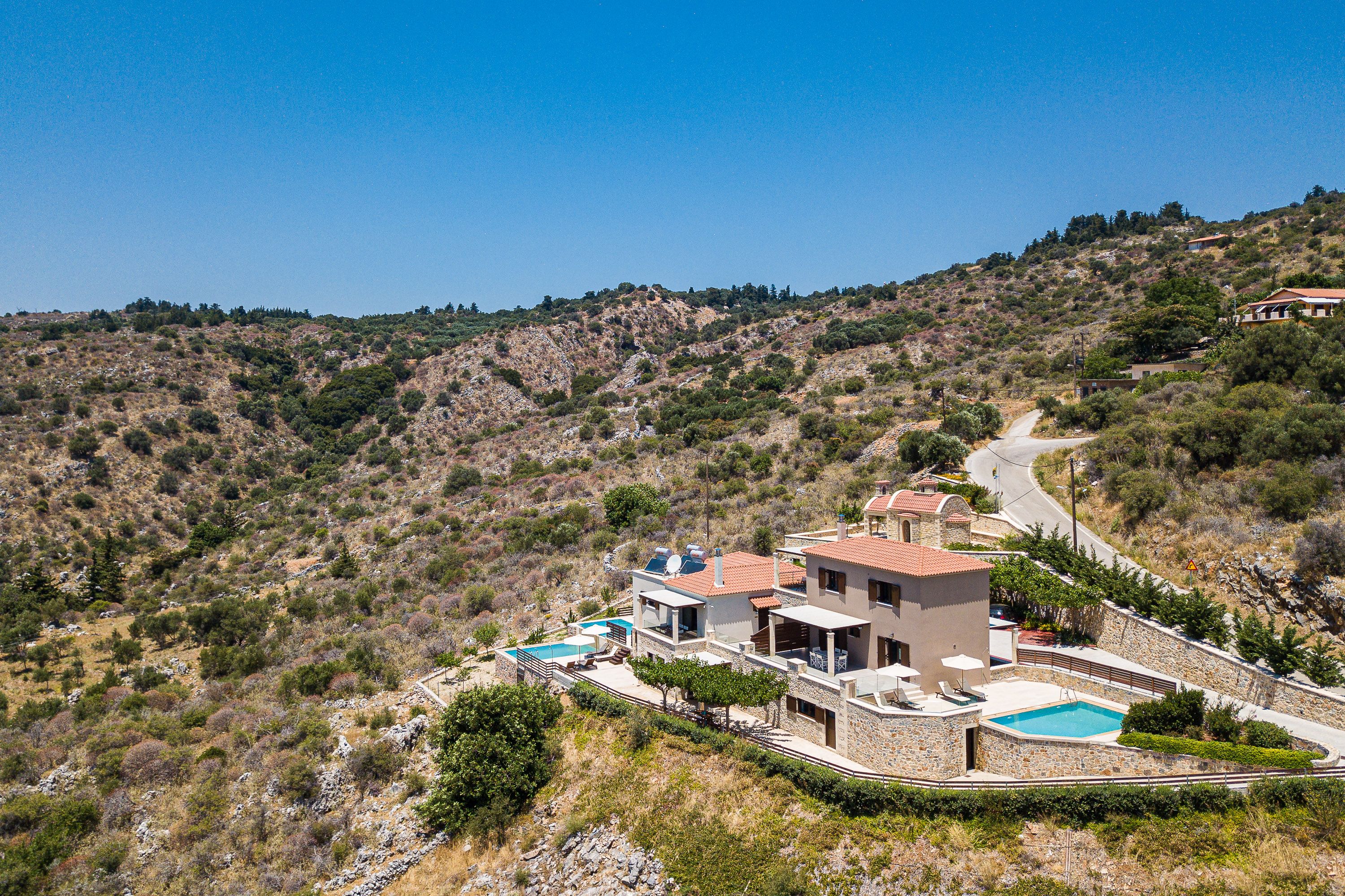 Mountain views, a private pool and an easy indoor-outdoor setup — this modern villa in Kalamitsi keeps Cretan living simple. Part of a small complex of three, it offers privacy while the beaches of Almyrida and Georgioupolis are just a short drive away. Inside, the open-plan living space is bright and practical, with a fully equipped kitchen and room to gather over dinner. Upstairs, two en-suite bedrooms with twin beds suit friends or family sharing. Clean lines and contemporary finishes keep things feeling fresh. Outdoors, the private pool is the main event, framed by loungers and sunset views. Long swim, quick rinse, dinner on the terrace – repeat as necessary.