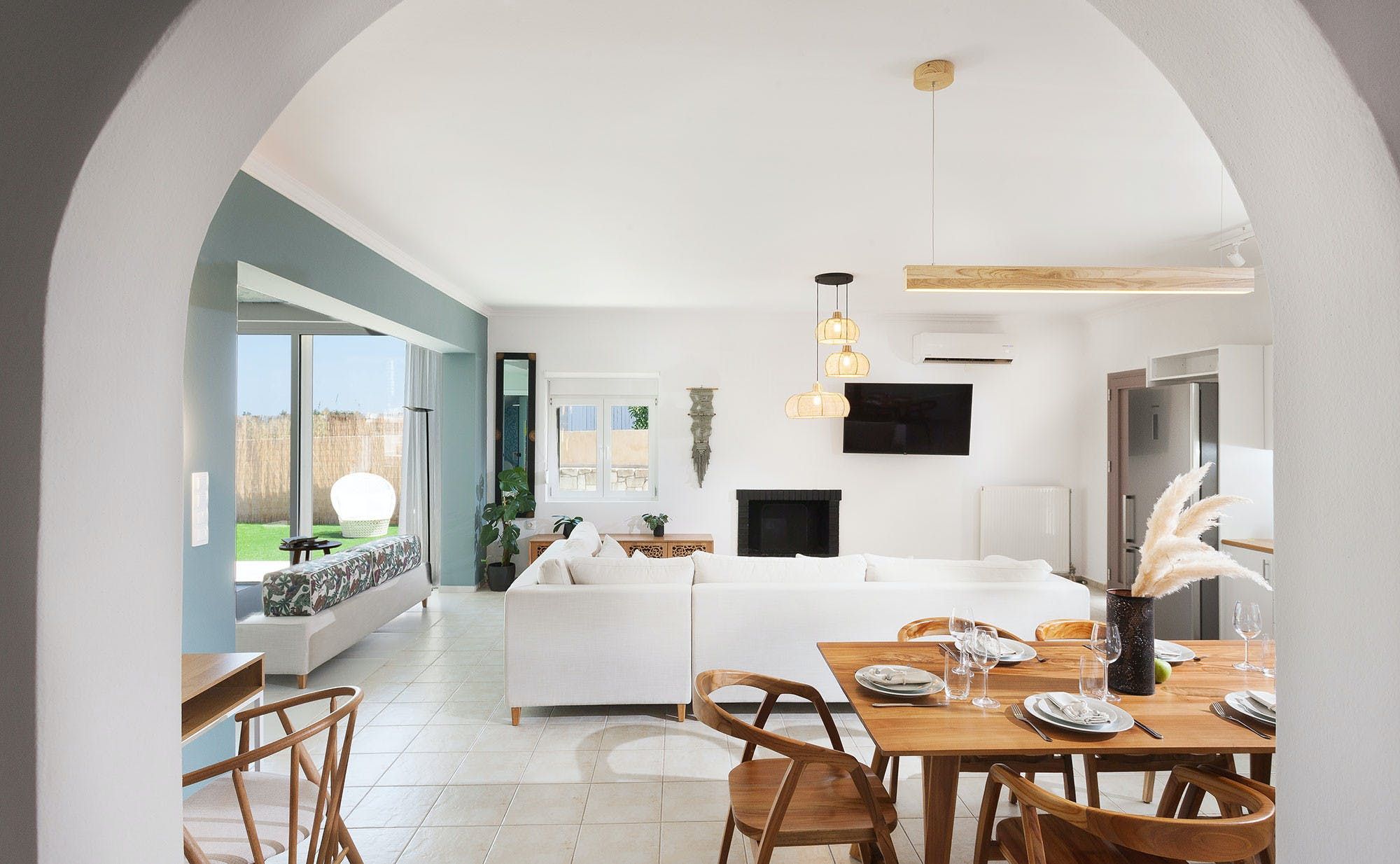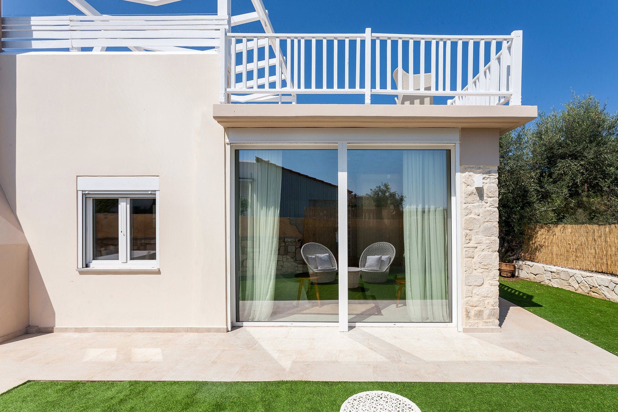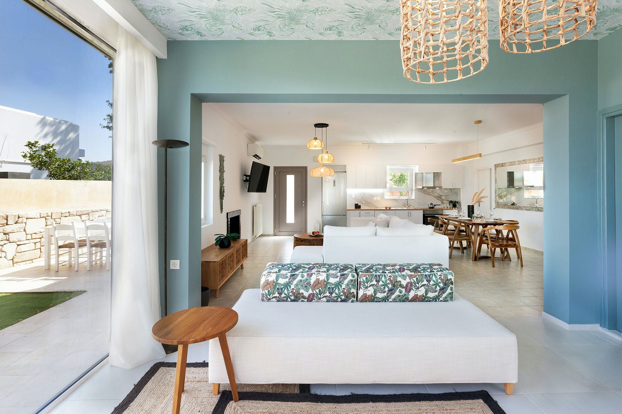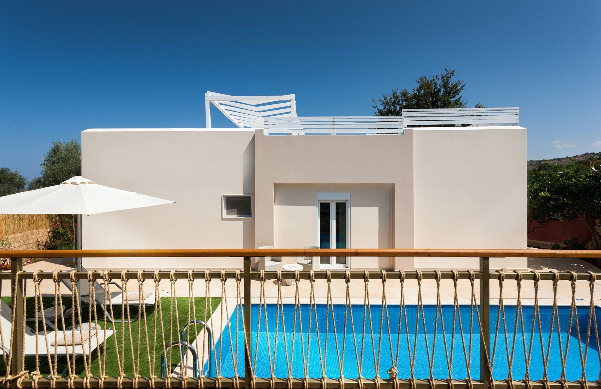 Located in the beautiful village of Gerani, just 7km from the centre of Rethymno and its sandy beaches, this villa offers the tranquillity of the countryside as well as close proximity to popular destinations. All three bedrooms benefit from direct access to the outside lounge area, where sofa chairs and a dining table create the perfect spot to start your mornings. Inside, we love the modern touch that's been given to the home, while the sliding doors open the space out to the garden. When you're not lazing around by your private pool all day, the surrounding area is quiet with many traditional tavernas, cafes and beaches to explore nearby.