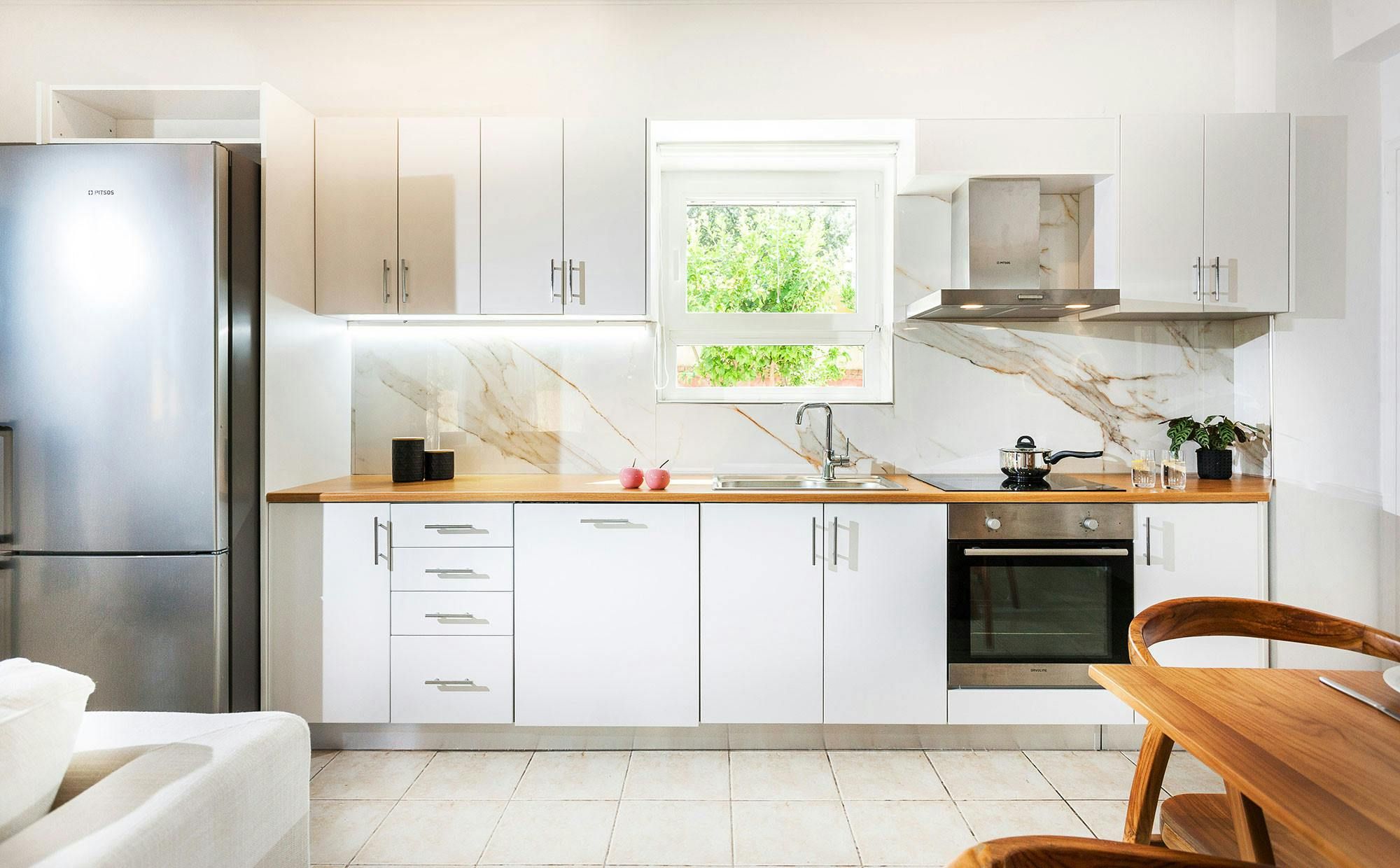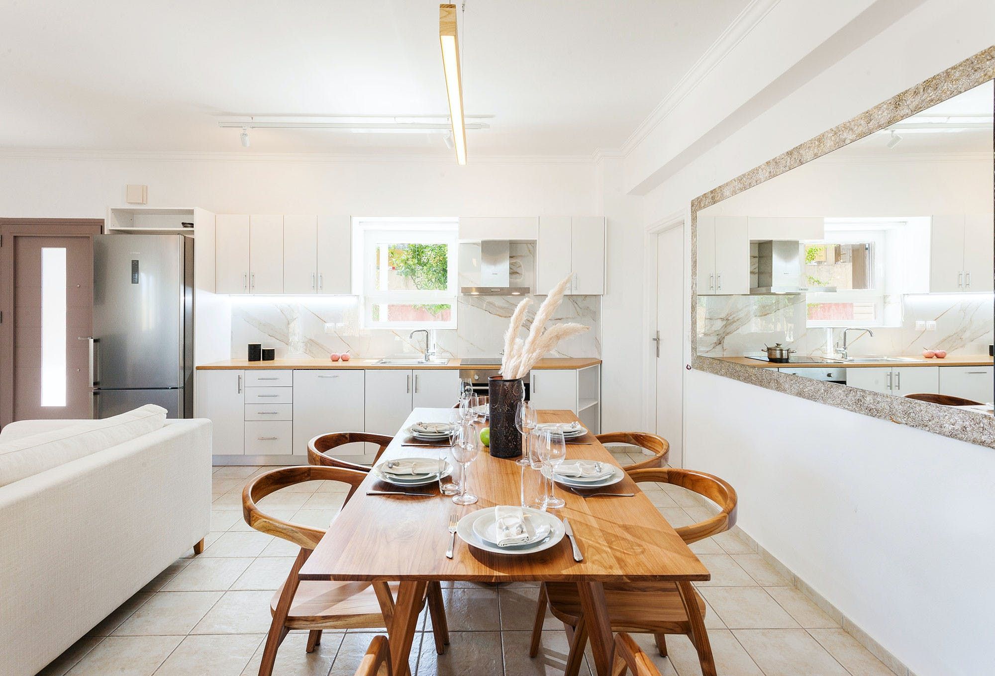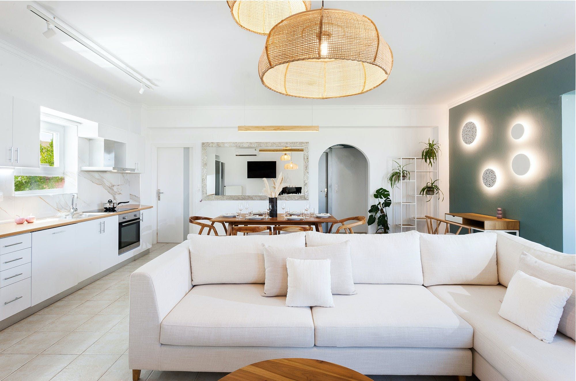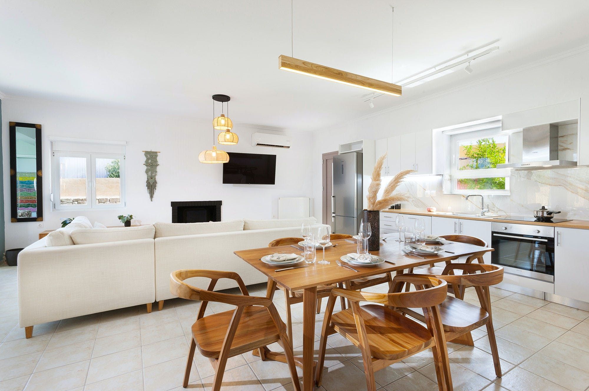 Located in the beautiful village of Gerani, just 7km from the centre of Rethymno and its sandy beaches, this villa offers the tranquillity of the countryside as well as close proximity to popular destinations. All three bedrooms benefit from direct access to the outside lounge area, where sofa chairs and a dining table create the perfect spot to start your mornings. Inside, we love the modern touch that's been given to the home, while the sliding doors open the space out to the garden. When you're not lazing around by your private pool all day, the surrounding area is quiet with many traditional tavernas, cafes and beaches to explore nearby.