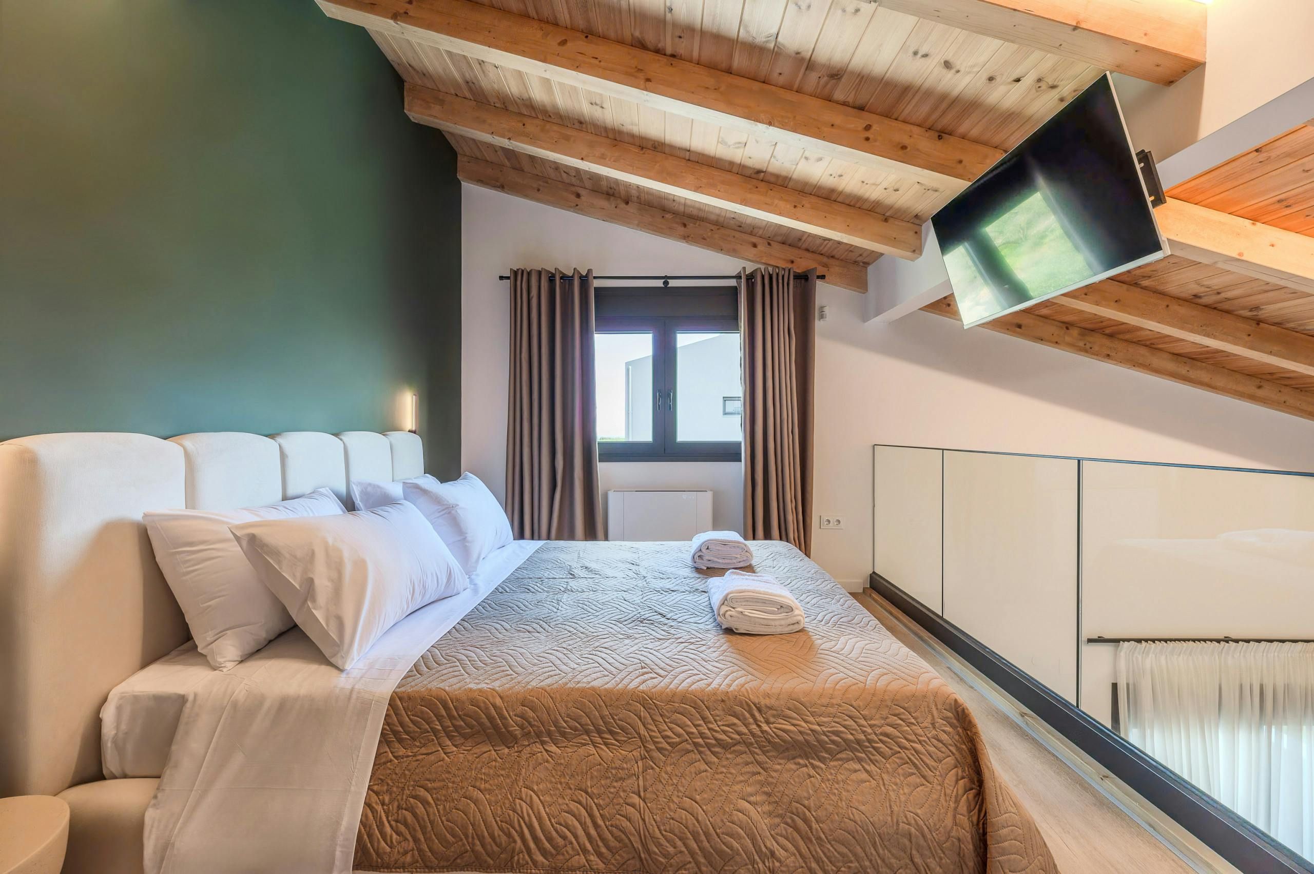 Set against the Cretan sun, this retreat is arranged over two properties, accommodating up to 12 guests – perfect for family get-togethers or group holidays. The modern design is calm and uncluttered, with an integrated living and kitchen space, allowing conversation to flow. Outside, soak in the blue skies from the terrace – complete with BBQ and hot tub, or head to the patio to unwind with a book on a sunlounger. If you can pull yourself away from the private pool, Crete’s largest water park is just ten minutes away, too.
