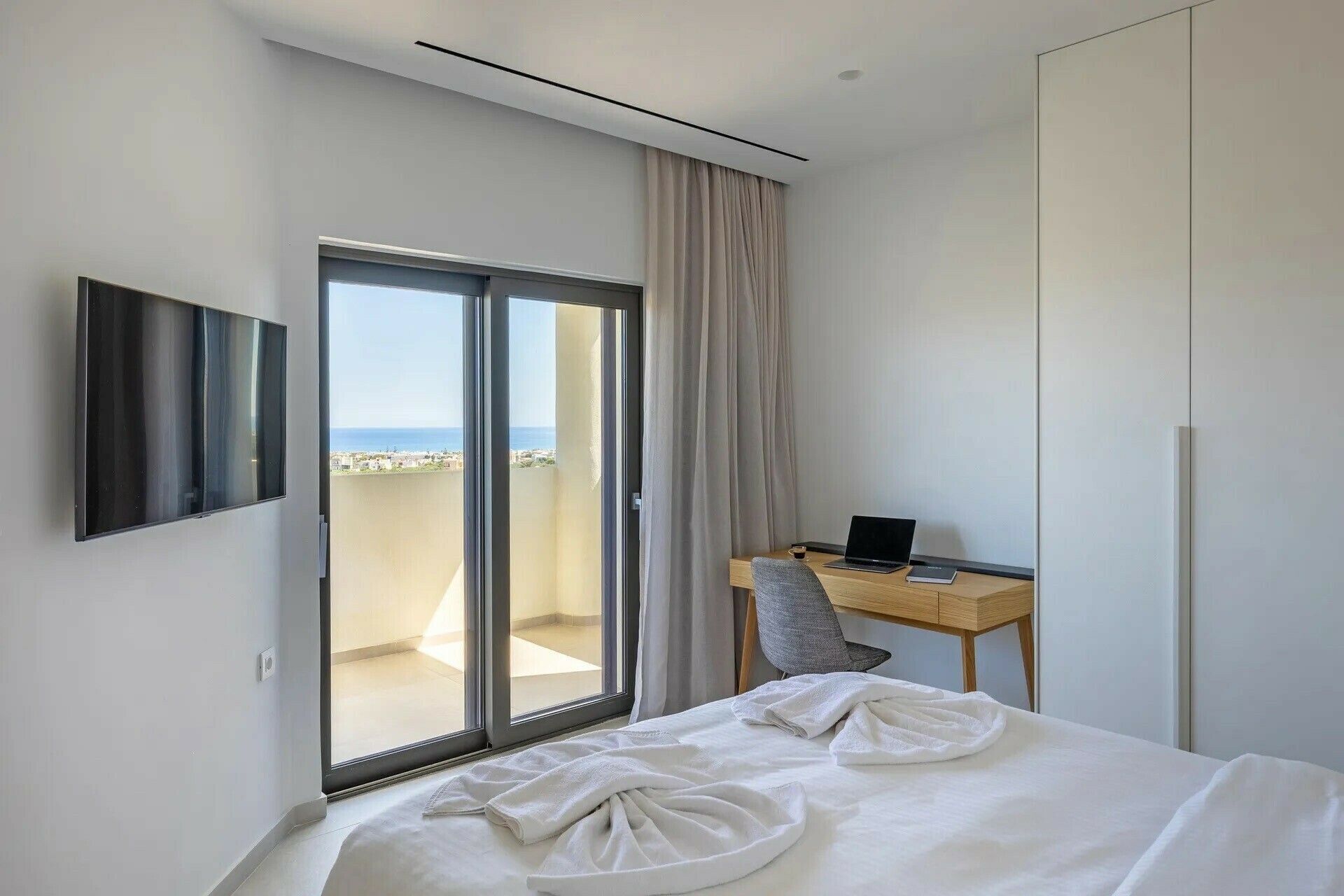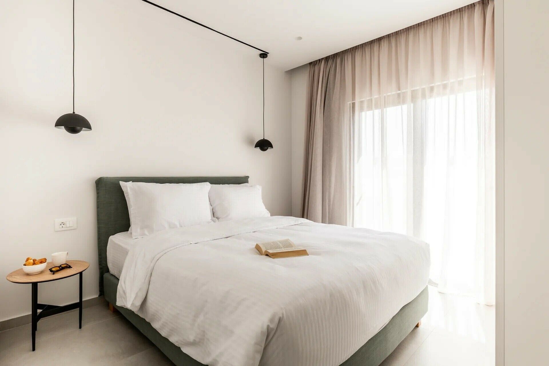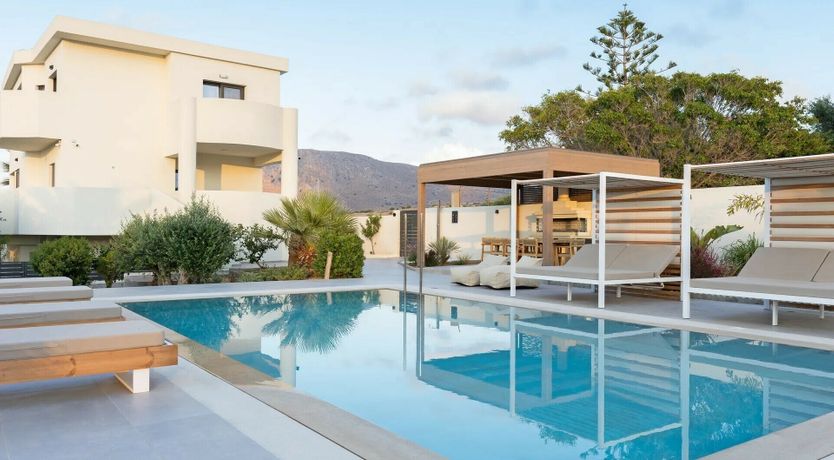 Less than half an hour from Heraklion, this villa is a comfortable base for a family or group of friends seeking a relaxing holiday home. It’s on a complex of villas a short drive from Gournes, Marina, and Gouves beaches, boasting both sea and mountain views. The villa is comfortable and contemporary, with a fully-equipped kitchen and an open-plan living and dining space – this is where two guests will sleep on sofa beds. The outside space is the star of the show, centred around a private pool and with a shaded pergola with a built-in barbecue and a dining table – it’s a dreamy spot for alfresco meals.